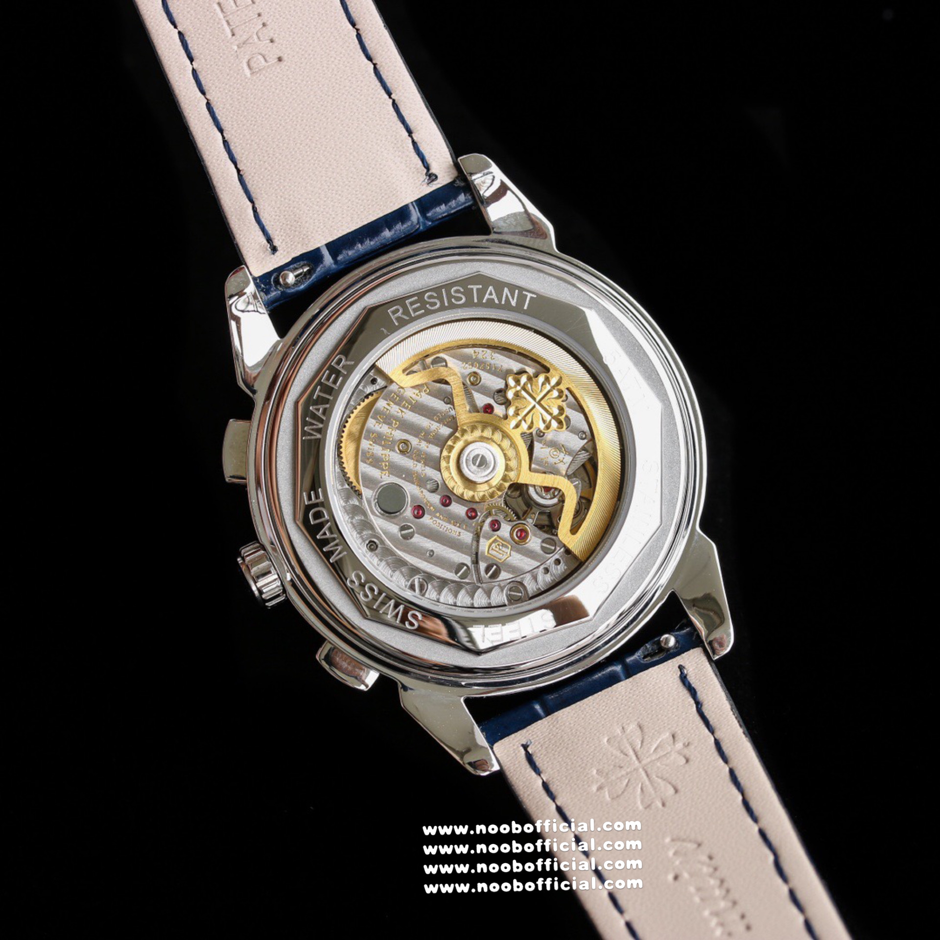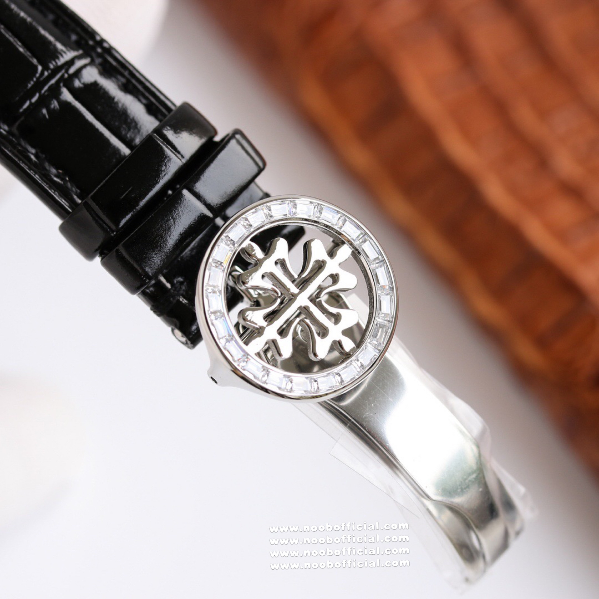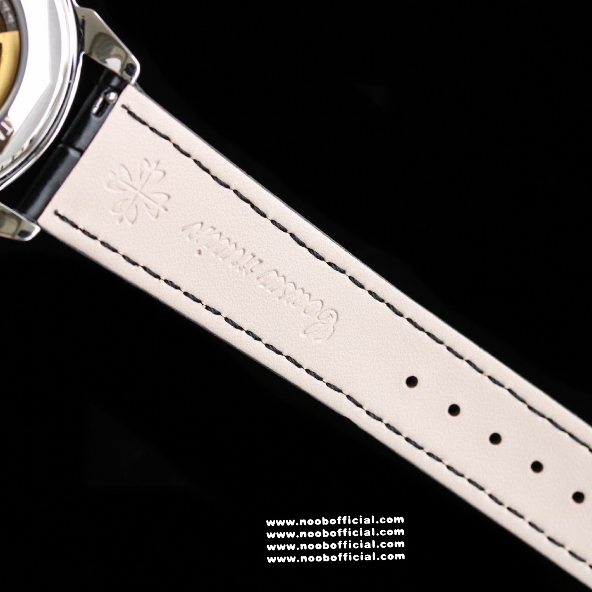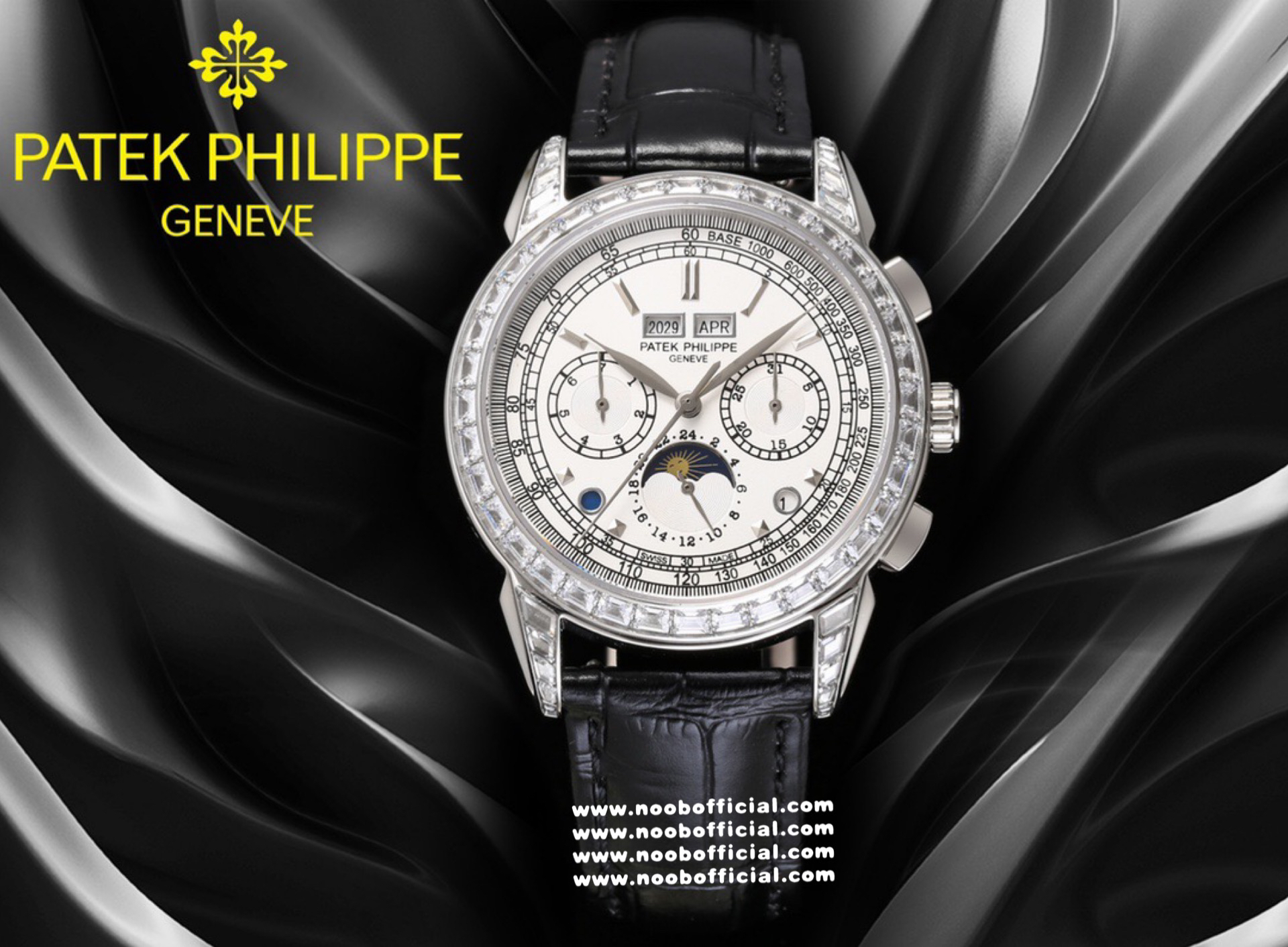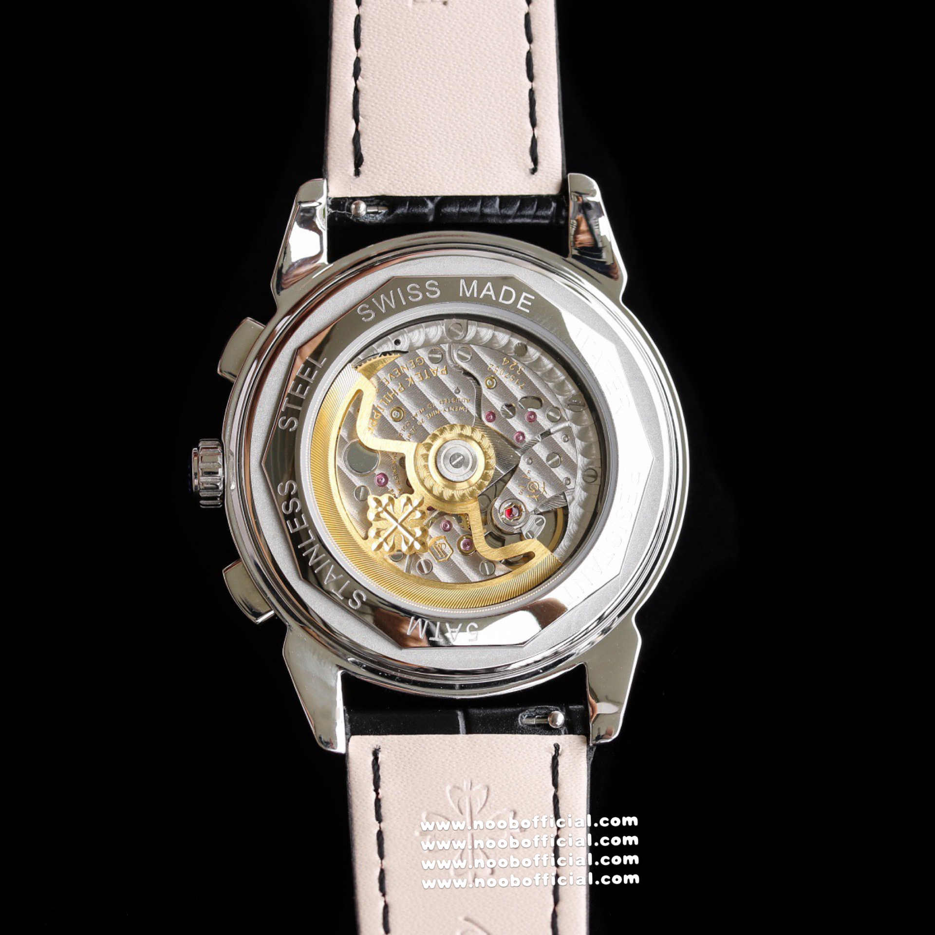 Noob Maker,N厂市场独家,耗时2年,18k包金版本和定制版手工镶钻工艺来啦,由20种不同钻组成,色泽艳丽,扣子也点缀21颗钻,搭配正品一致的美洲鳄鱼皮表带百达.翡丽超级复杂功能计时系列