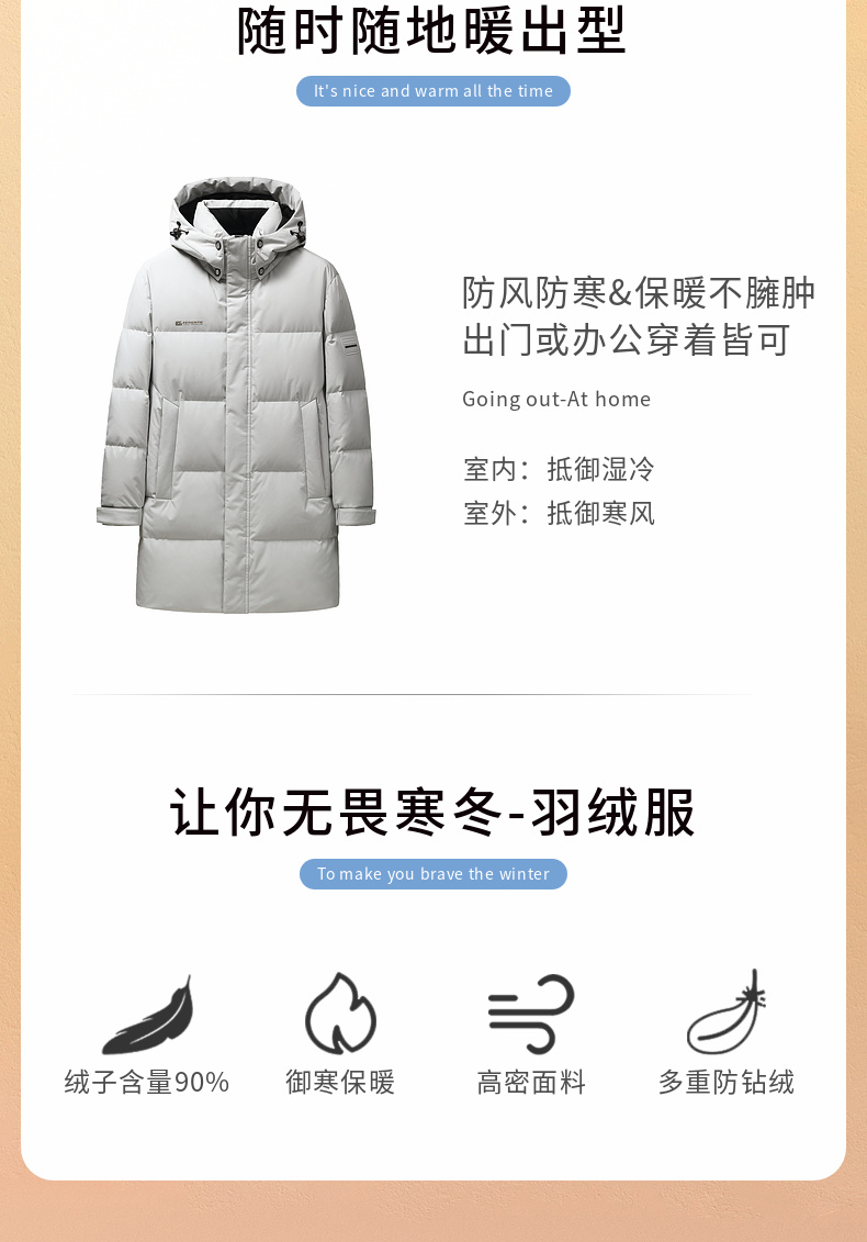 【鸭绒】圣得西2025年冬季男士羽绒服休闲风中长款保暖简约外套