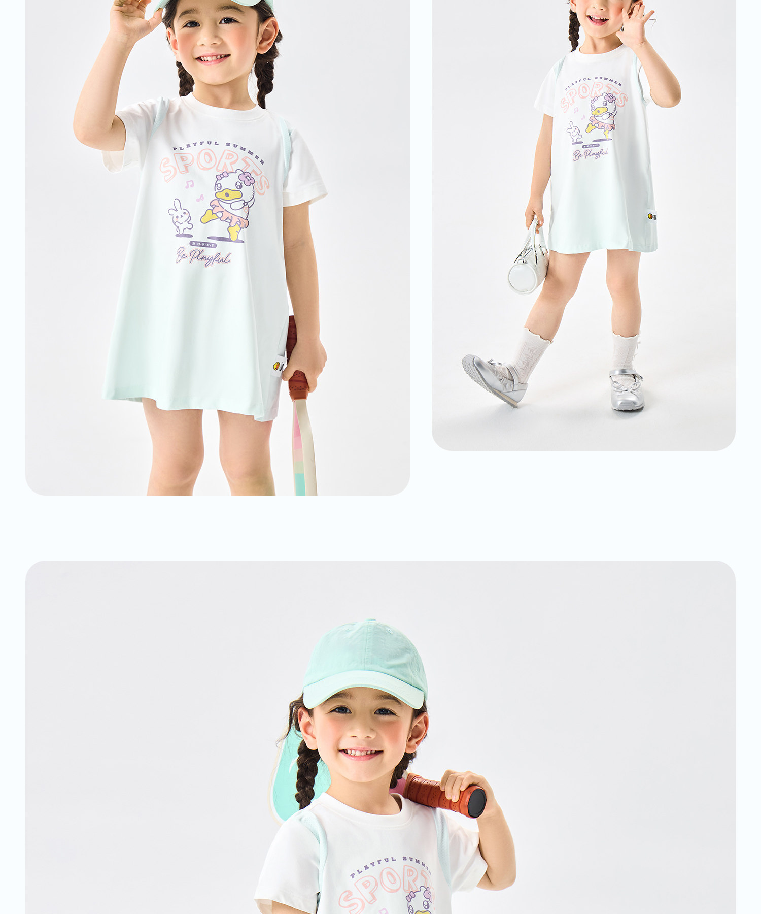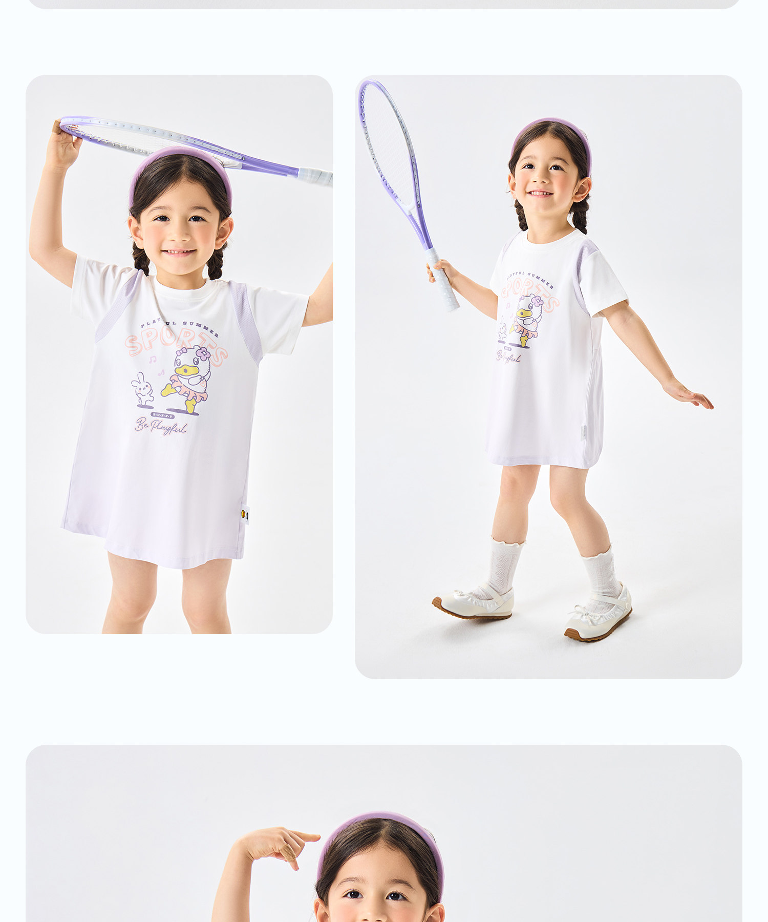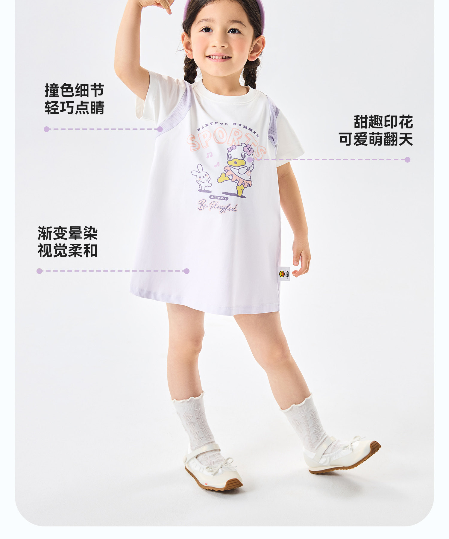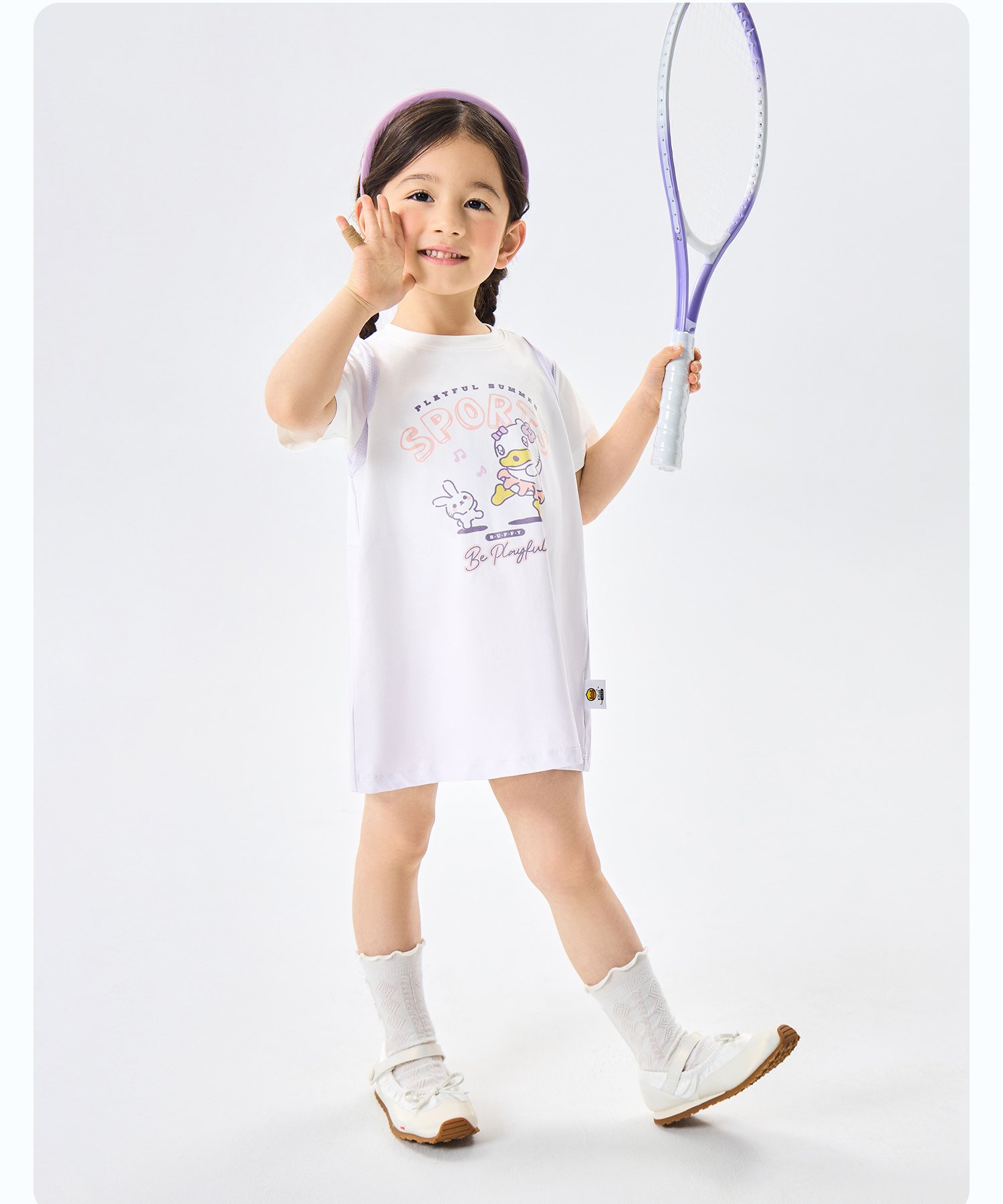 bduck小黄鸭童装女童运动裙子儿童短袖连衣裙小女孩夏装透气T恤裙90-150 FF2780080