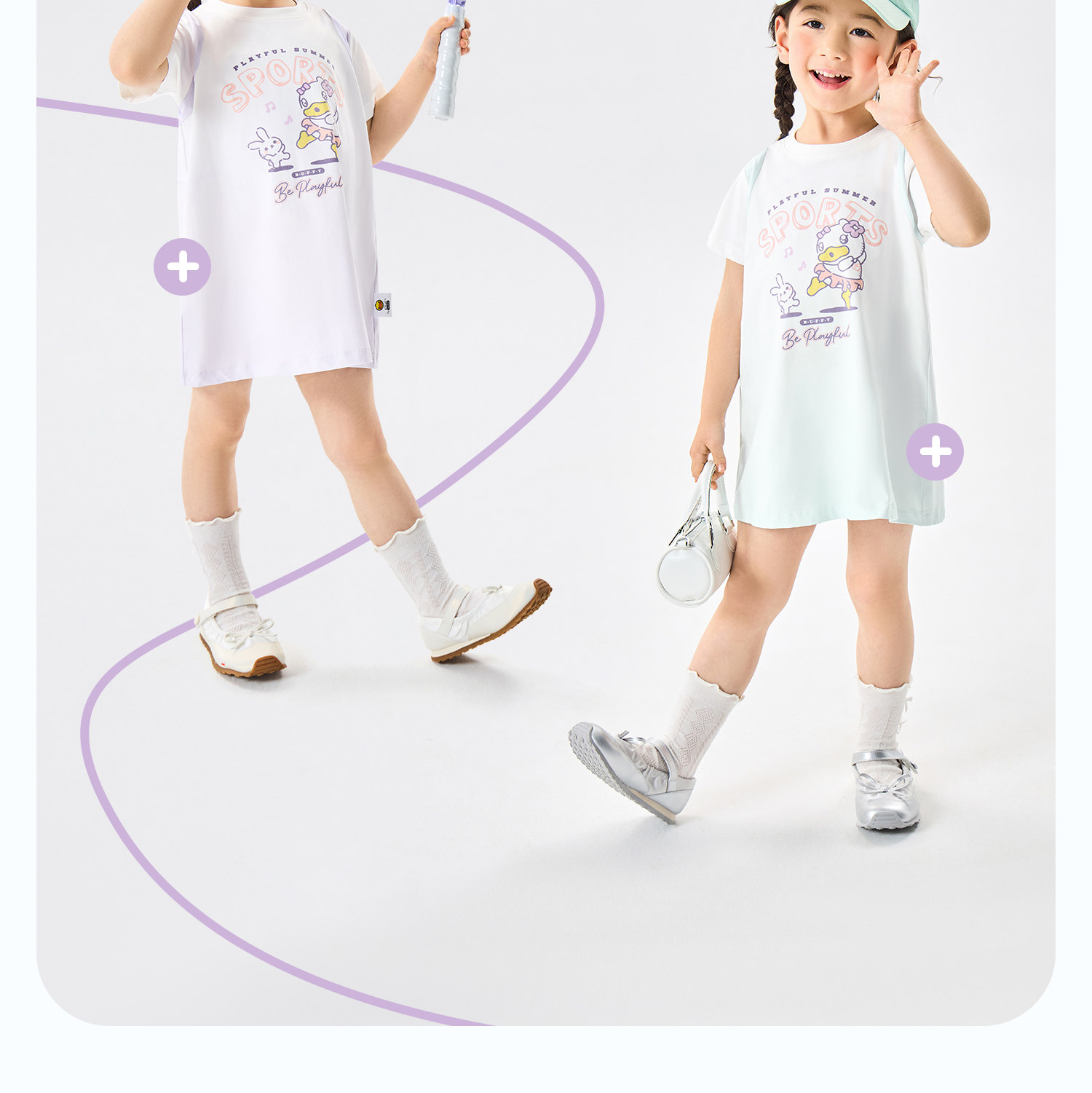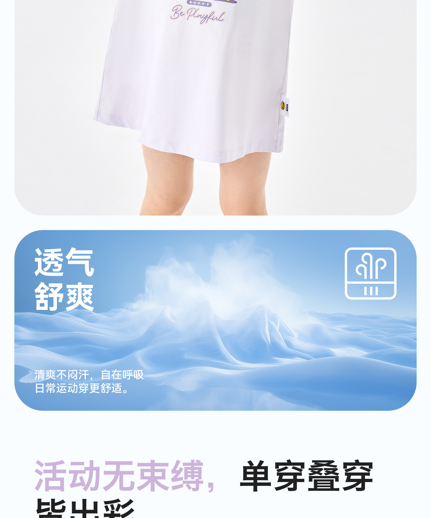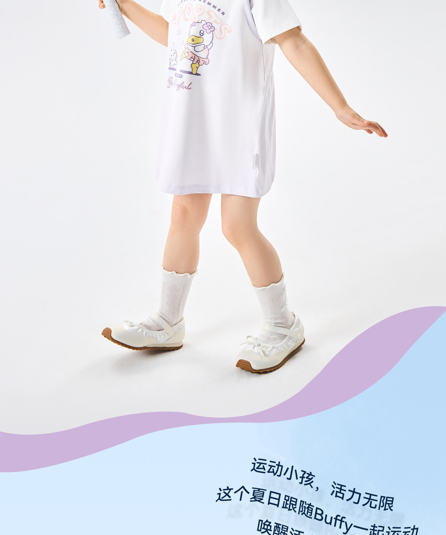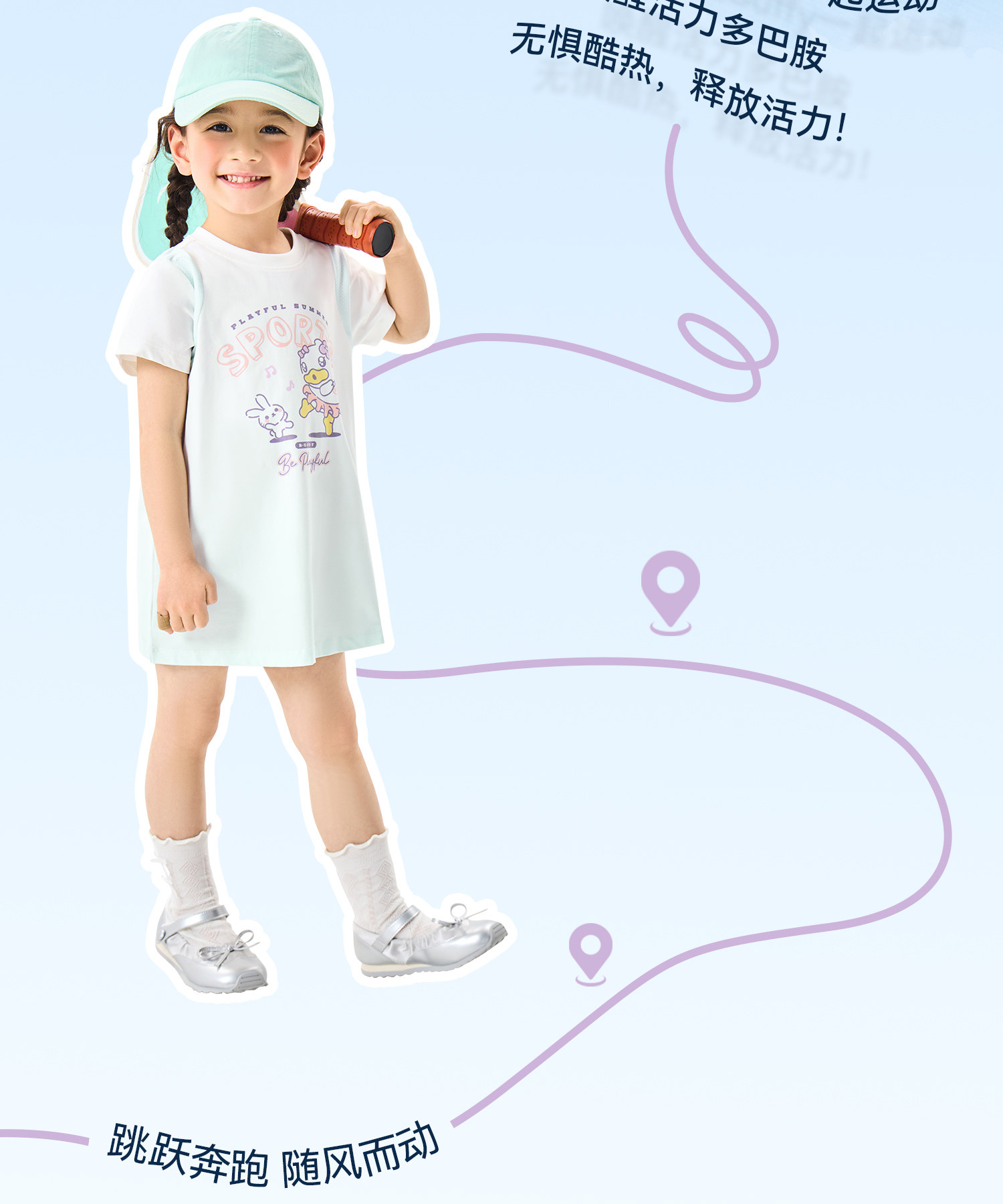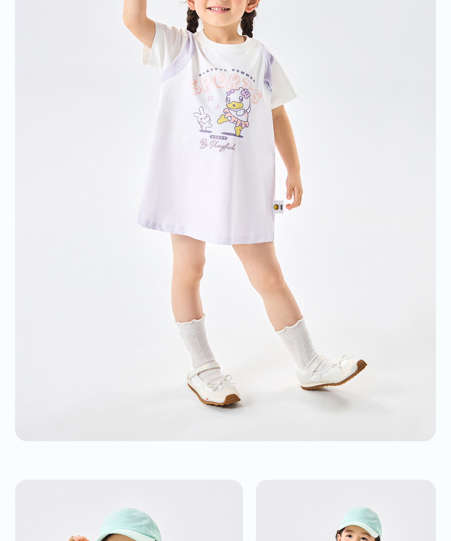bduck小黄鸭童装女童运动裙子儿童短袖连衣裙小女孩夏装透气T恤裙90-150 FF2780080