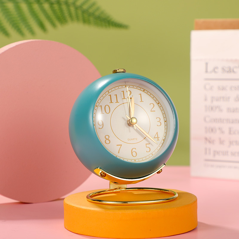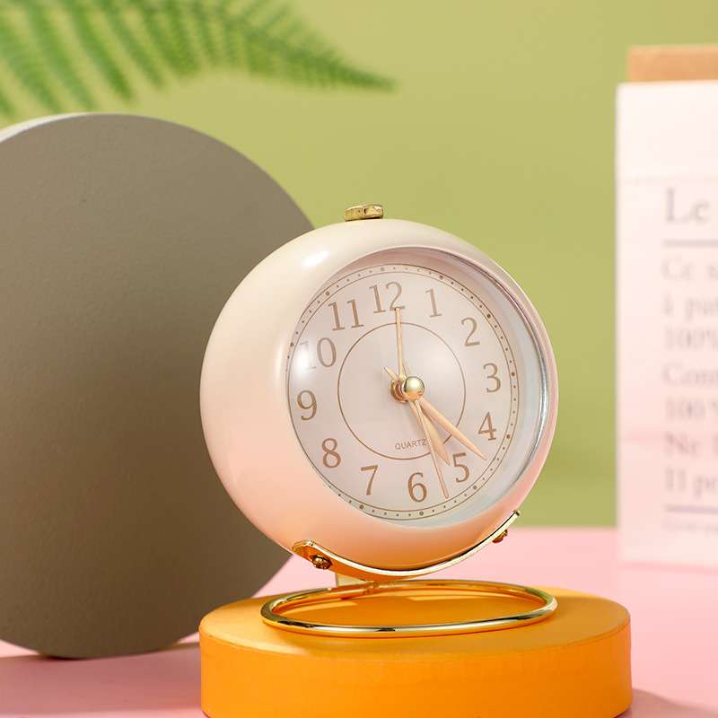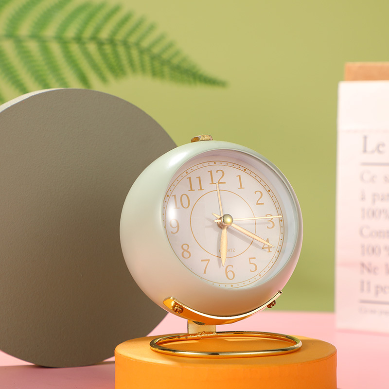 【创意简约】3.5寸凸面圆环打铃闹钟 居家日用复古闹钟学生静音小夜灯