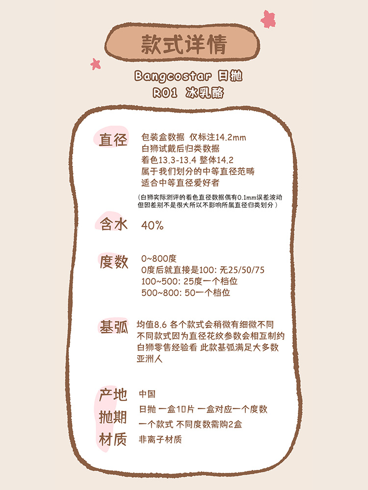Bangcostar旗下 ·R01 冰乳酪 日抛 · Laseecon新日抛品牌 · 14.2mm中等直径 · 10片装 · 新国货
