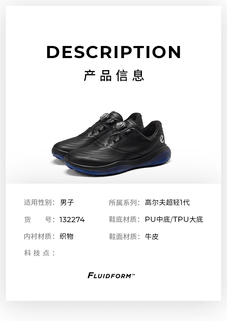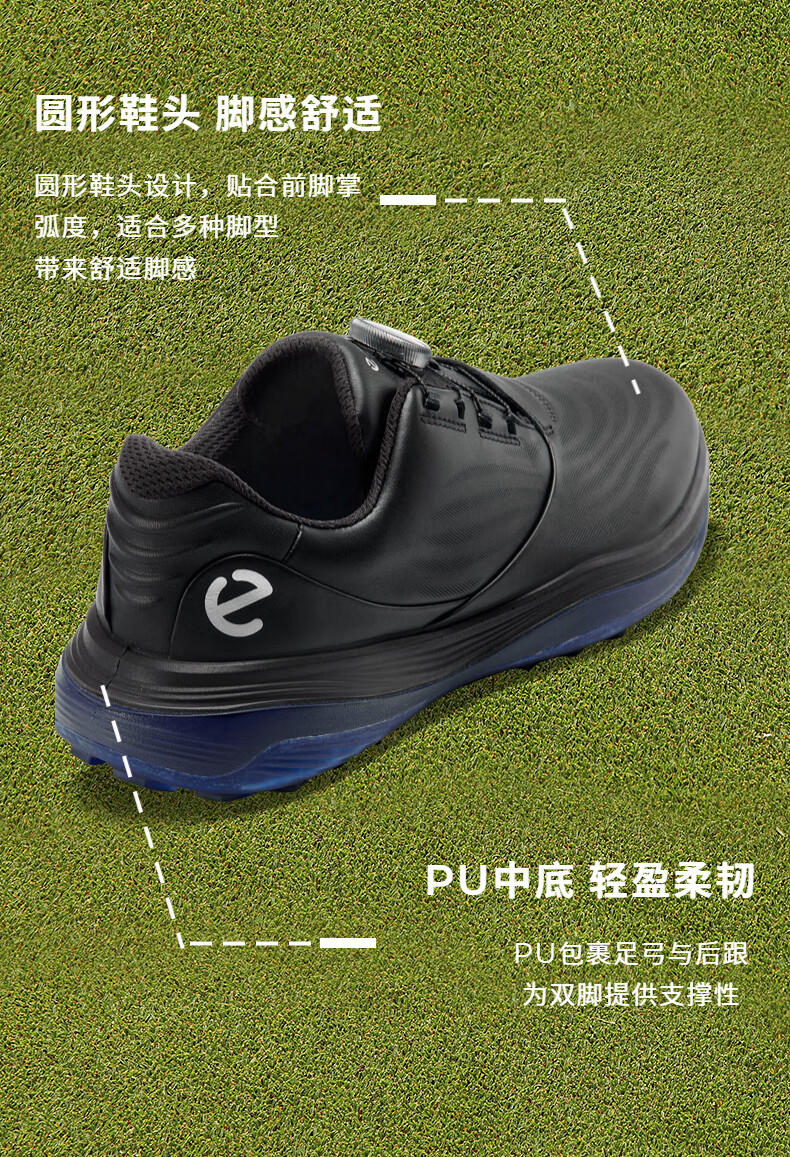 【高尔夫LT1超轻1代】ECCO男子高尔夫球鞋轻盈回弹发泡中底132274-01038 25新款