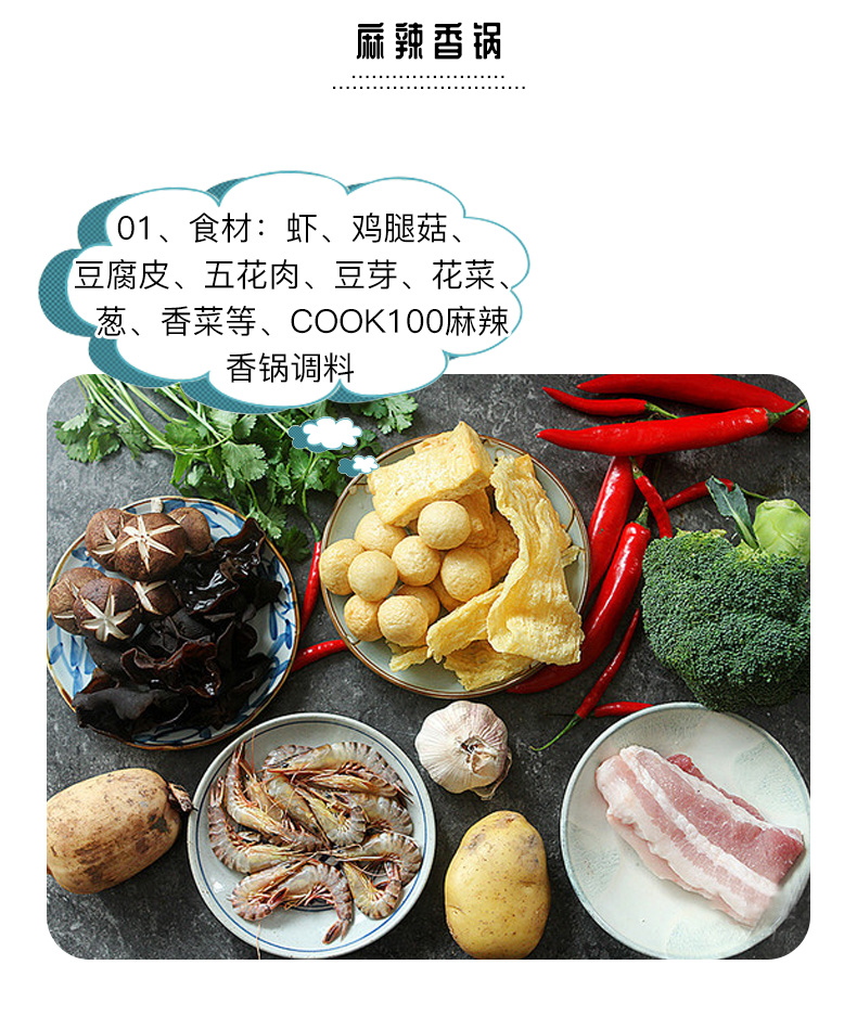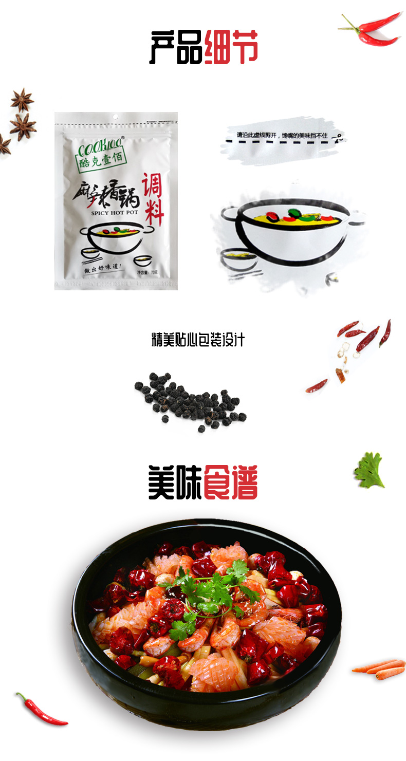 酷克壹佰 COOK100 麻辣香锅调料 70g 固态 麻辣香锅底料 干锅底料