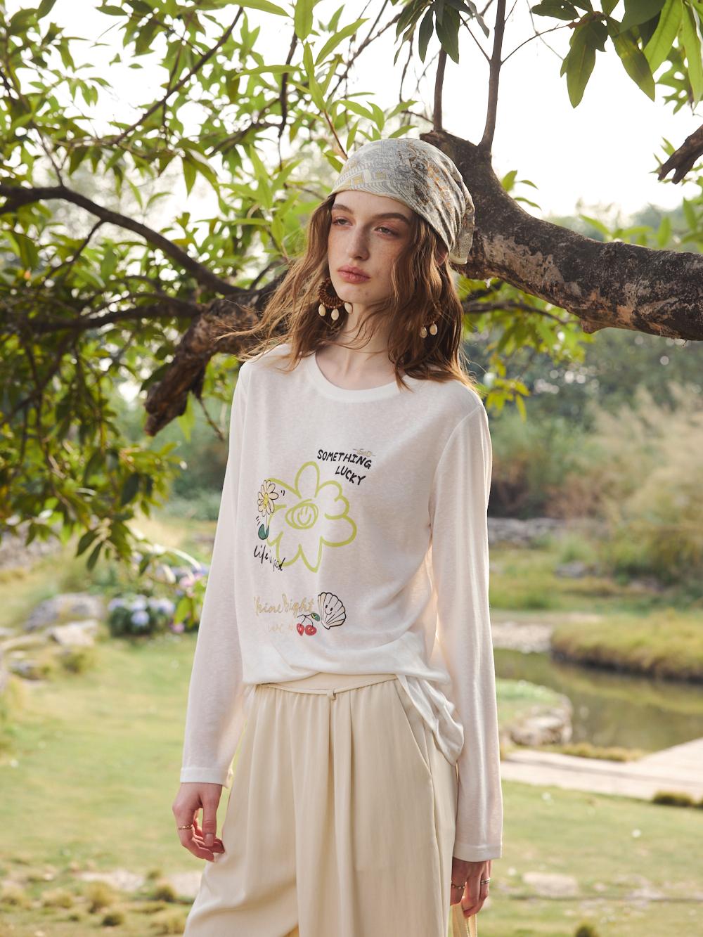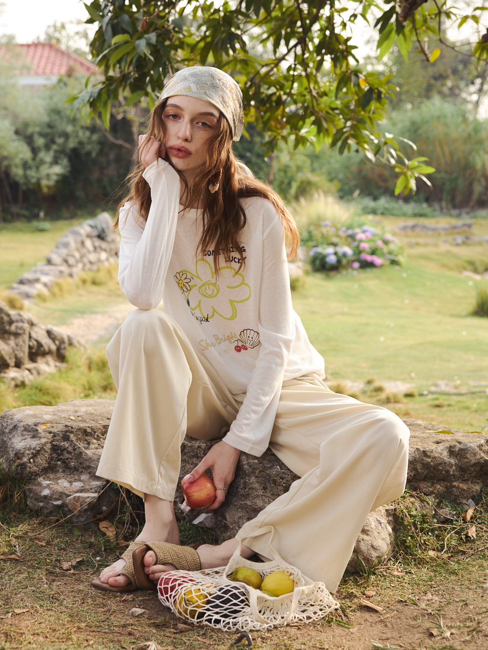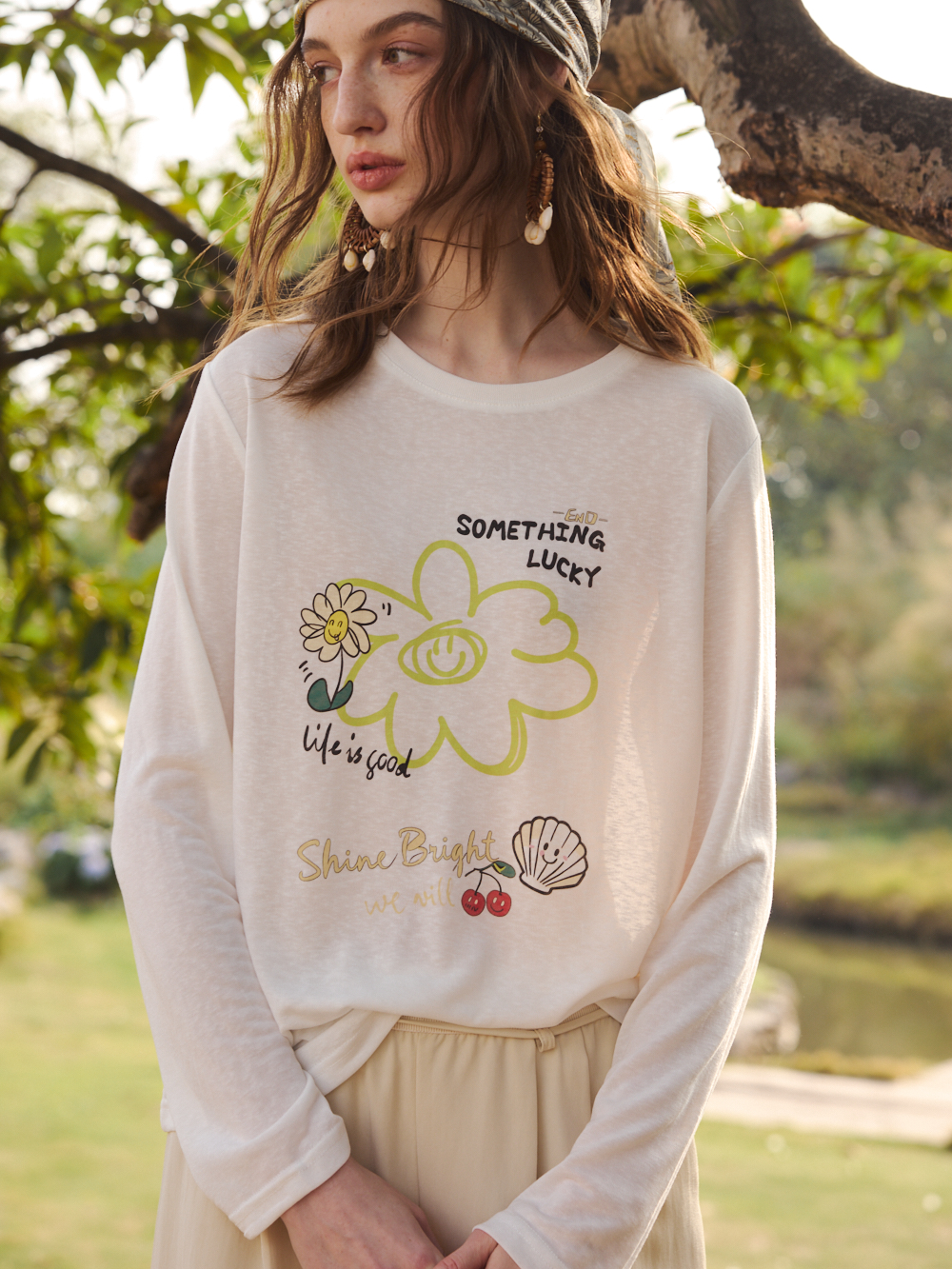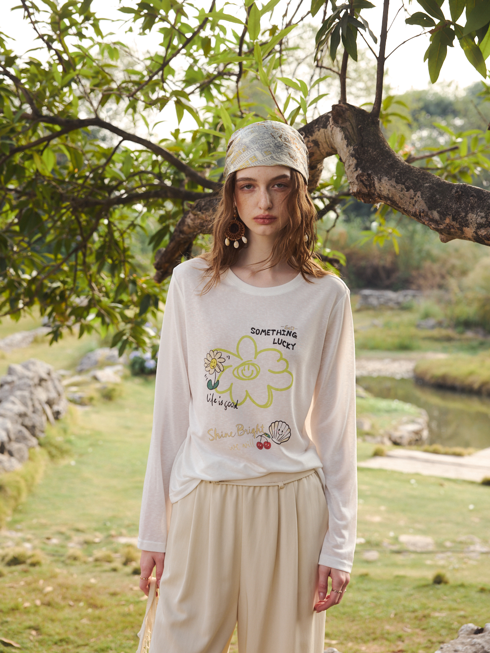 OLrain欧芮儿2026新款T恤白色长袖宽松透气休闲上衣