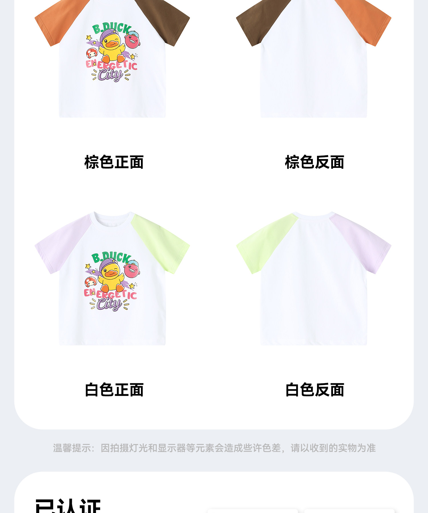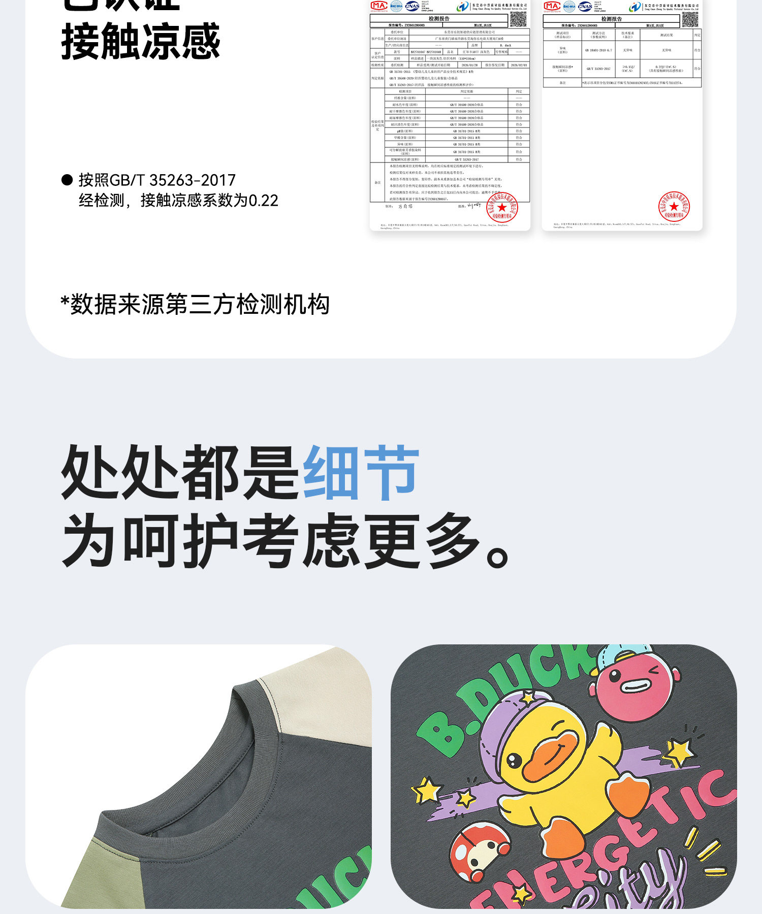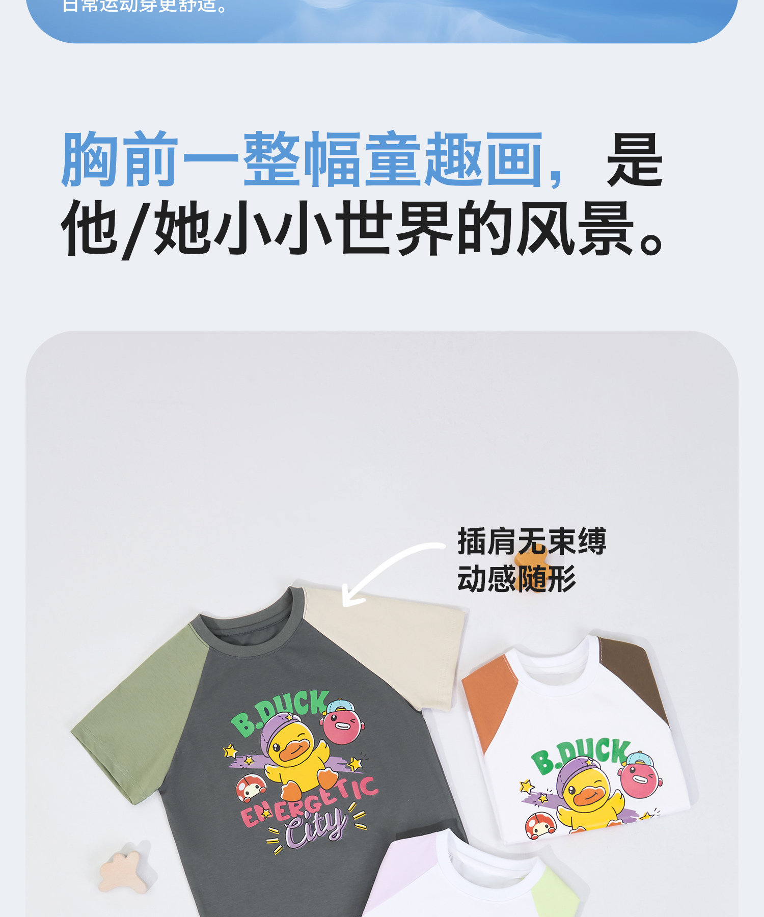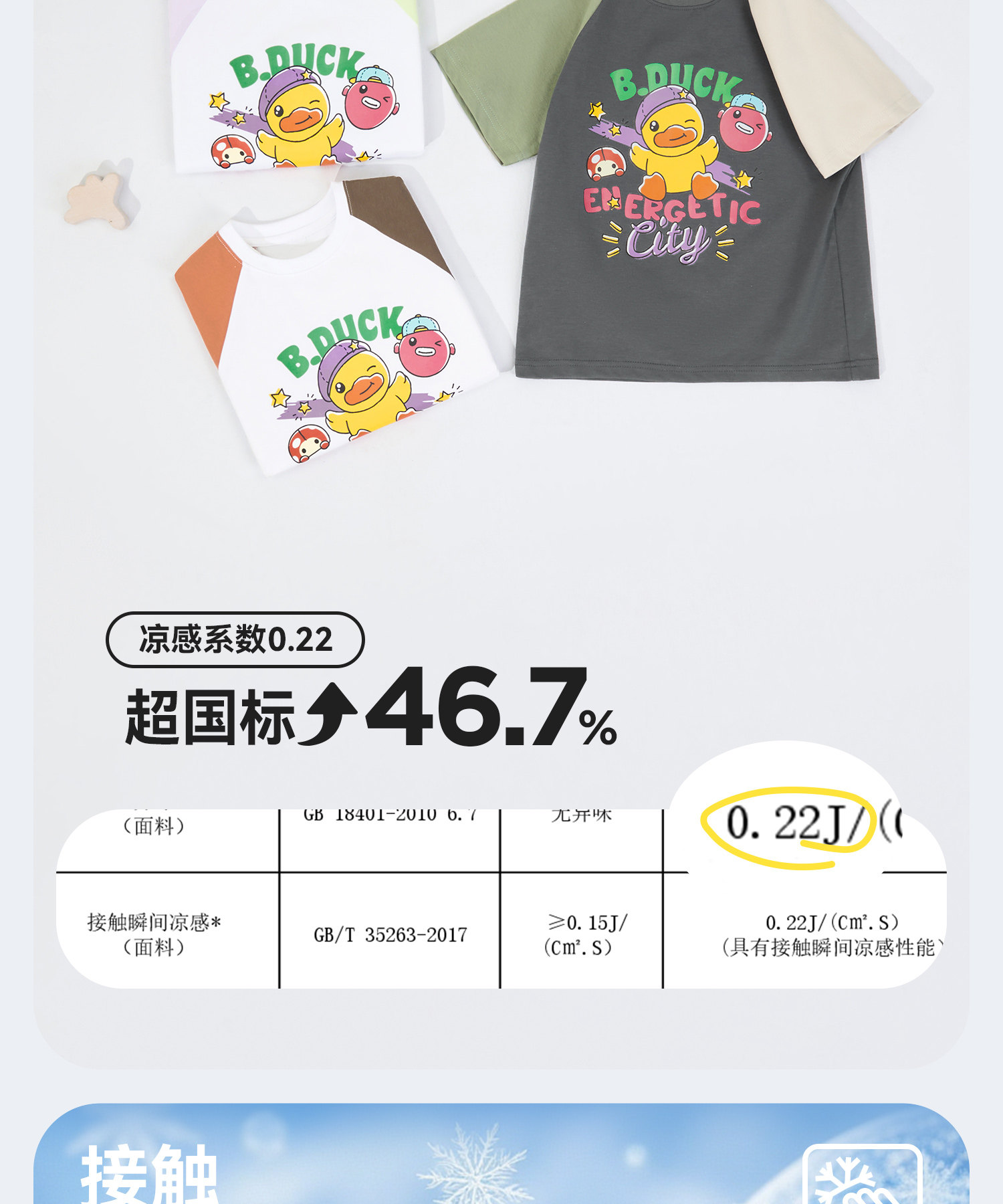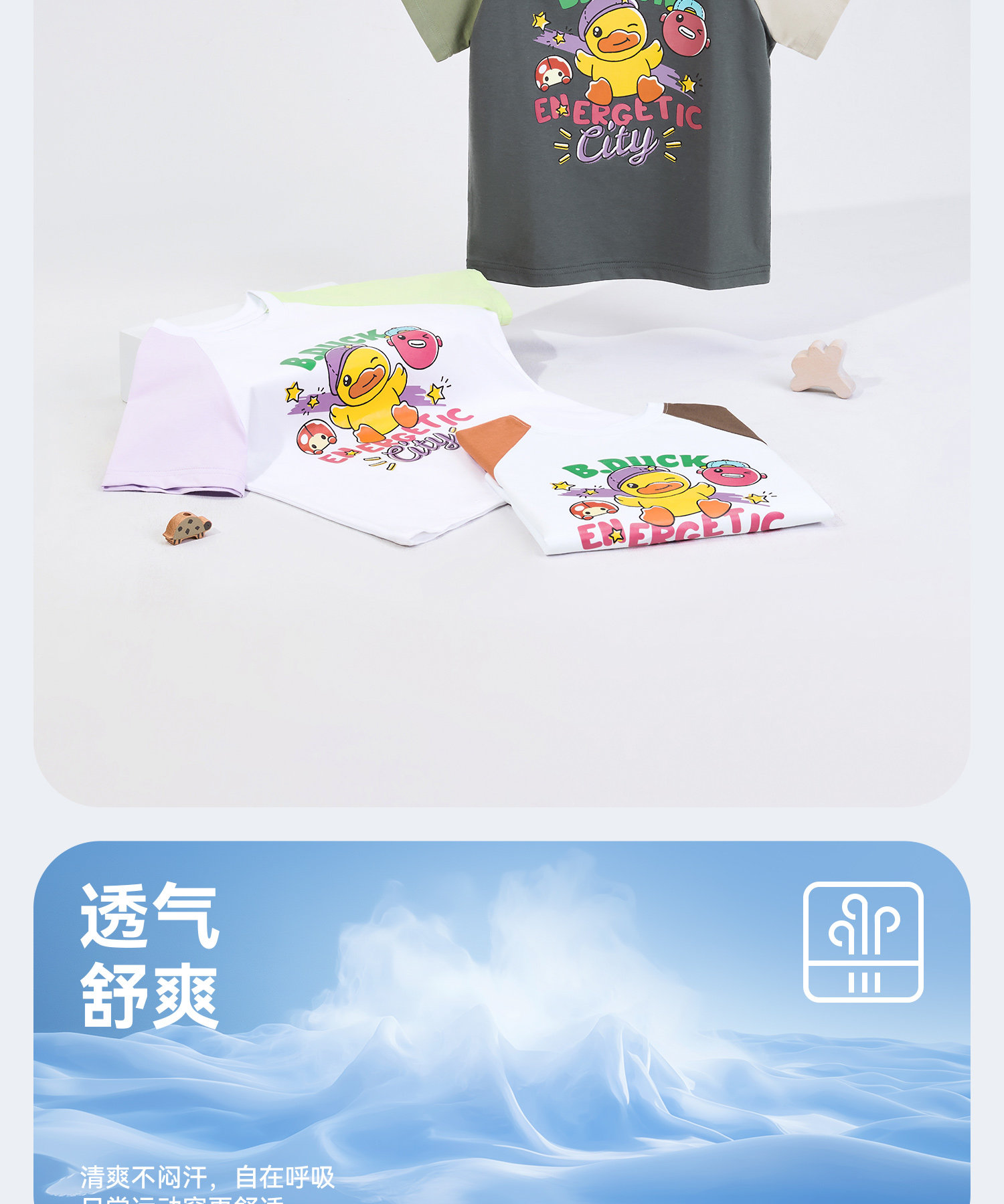 [凉感]bduck小黄鸭童装男童短袖T恤儿童透气上衣小童薄款半袖夏装110-160 BF2701047