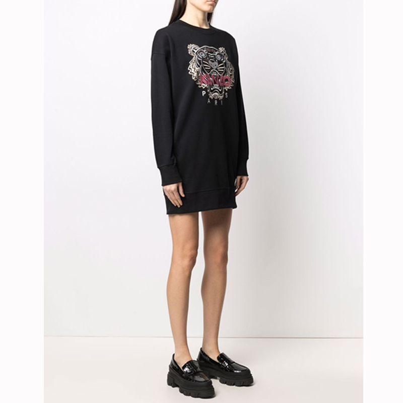 KENZO 高田贤三 刺绣大虎头 女士卫衣裙 黑色 FB62 RO774 4XA 99