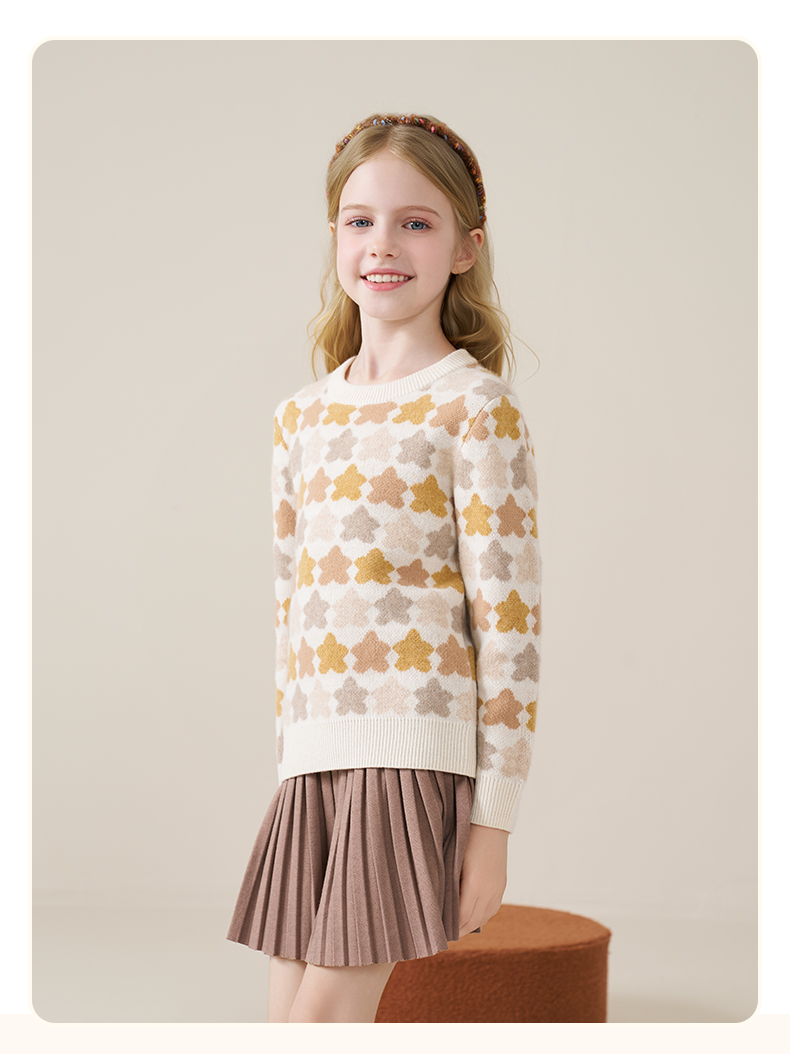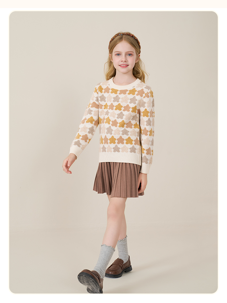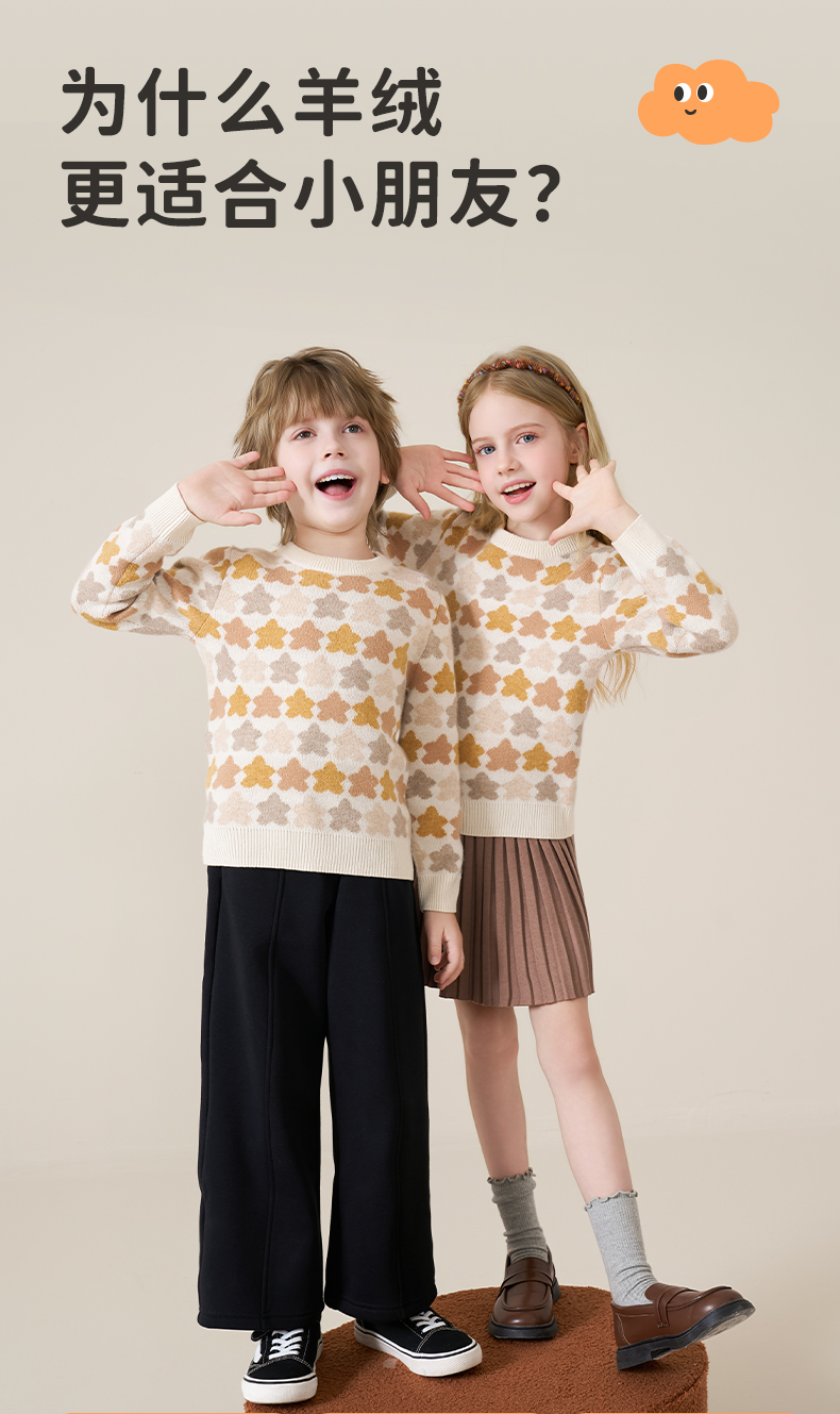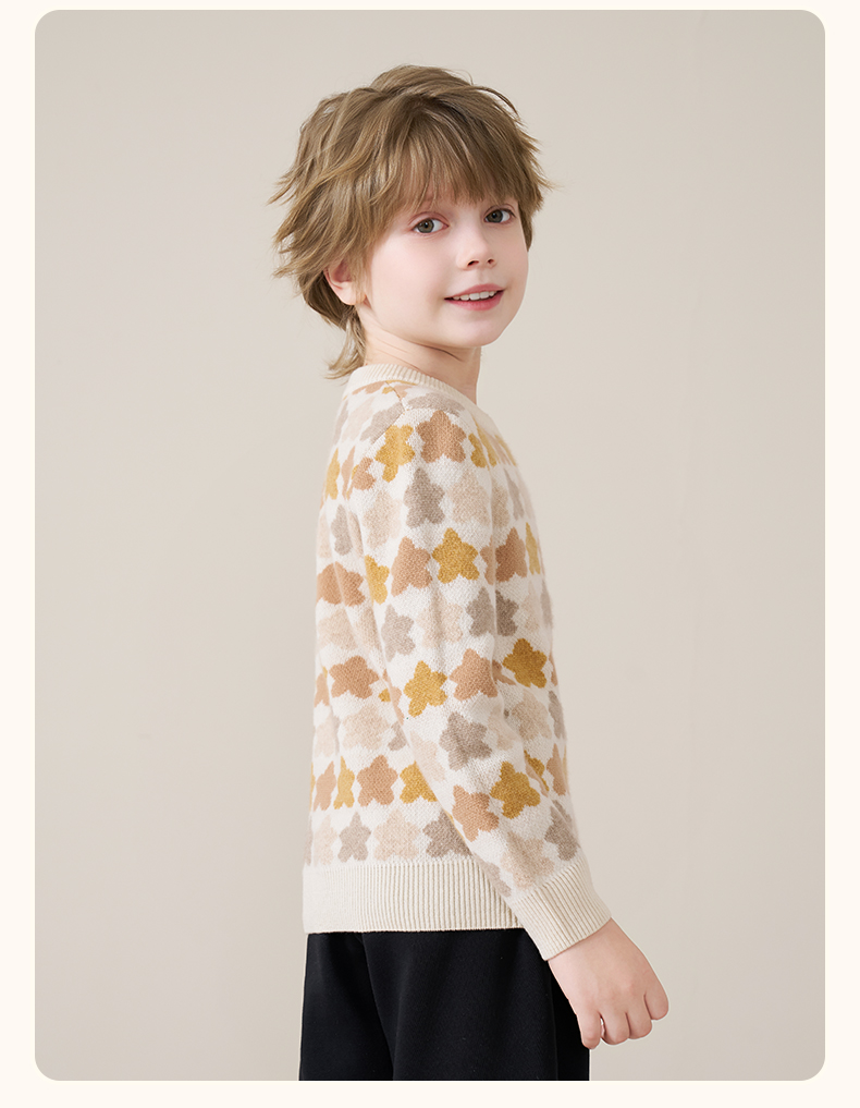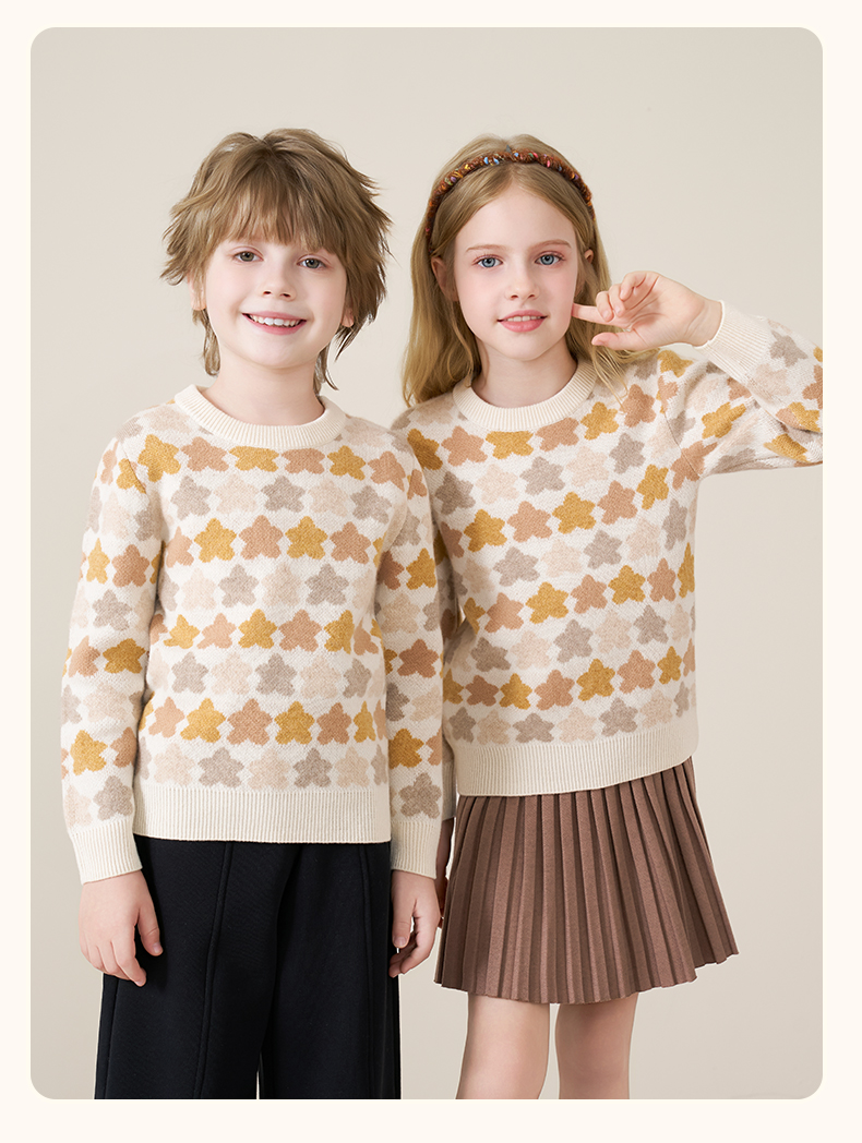 mettekids儿童100%羊绒衫2025秋冬女童芝麻点加厚男童针织衫毛衣