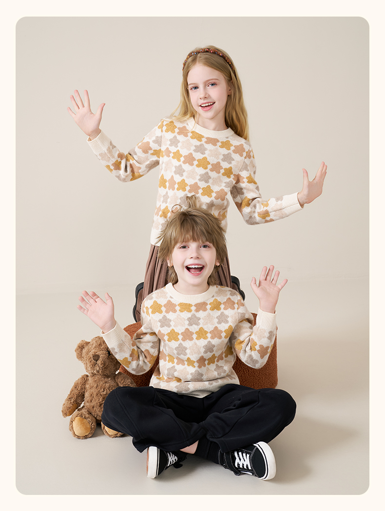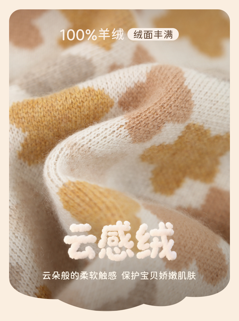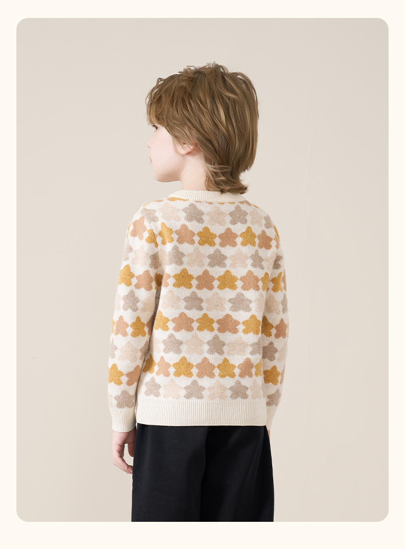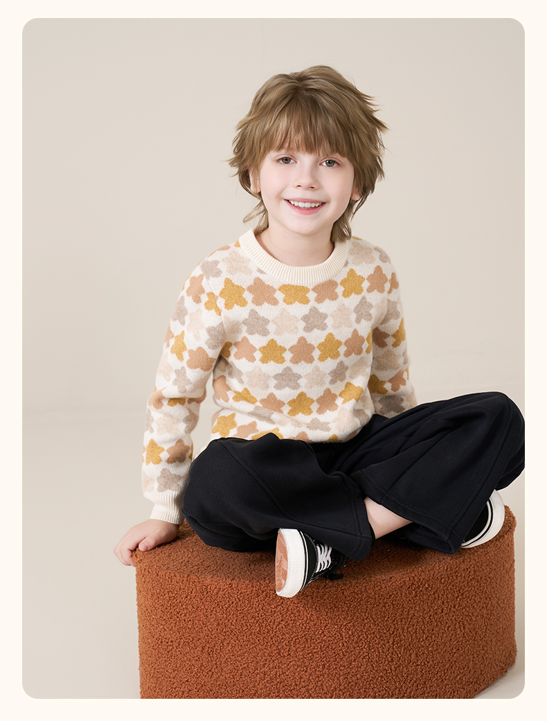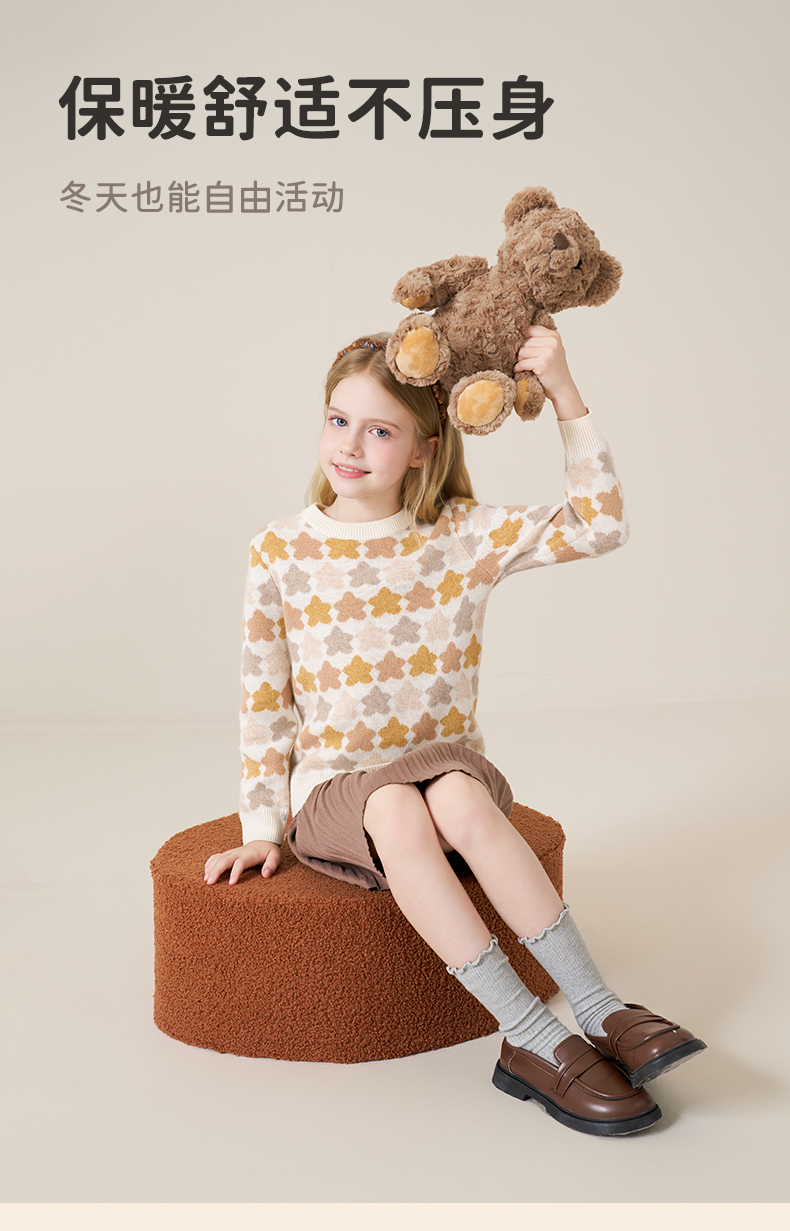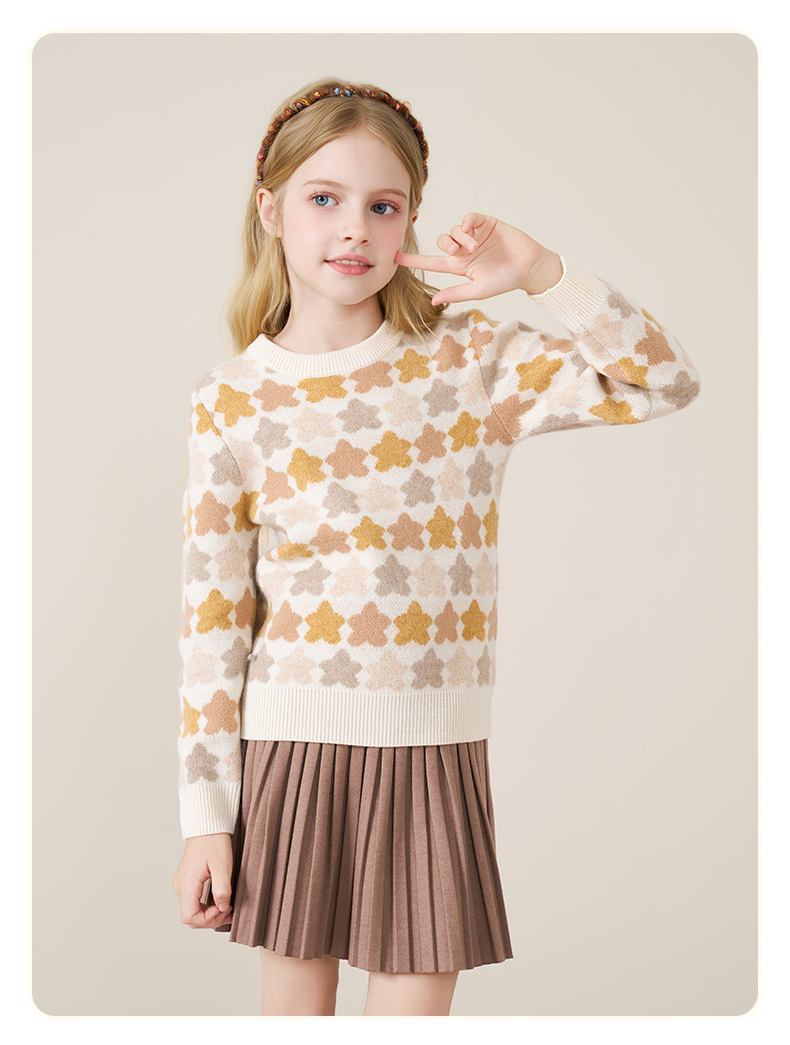 mettekids儿童100%羊绒衫2025秋冬女童芝麻点加厚男童针织衫毛衣