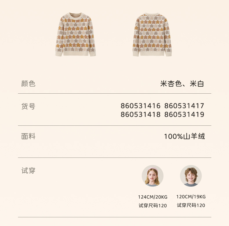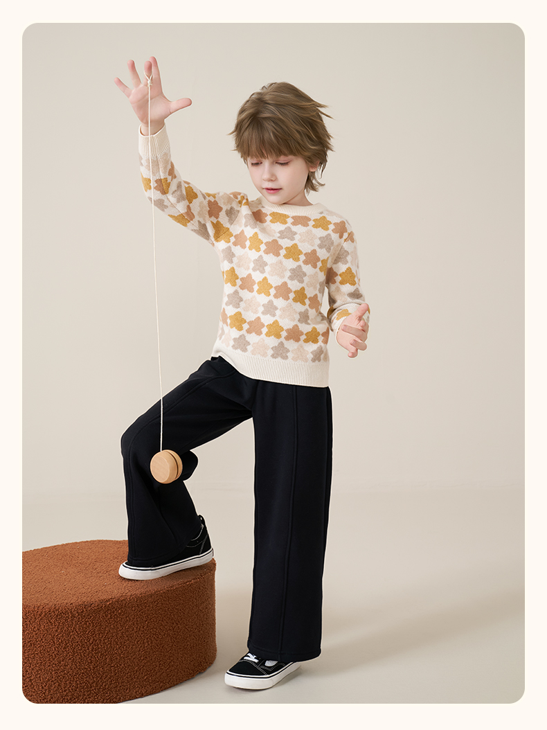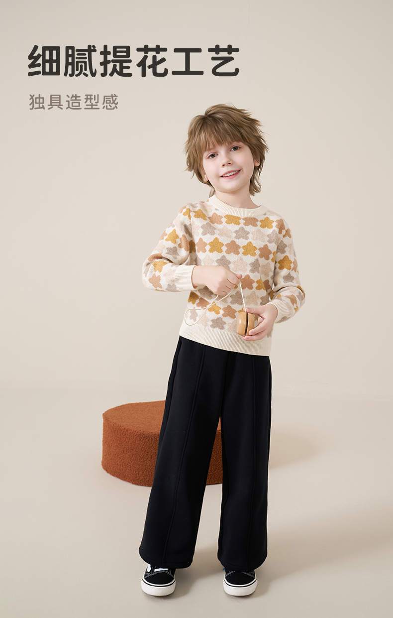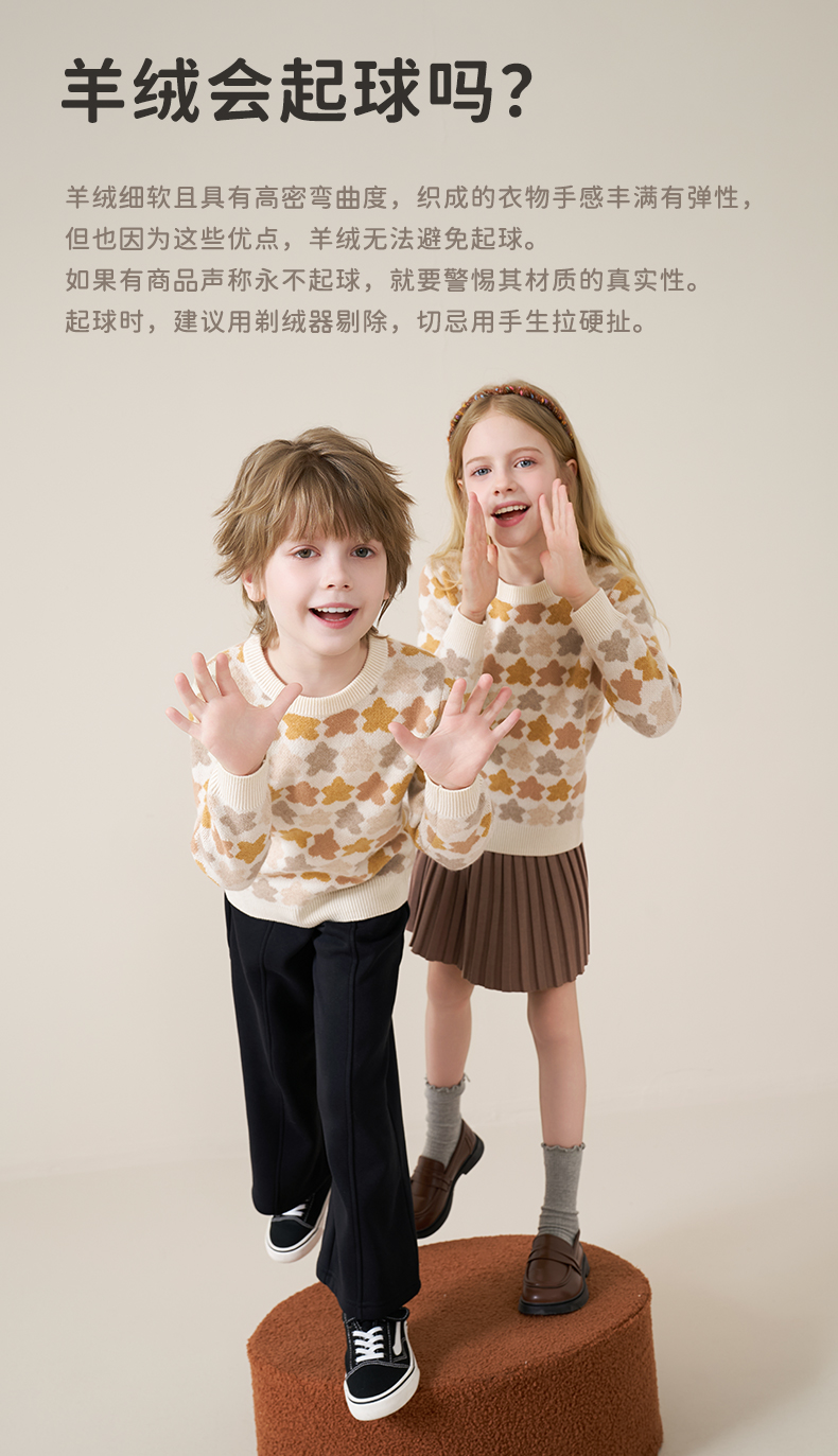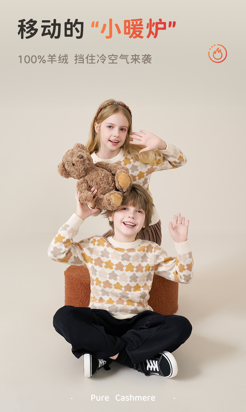 mettekids儿童100%羊绒衫2025秋冬女童芝麻点加厚男童针织衫毛衣