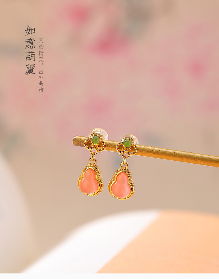 【福禄芳颜】S925纯银镀金水红南红玛瑙如意葫芦耳钉【CW-ED04462】