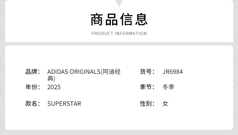 adidas阿迪达斯三叶草女子SUPERSTAR经典贝壳头板鞋运动鞋JR6984