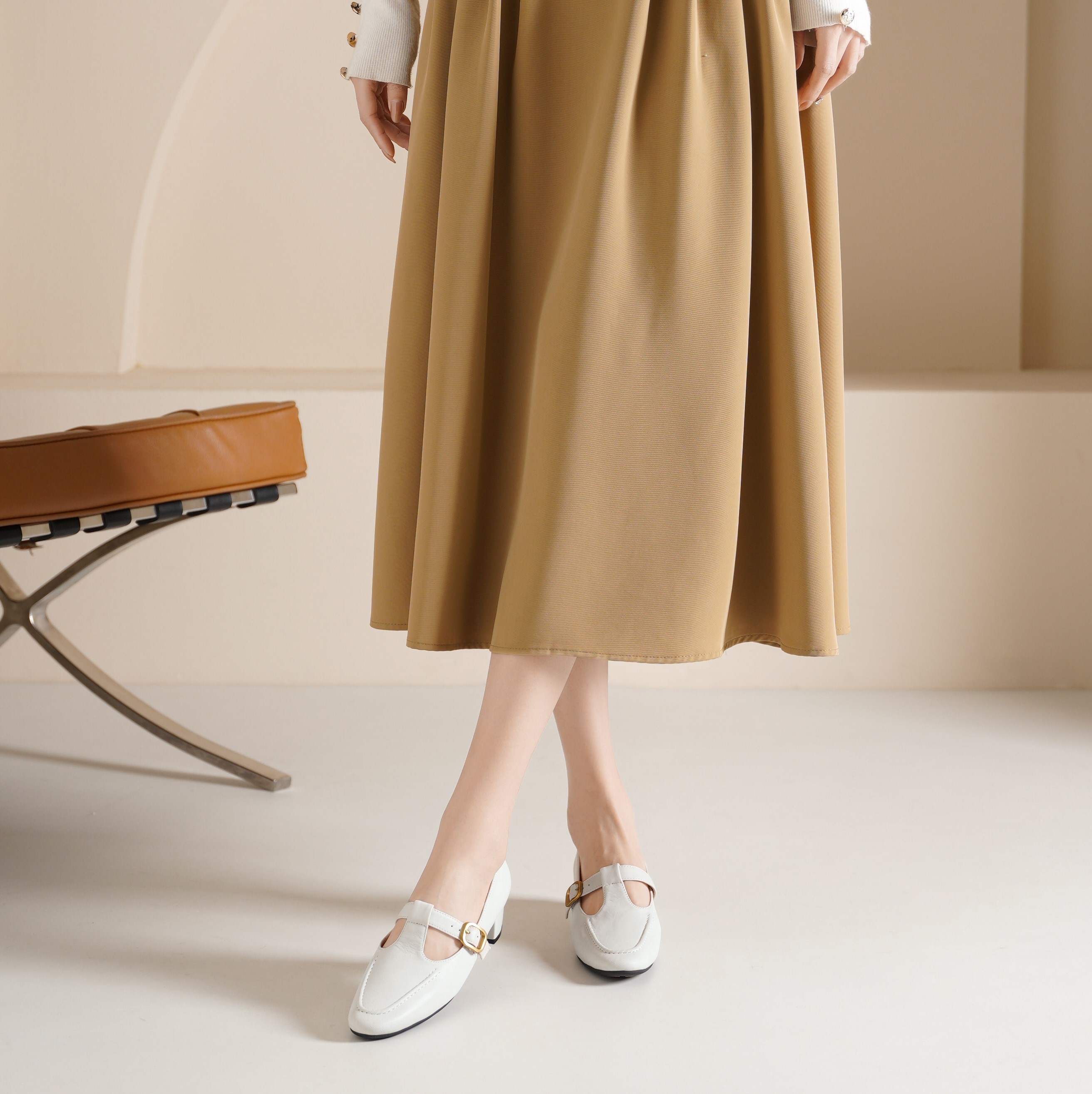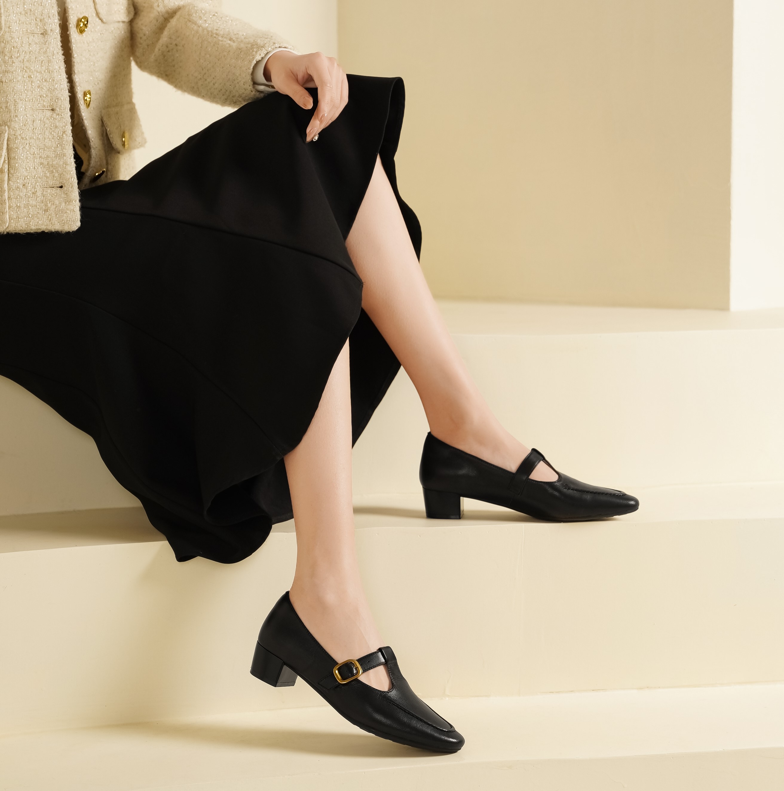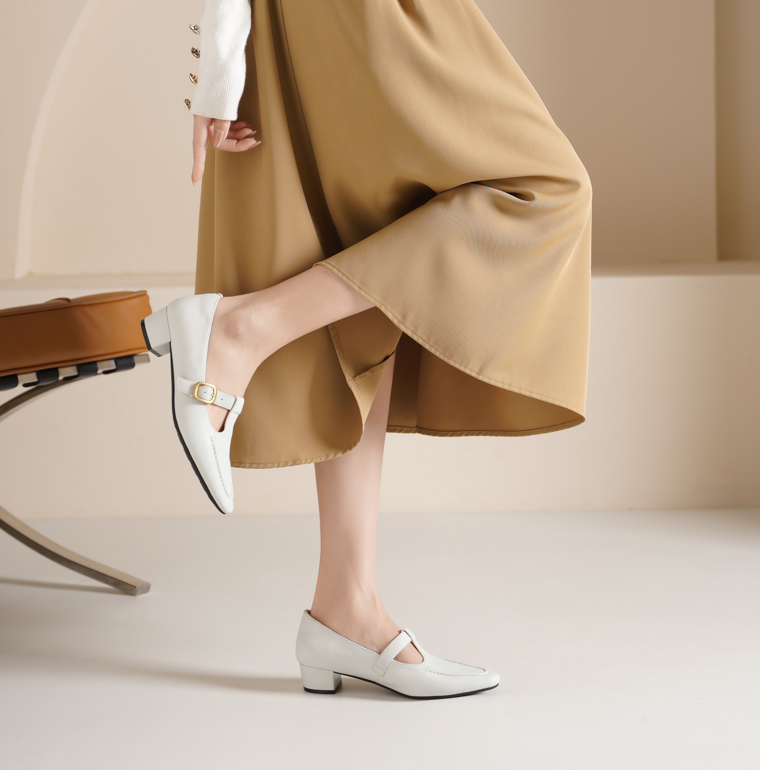 西村名物2025年春季新款低跟复古舒适扣带百搭单鞋T25AM15061