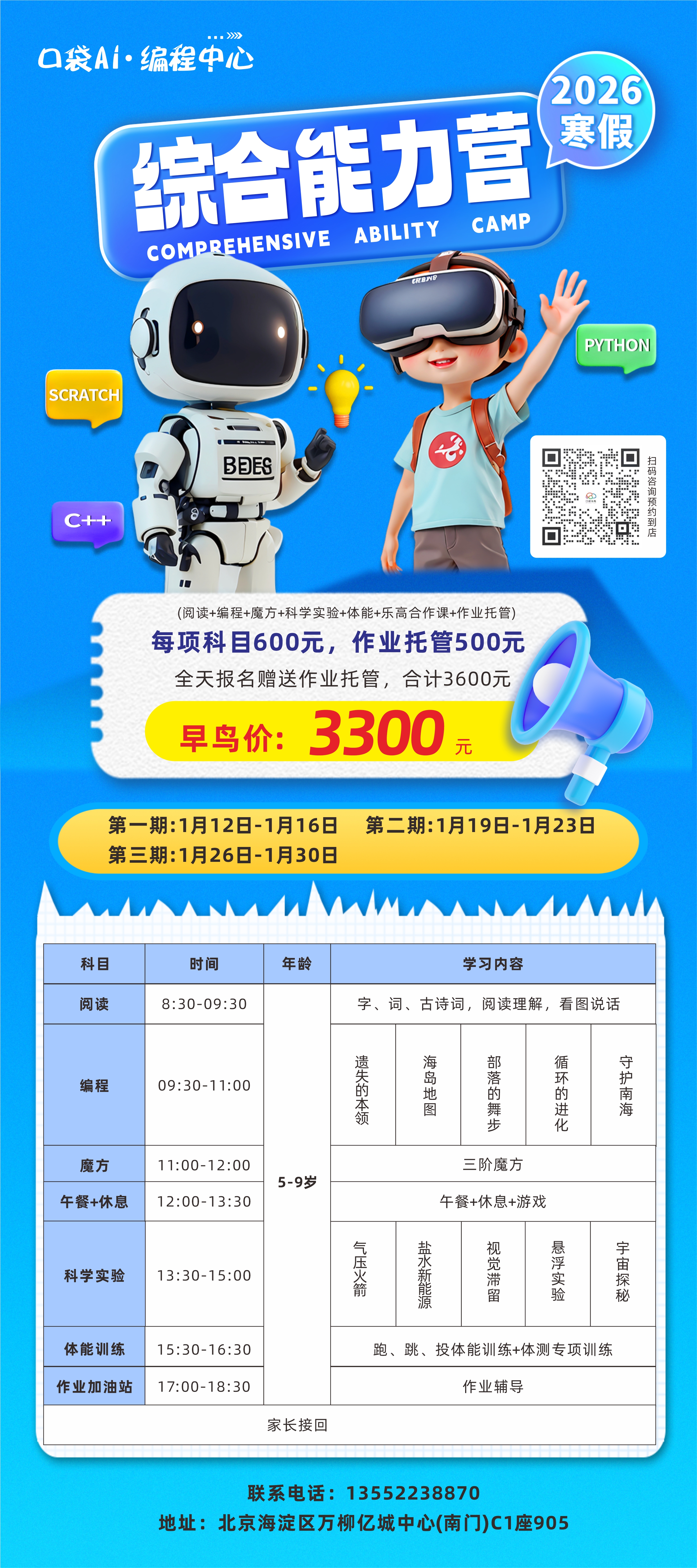 【口袋AI·编程中心】2026寒假综合能力托管营