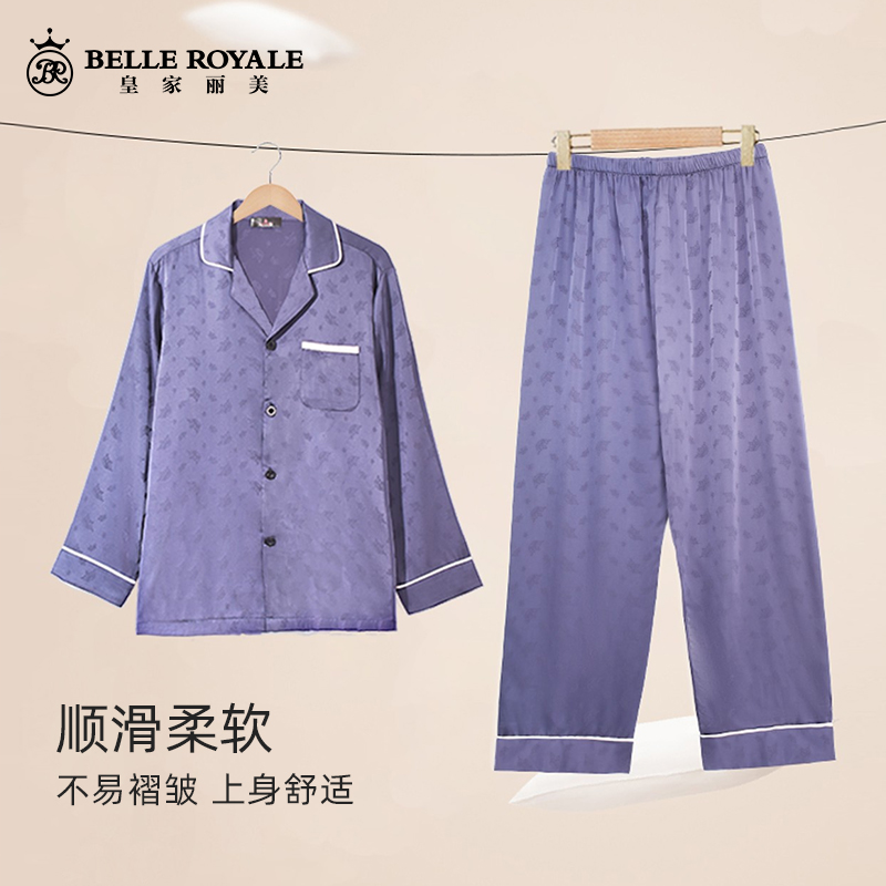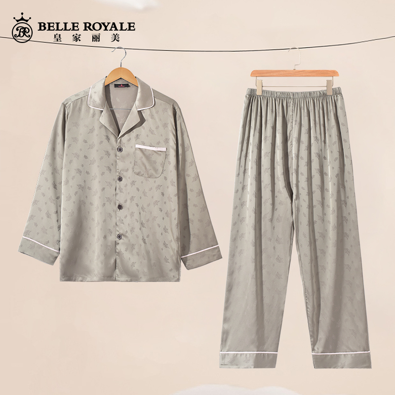 皇家丽美男士睡衣长袖长裤开衫薄款休闲家居服套装JJT90027