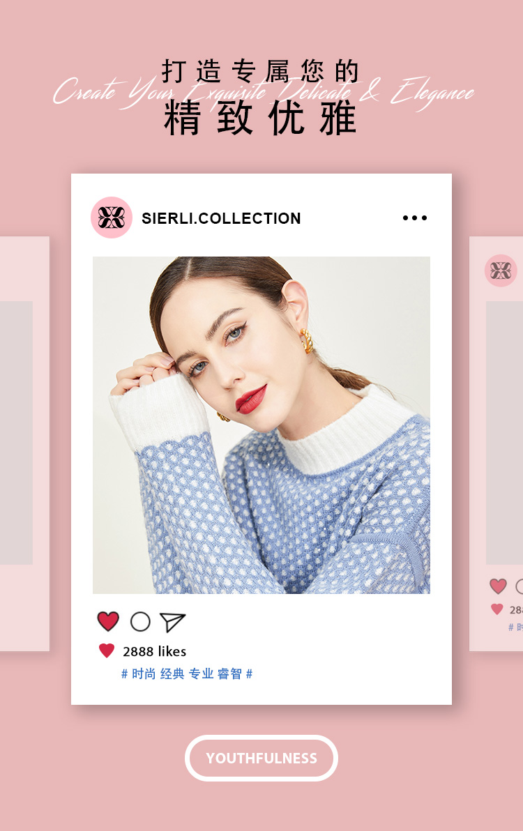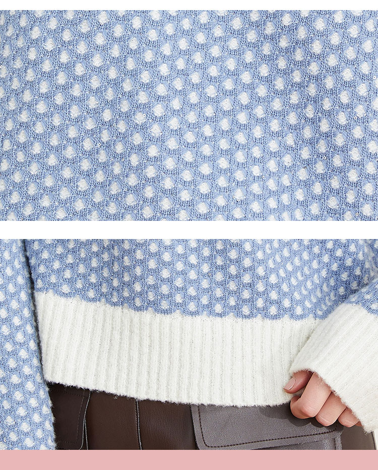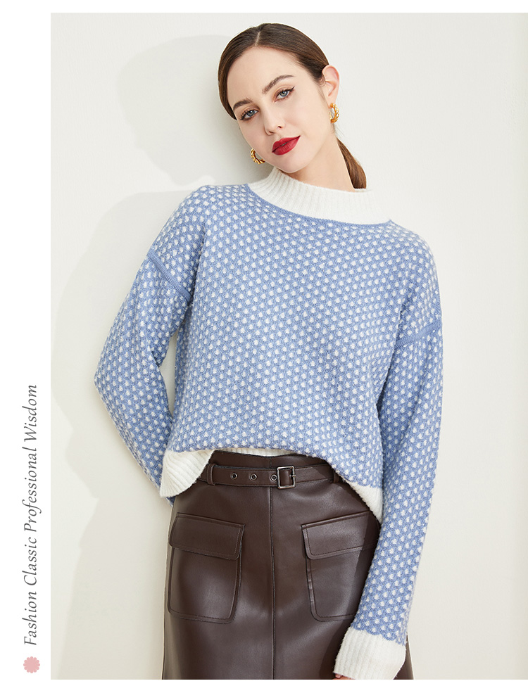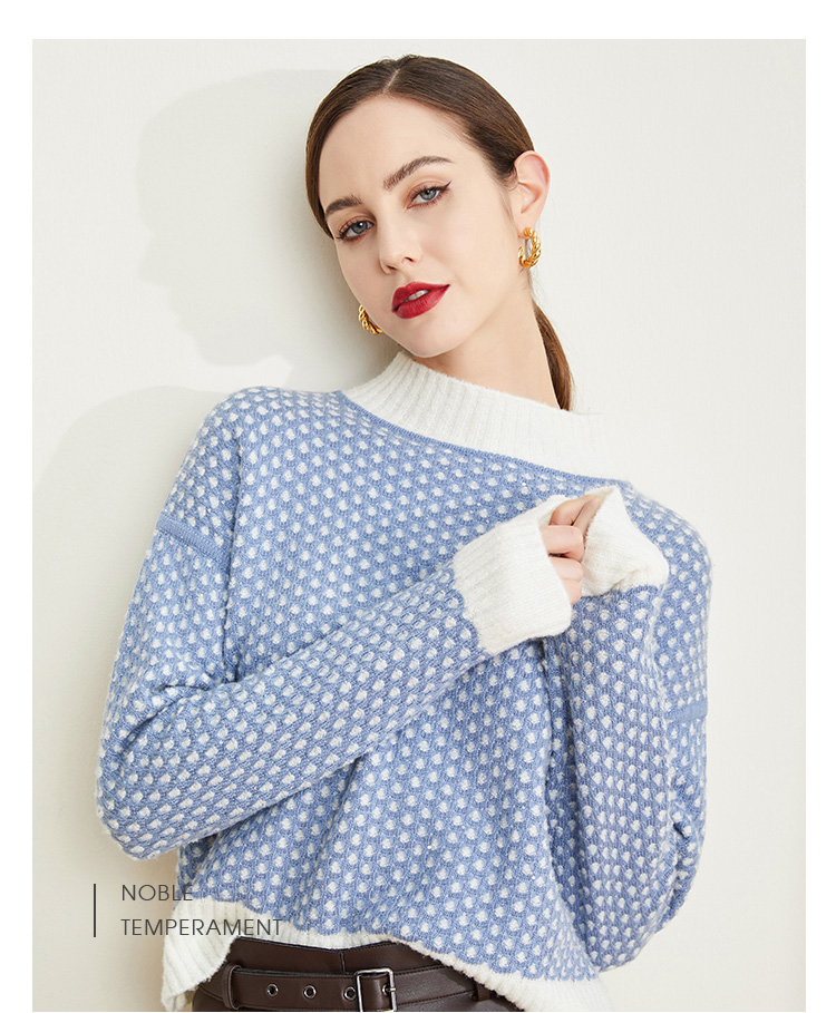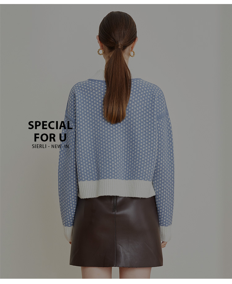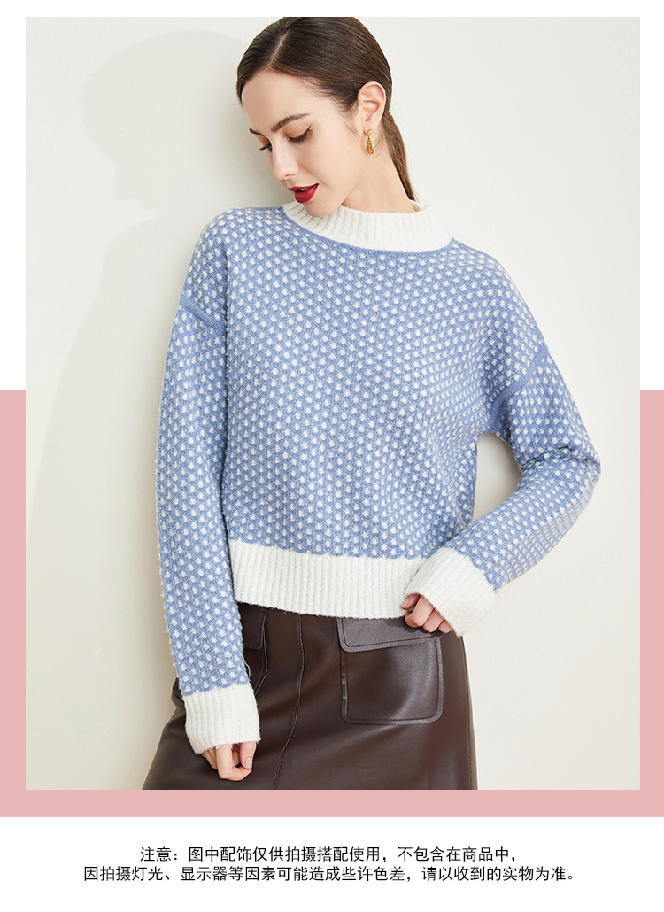 NC60L瑟俪(斯尔丽高端)舒适柔软低圆领拼色毛衣针织衫