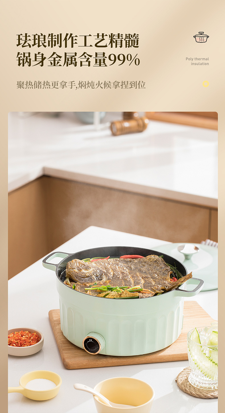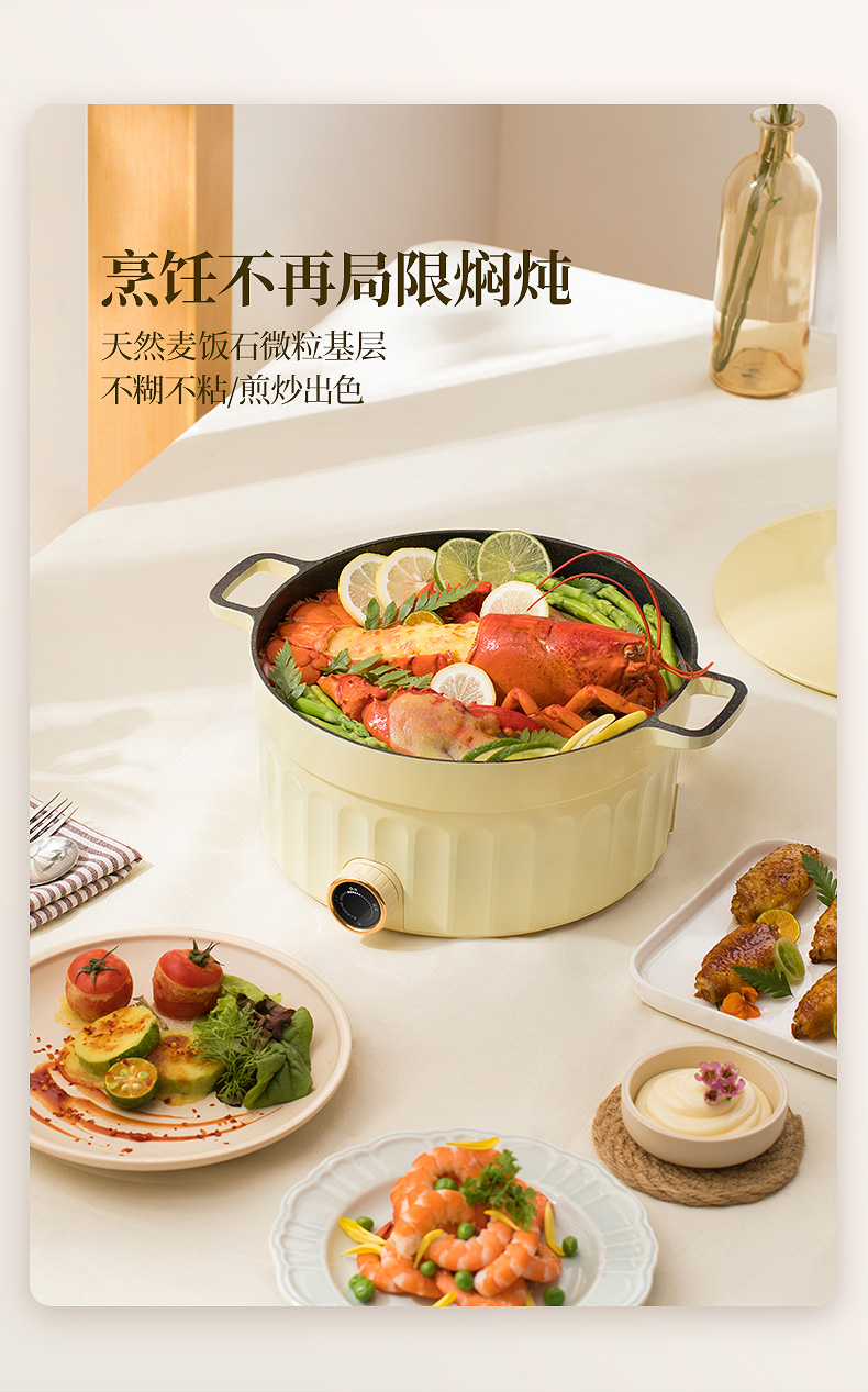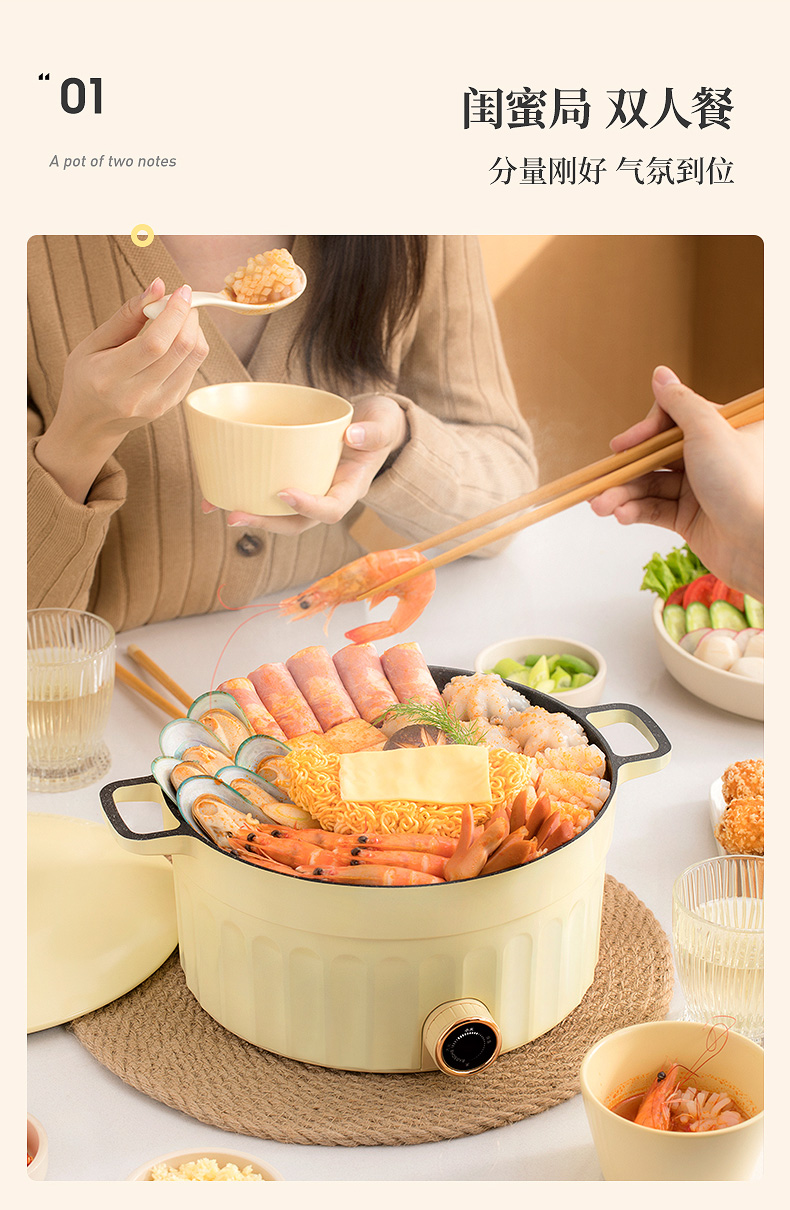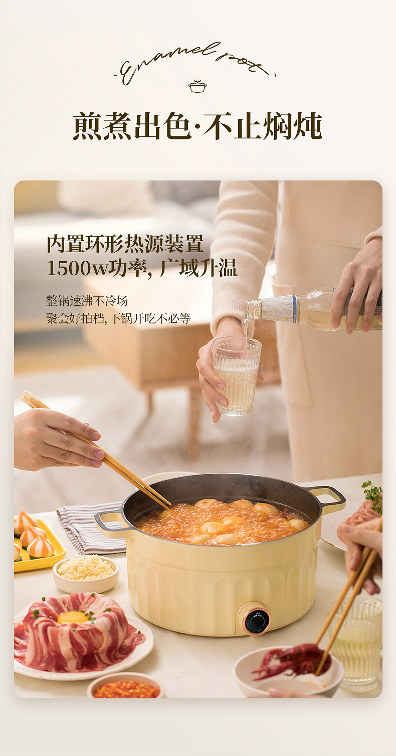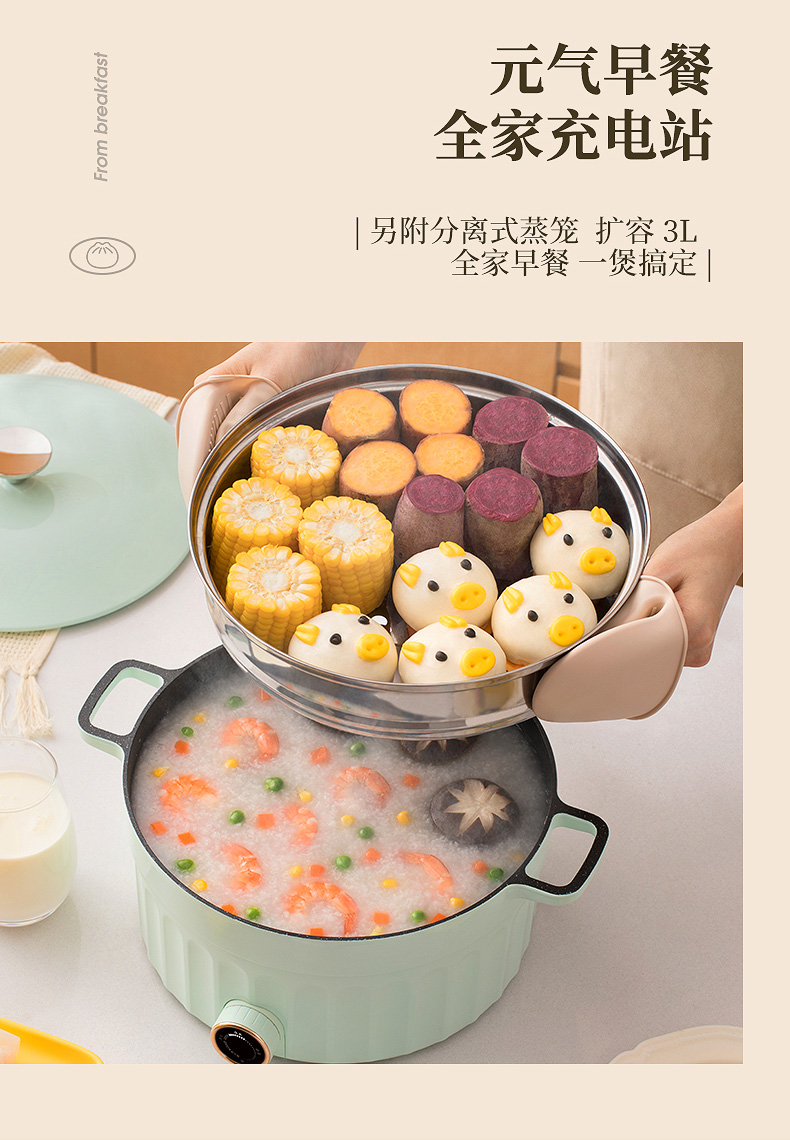 朋森多功能电火锅家用大容量一体锅电热火锅专用蒸煮煎炒烤电煮锅1500w大功率加热快