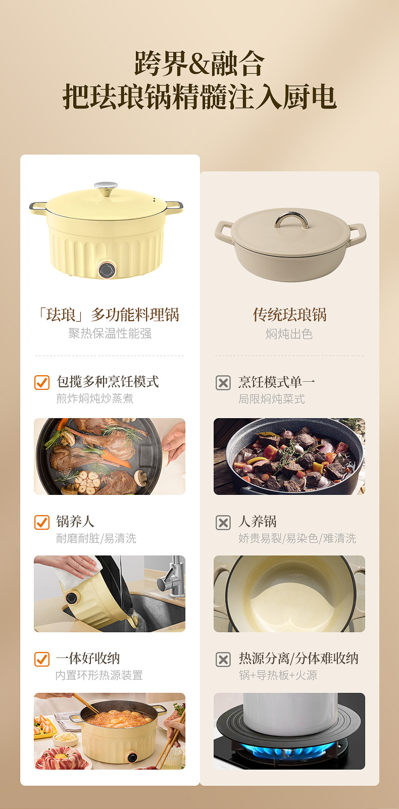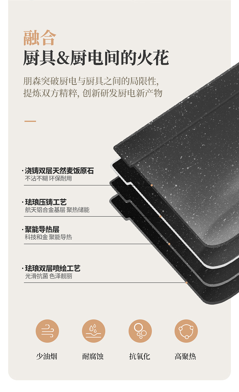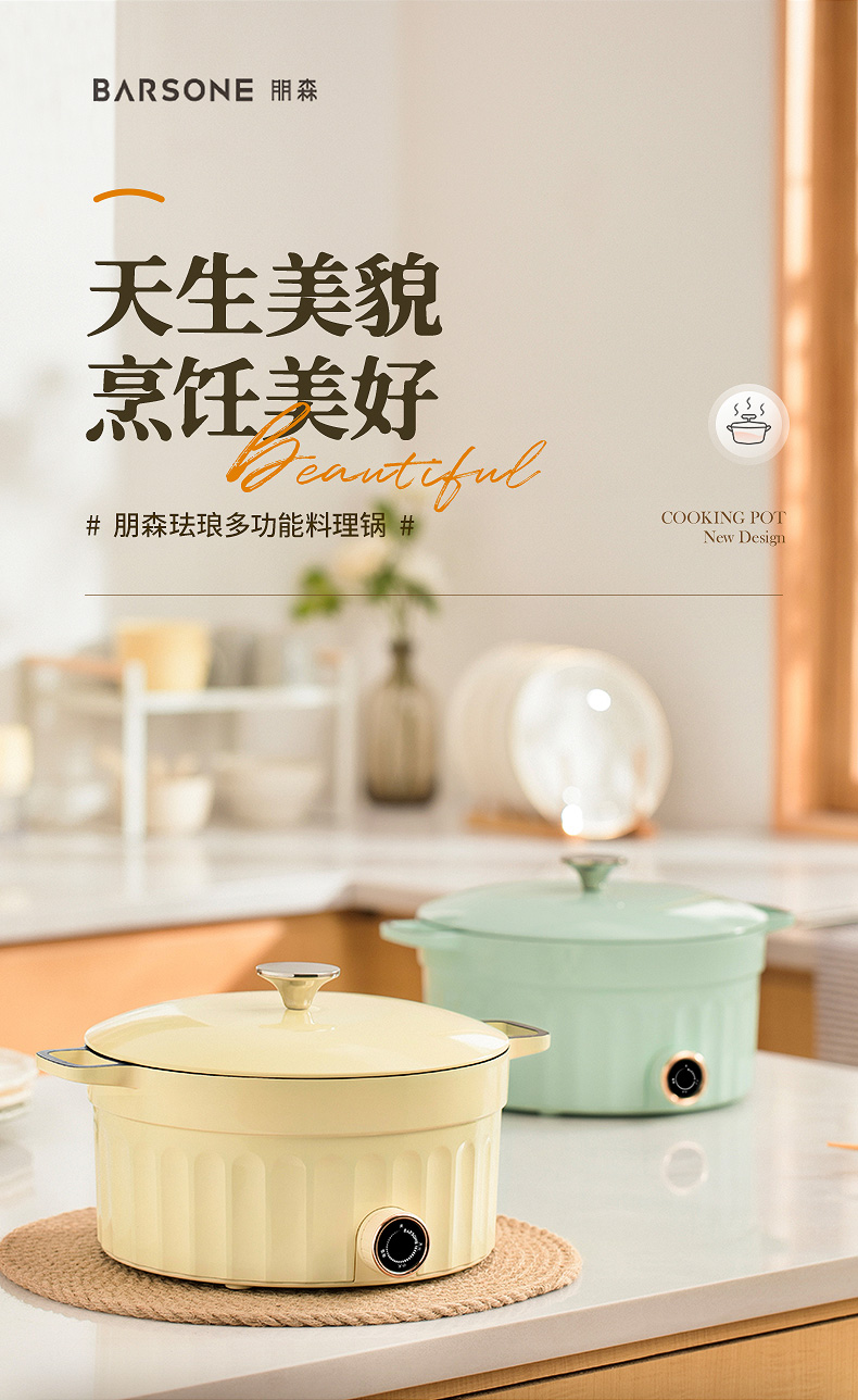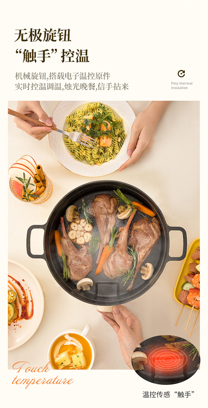 朋森多功能电火锅家用大容量一体锅电热火锅专用蒸煮煎炒烤电煮锅1500w大功率加热快