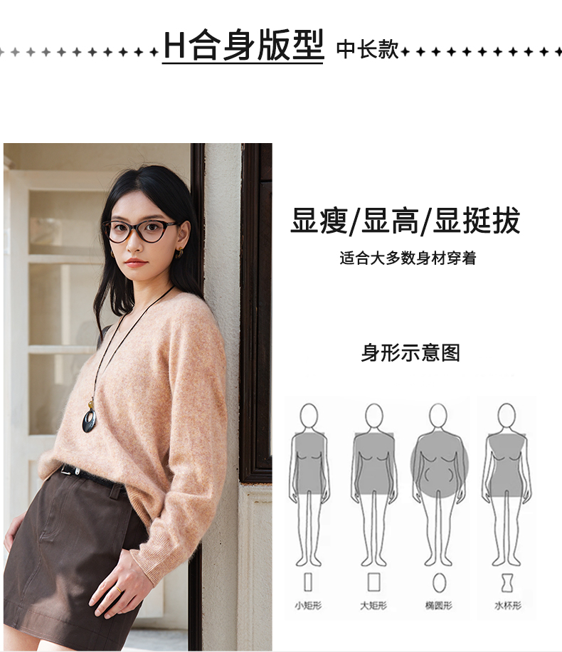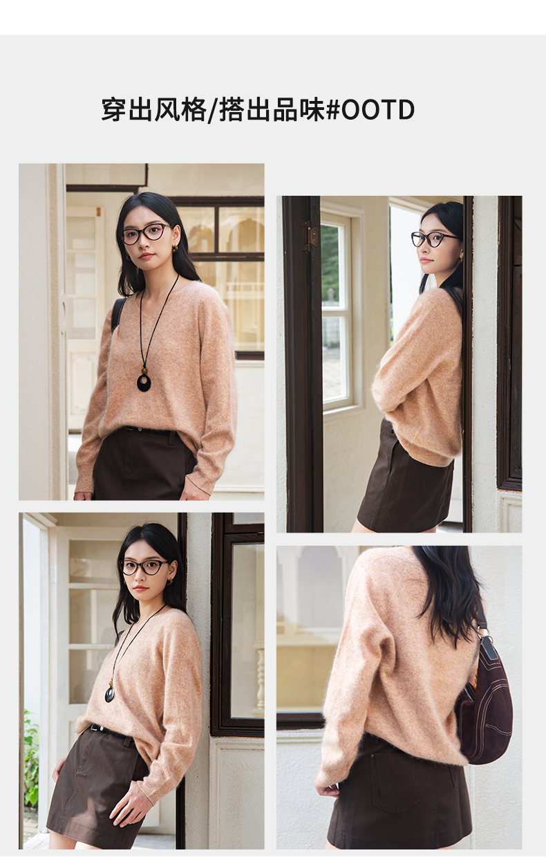 【门店同款】ENJOY冬季“暖冬知性”V领羊绒针织上衣 166693311