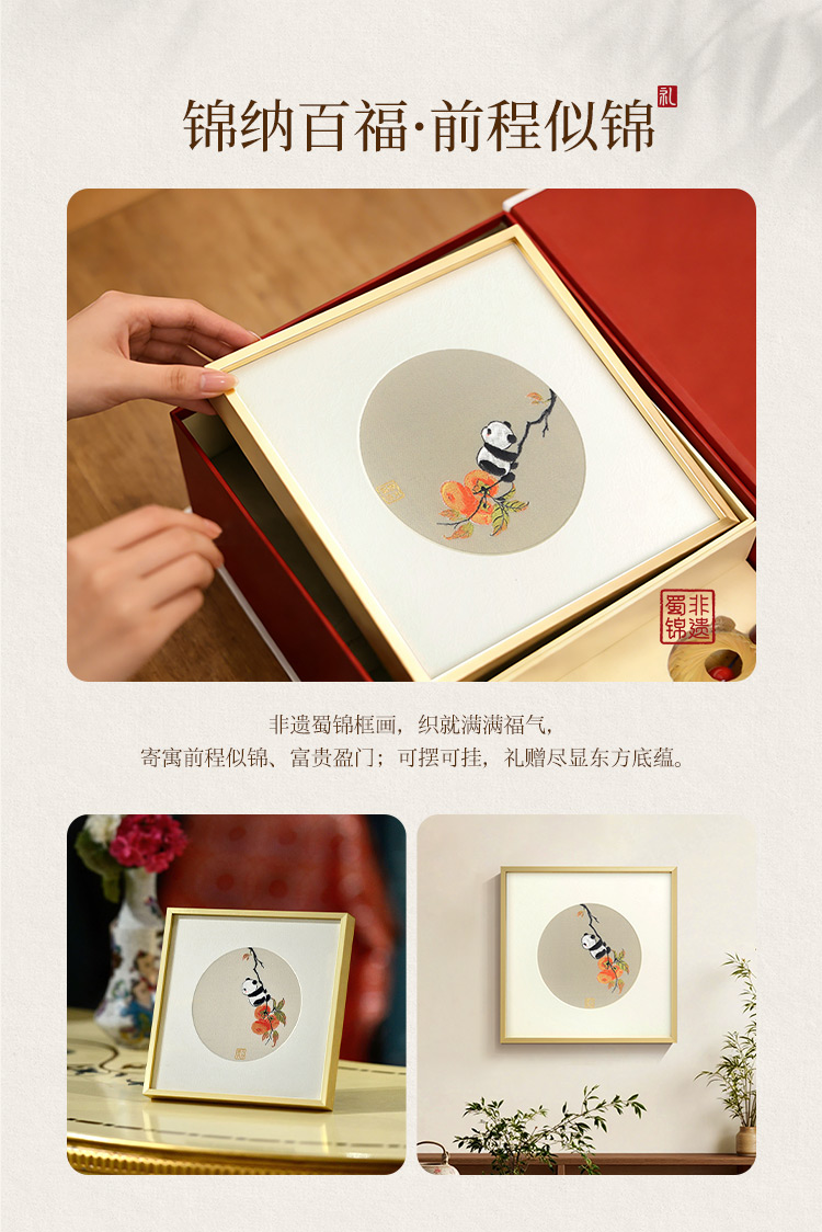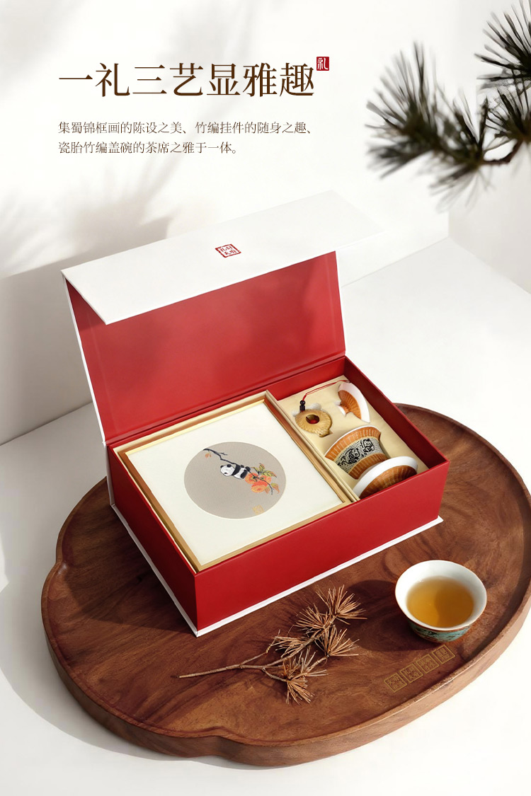 【锦绣竹安非遗礼盒】礼好天府非遗蜀锦框画摆件挂架+竹编挂件+瓷胎竹编盖碗三件套伴手礼 四川特色国潮文创 公司企业高档礼品 客户送礼纪念品 支持定制