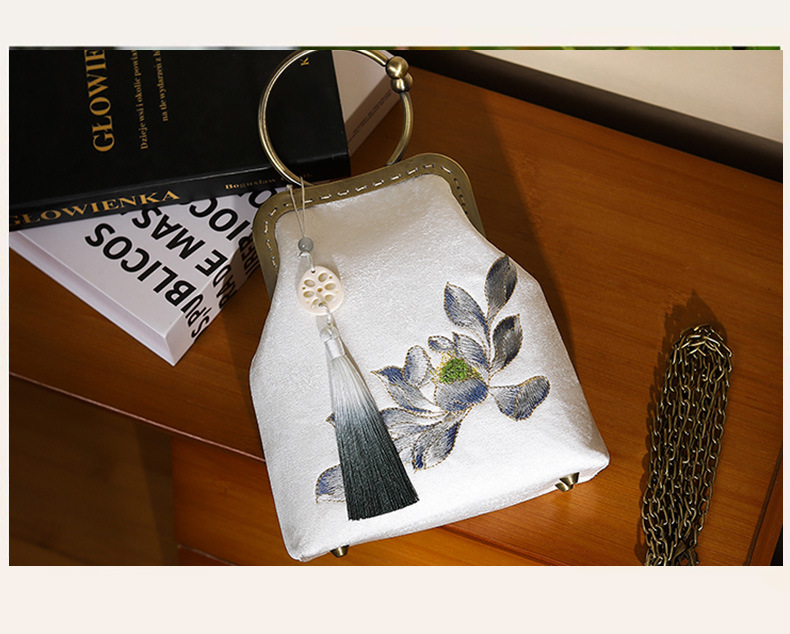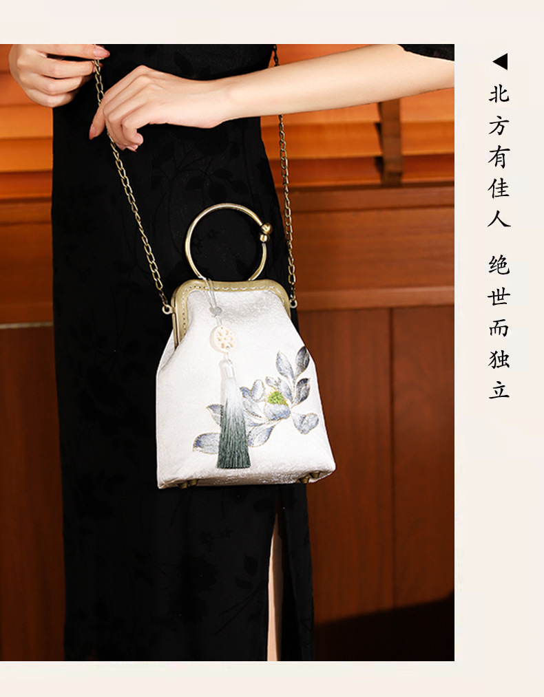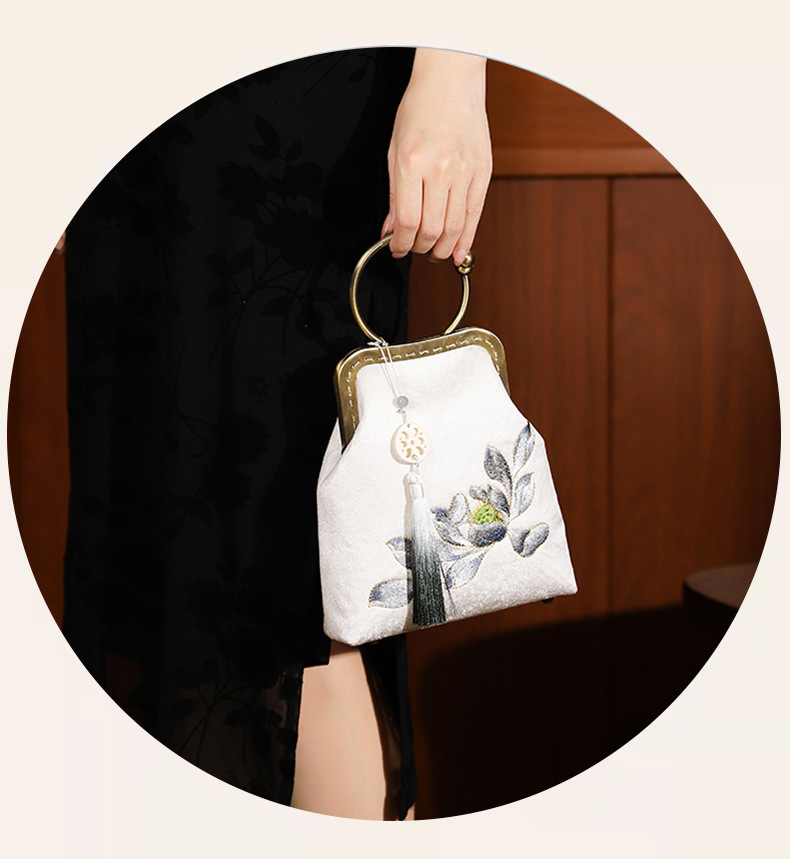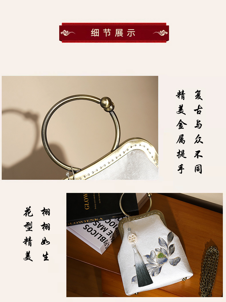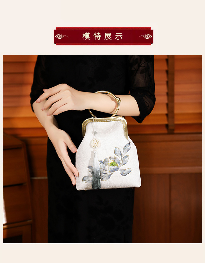 古风包旗袍绣花金口手拎包,复古民刺绣手提包JX-银莲