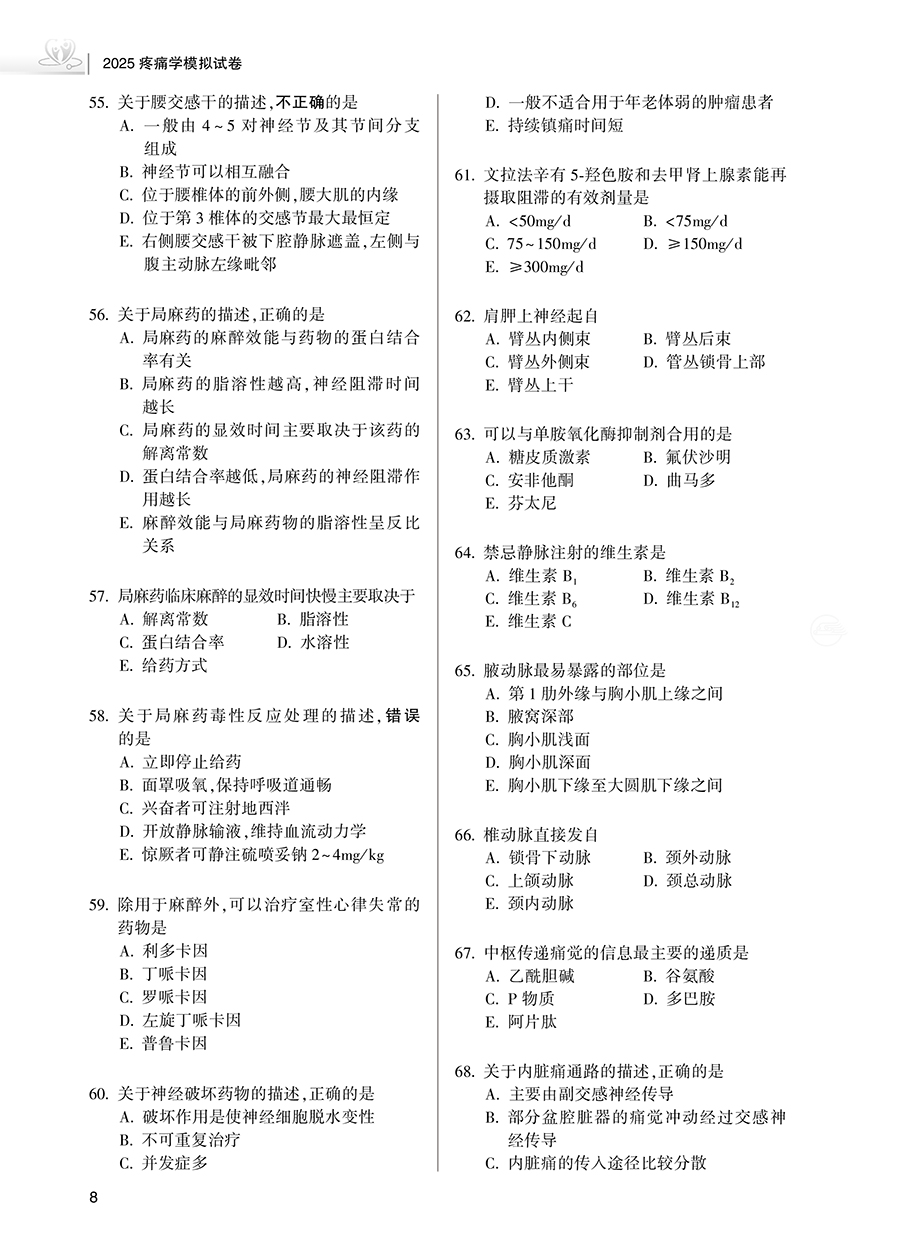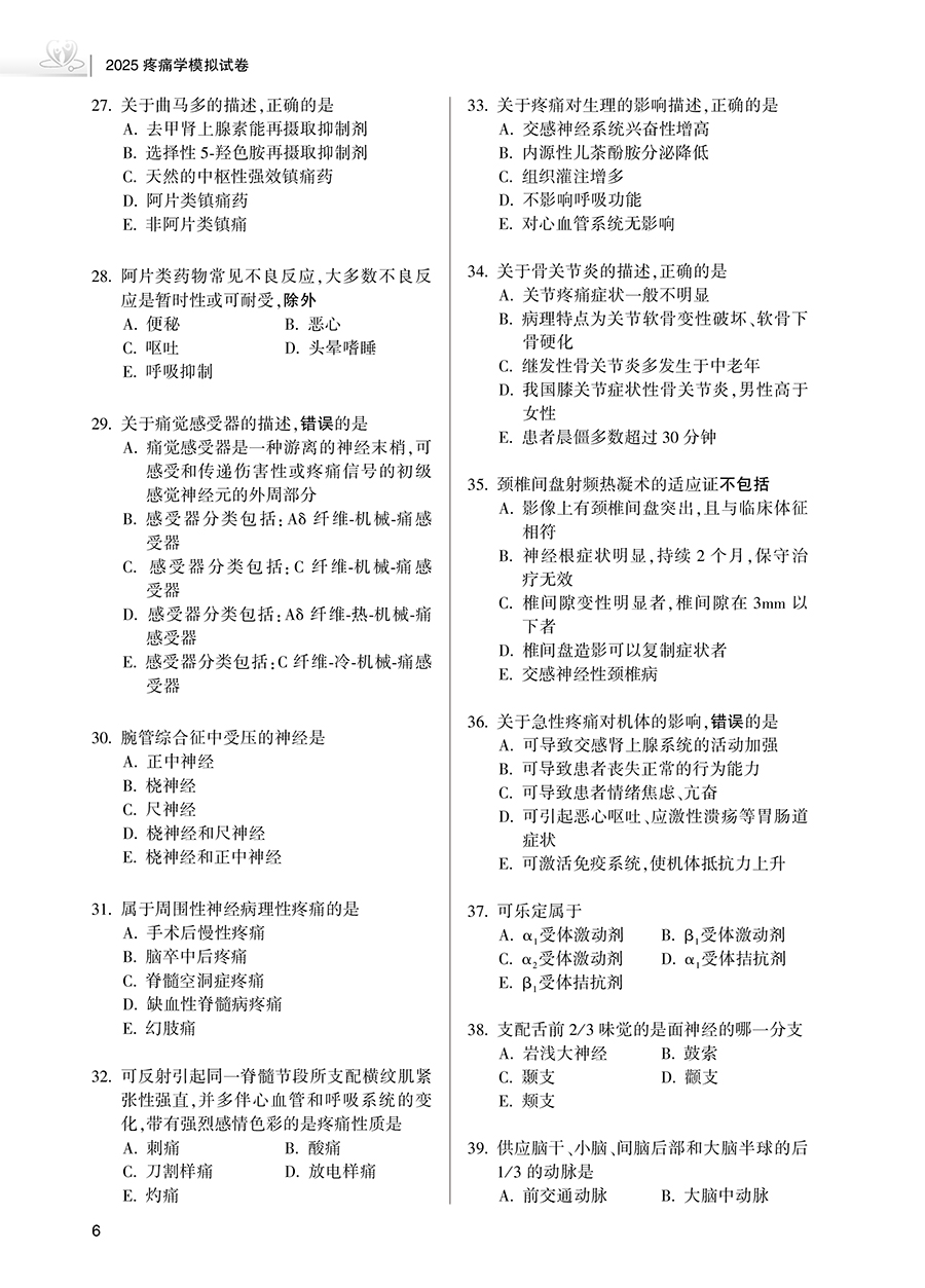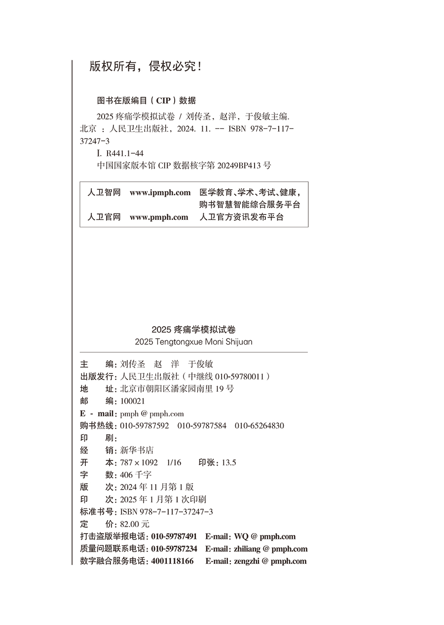 2025疼痛学模拟试卷 全国卫生专业技术资格考试习题集丛书 刘传圣 赵洋 于俊敏主编 适用专业 疼痛学(中级) 人民卫生出版社