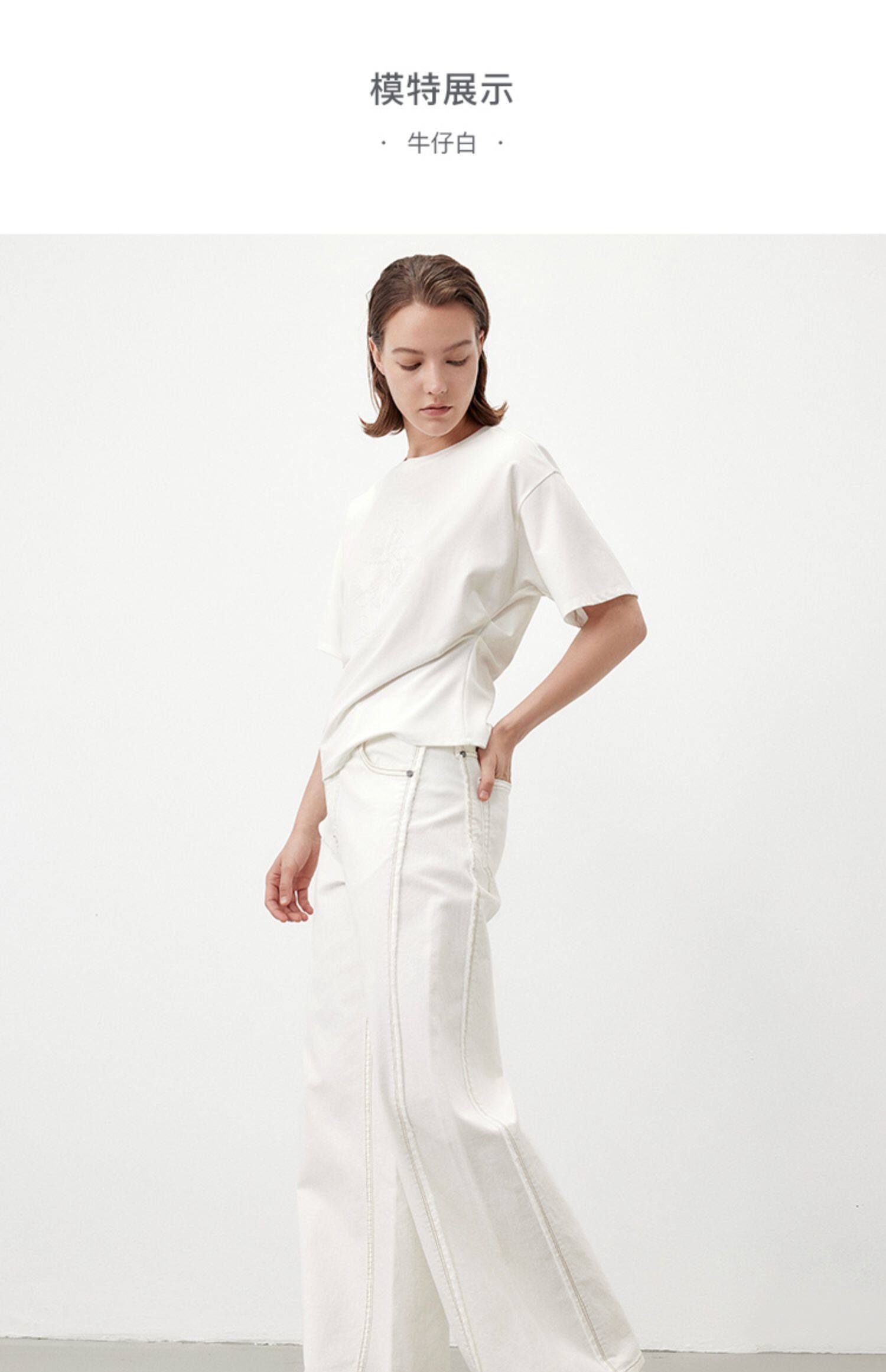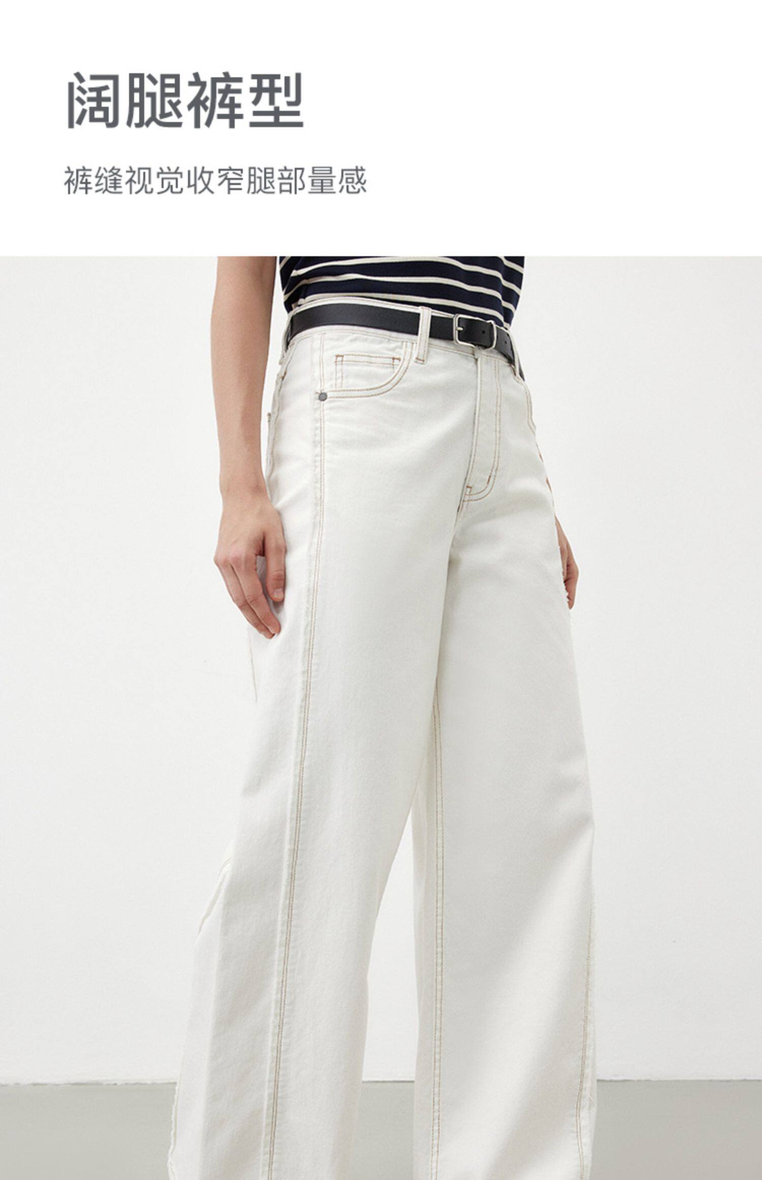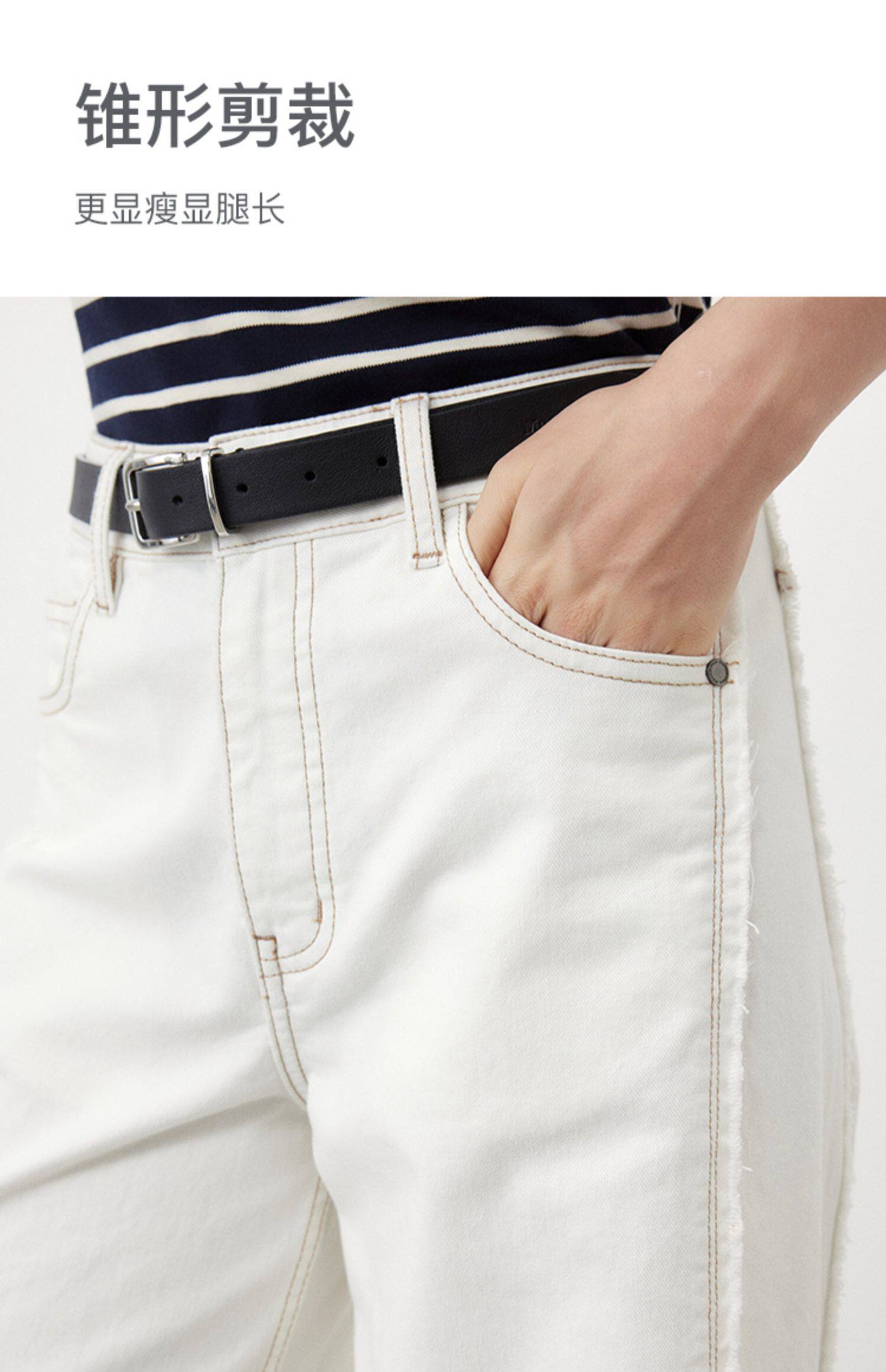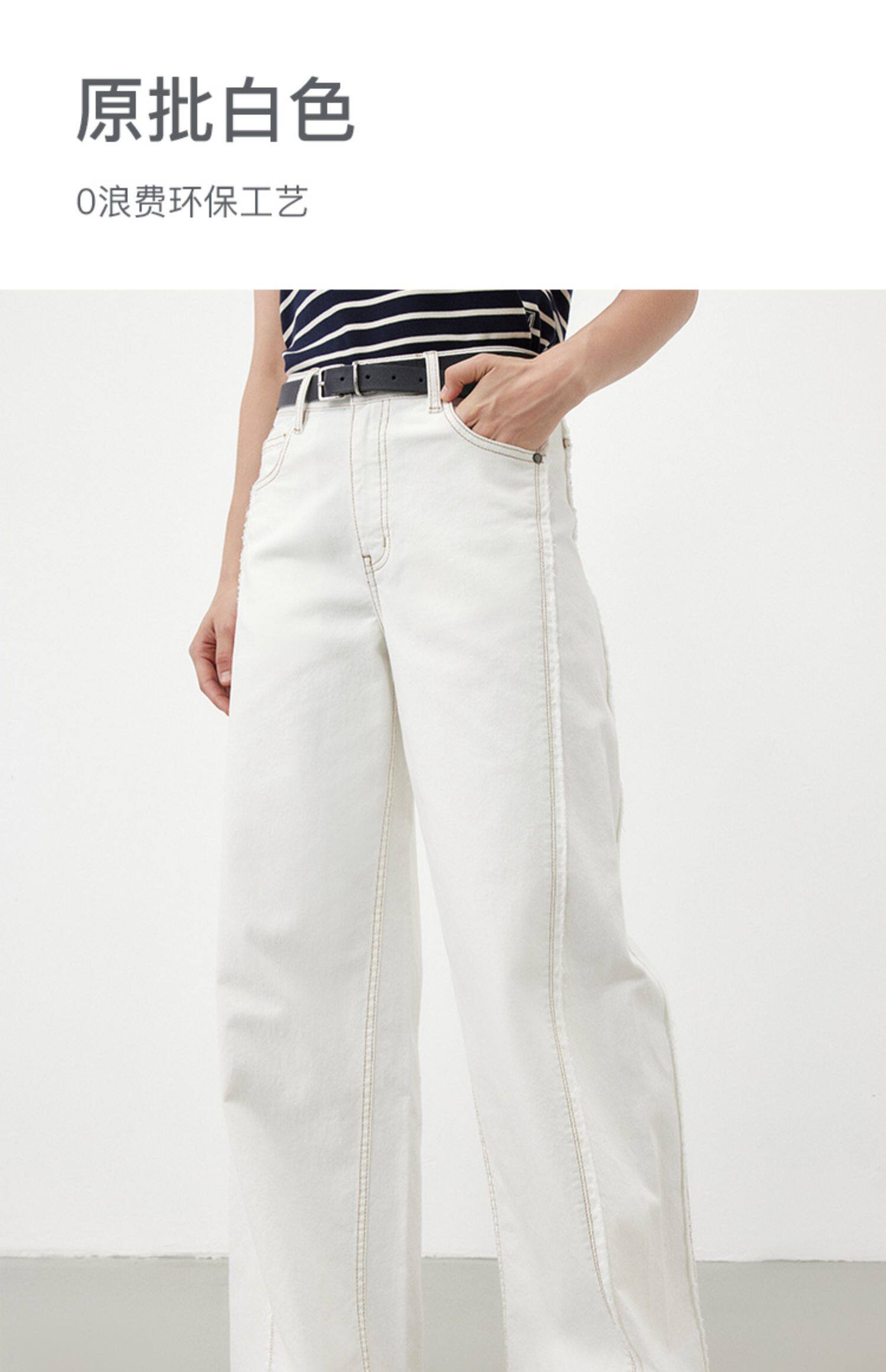 Marc O'Polo/MOP夏季新款气质高级感时尚毛边白色女士阔腿牛仔裤