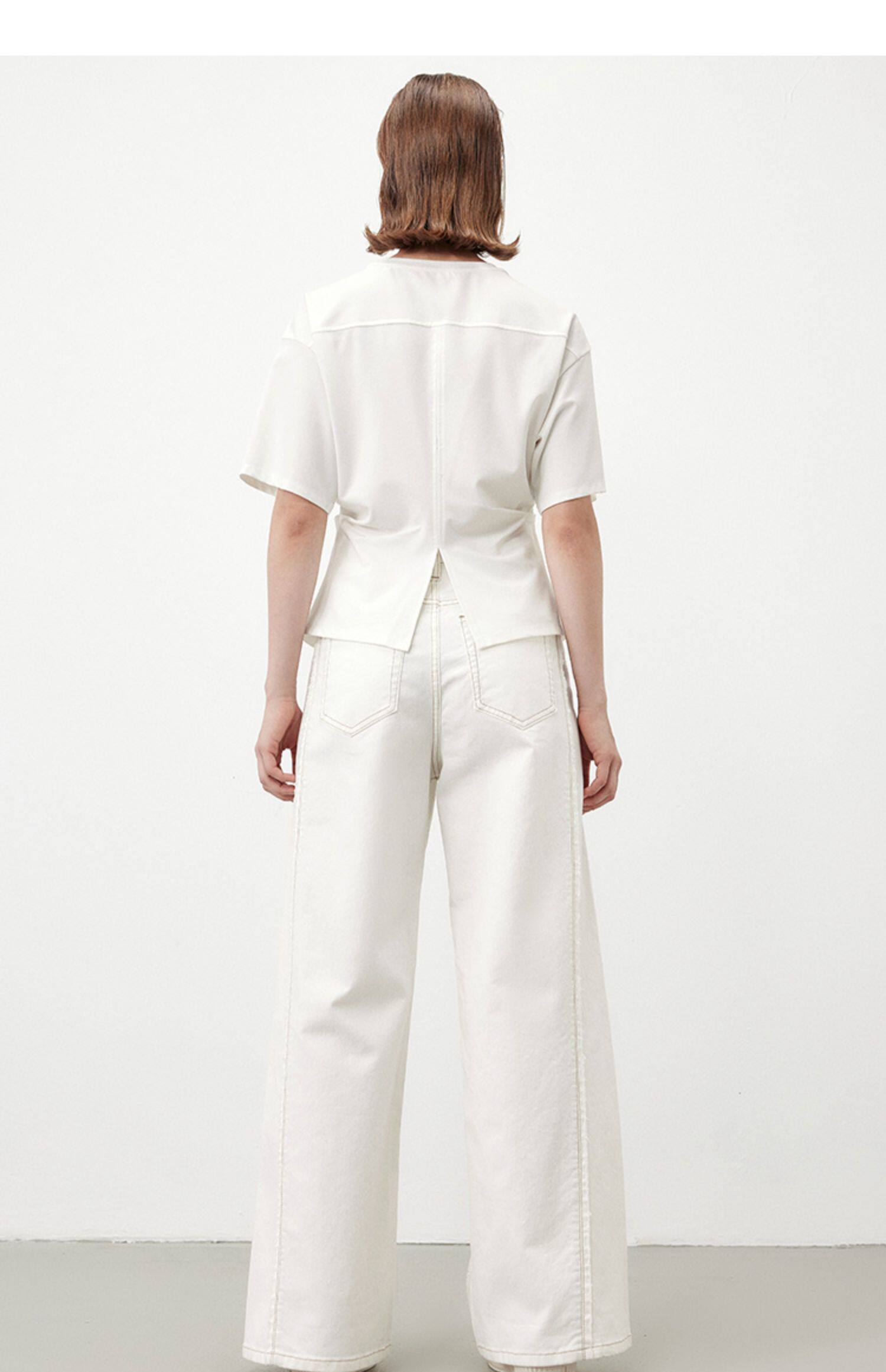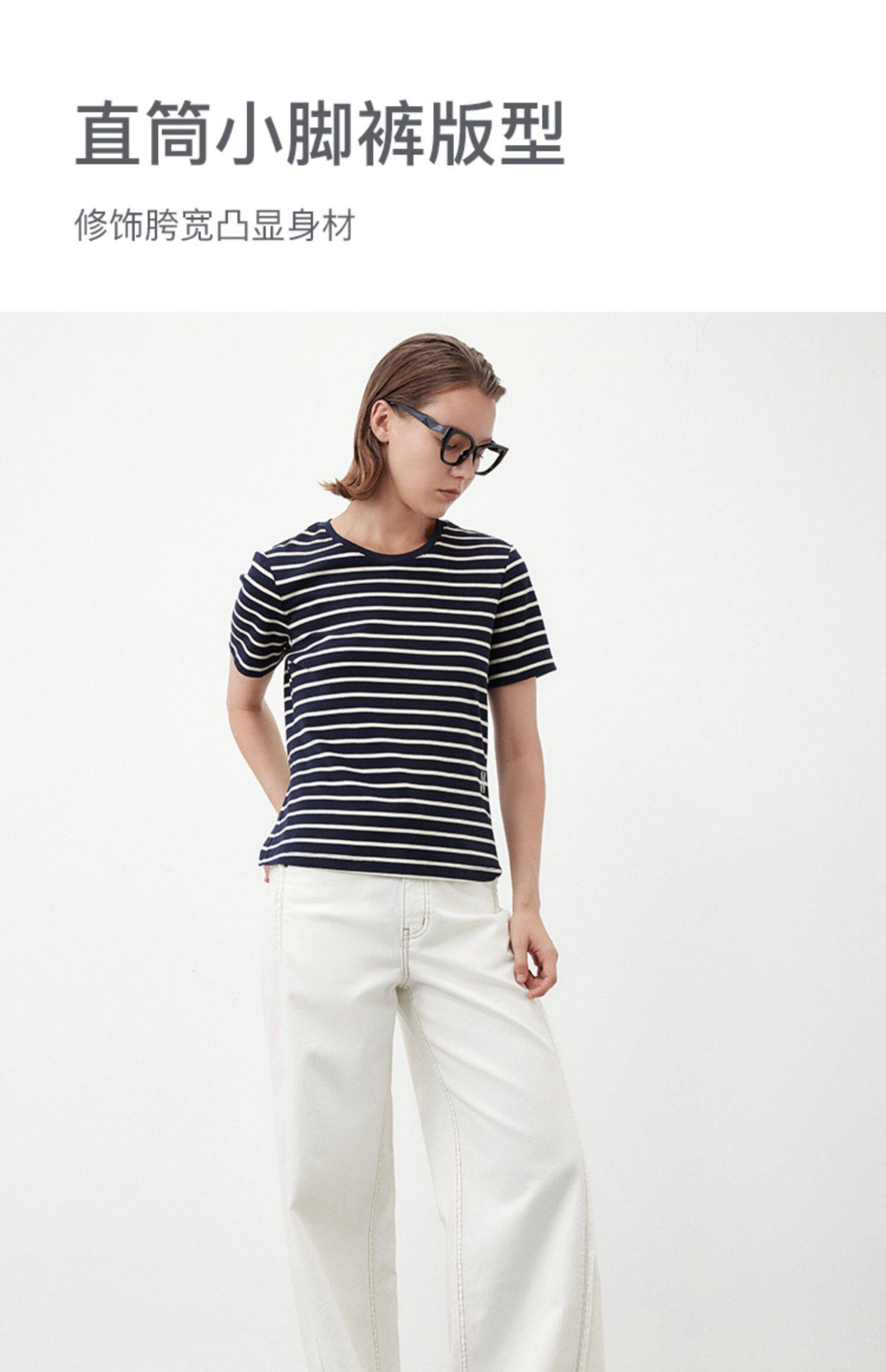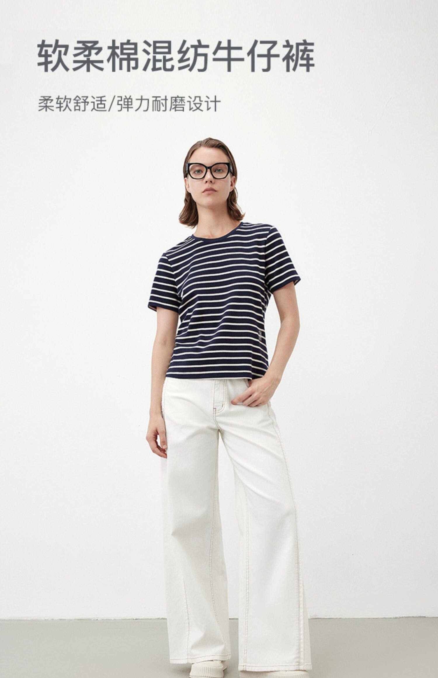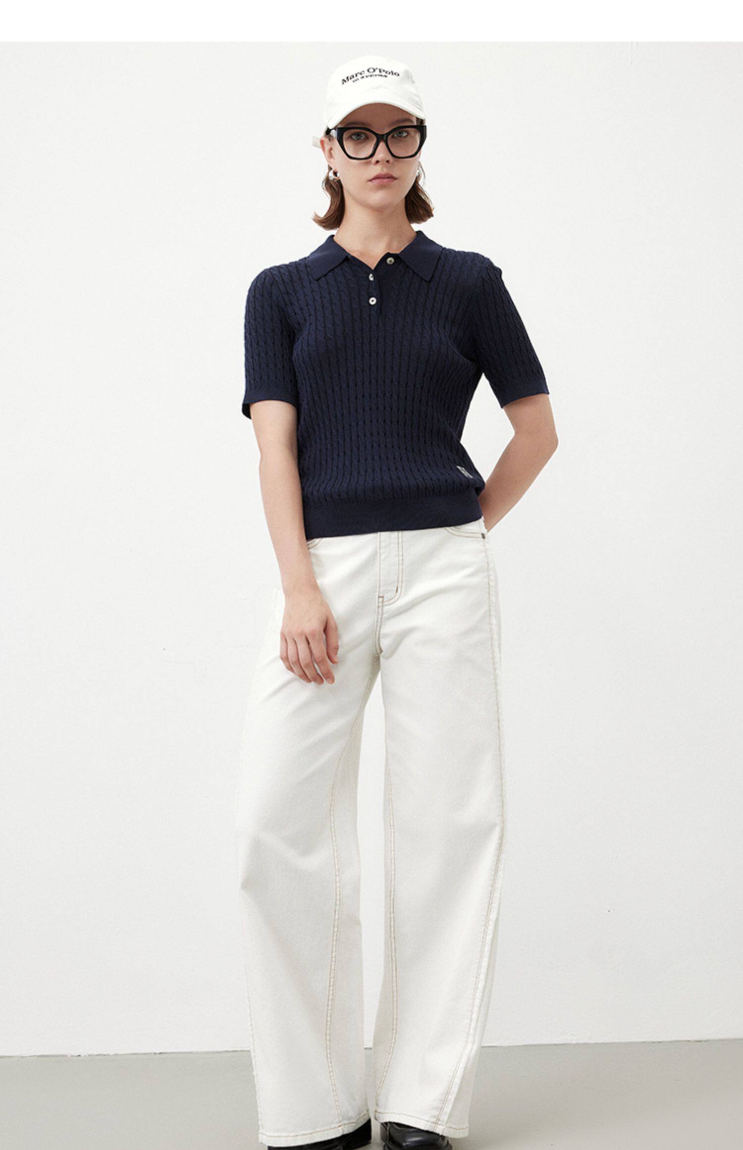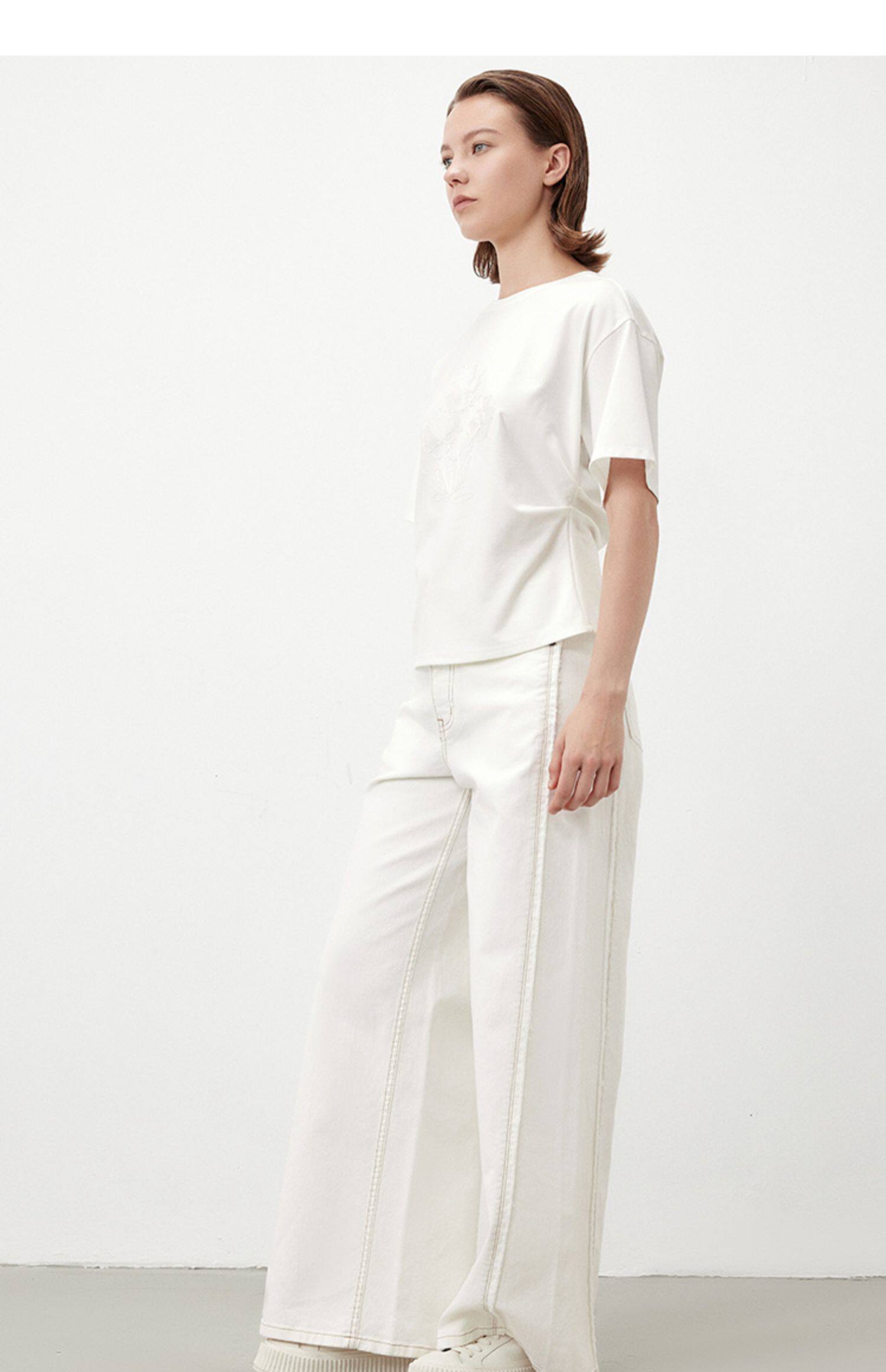 Marc O'Polo/MOP夏季新款气质高级感时尚毛边白色女士阔腿牛仔裤