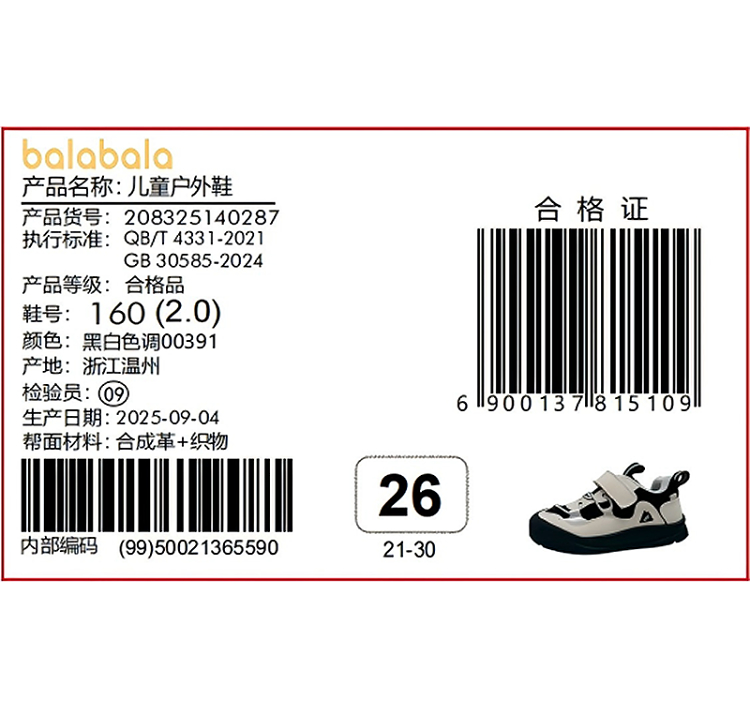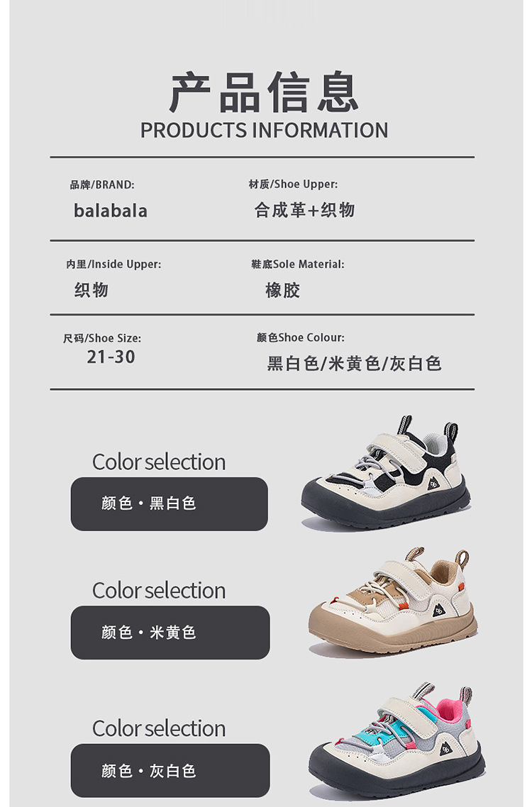 巴拉巴拉童鞋儿童户外鞋男童女童运动休闲鞋春秋2025新款舒适鞋子