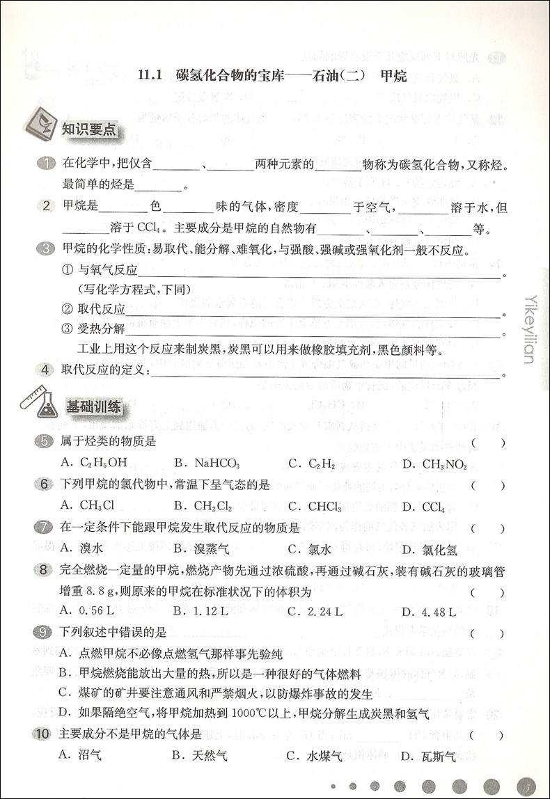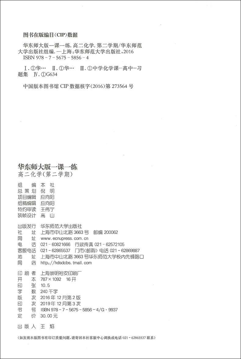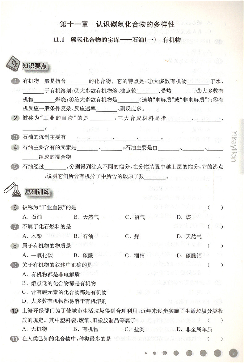 华东师大版一课一练 化学 高2年级下册/高二年级第二学期 华师大一课一练上海高中教材教辅同步配套练习册 华东师范大学出版社