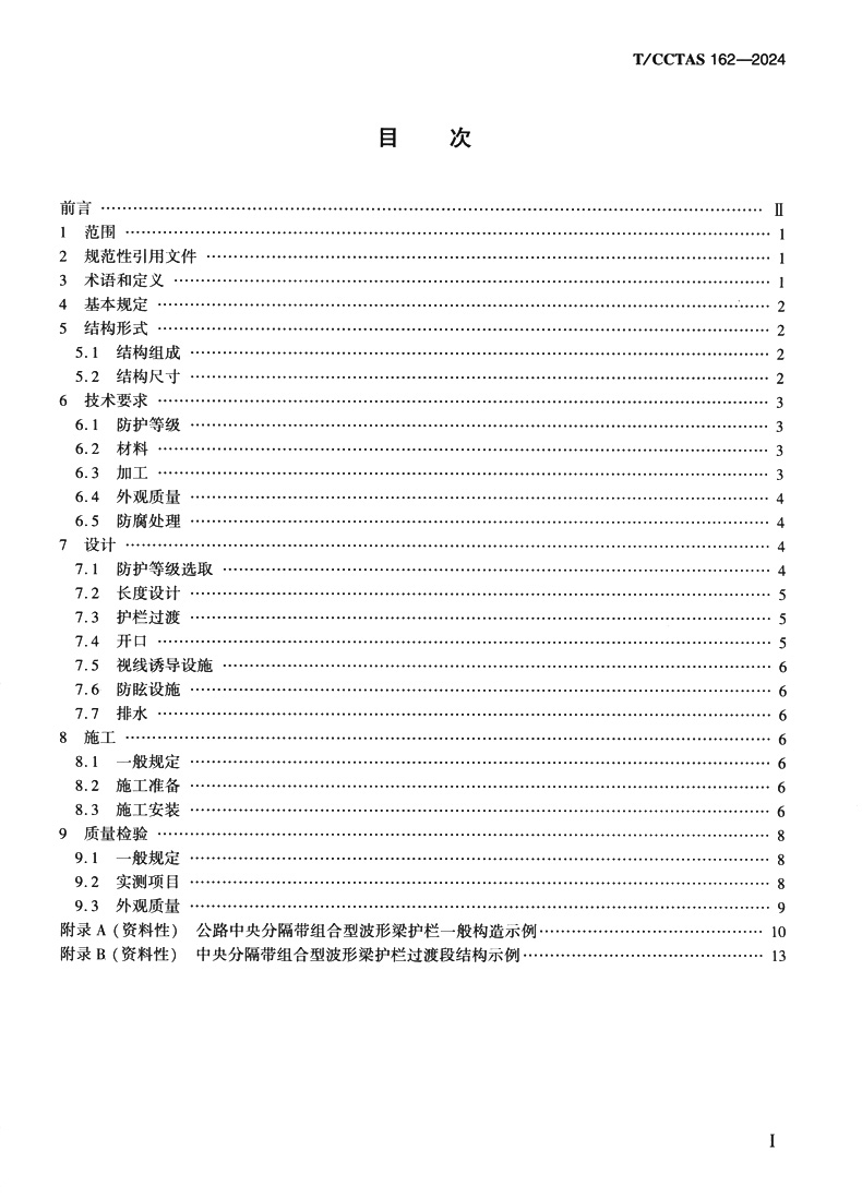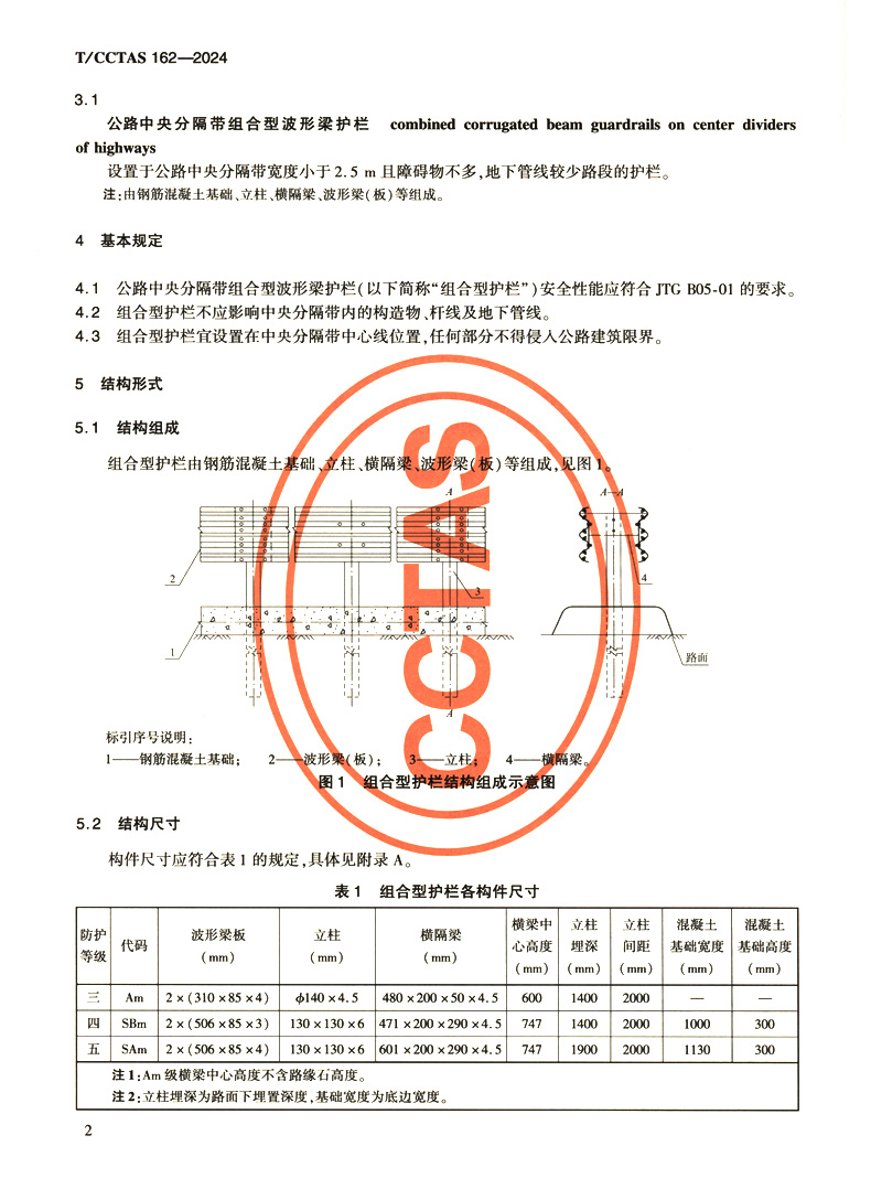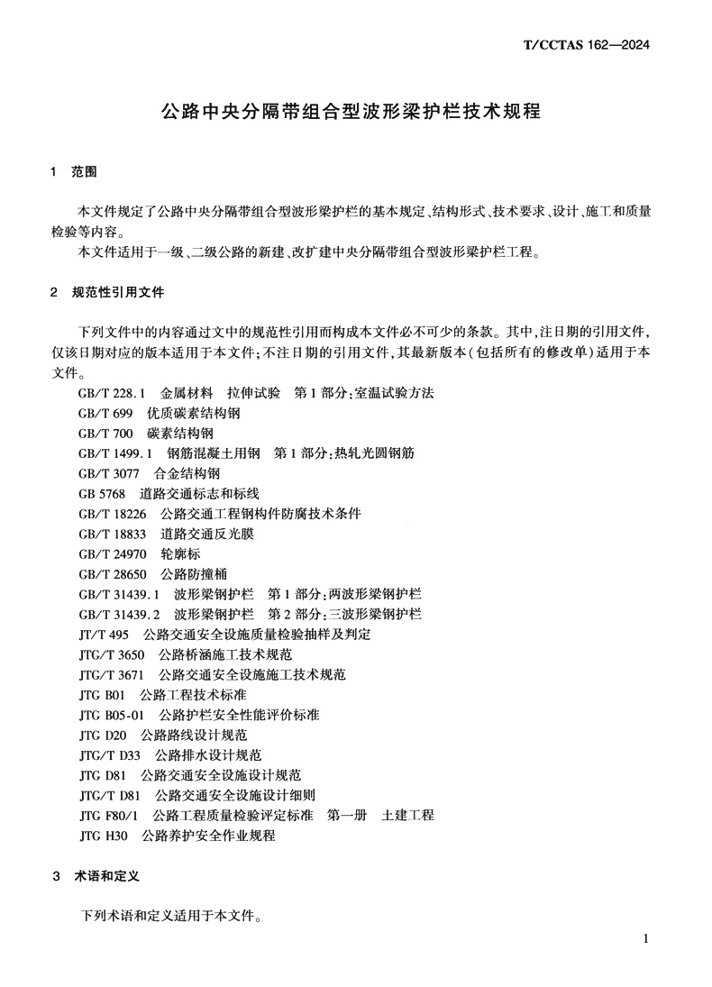 书名:公路中央分隔带组合型波形梁护栏技术规程T/CCTAS 162—2024