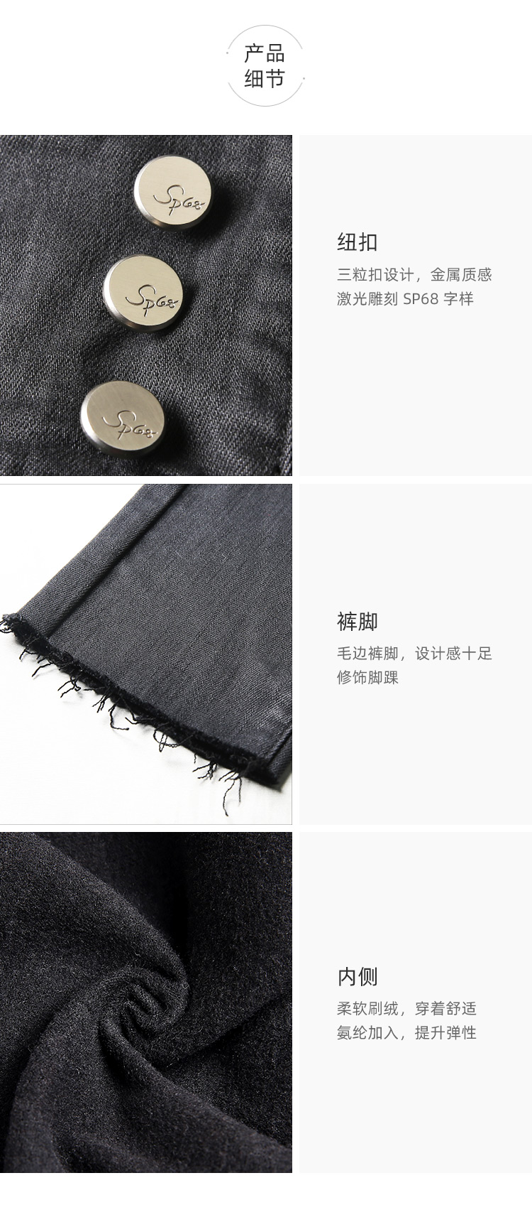SP68三粒扣深蓝色高腰加绒小脚牛仔裤K-NZ393