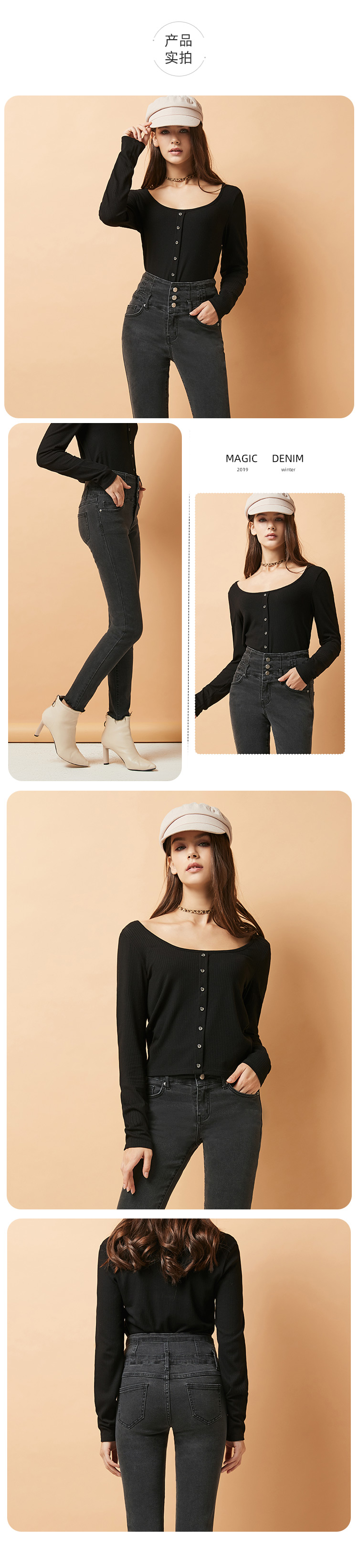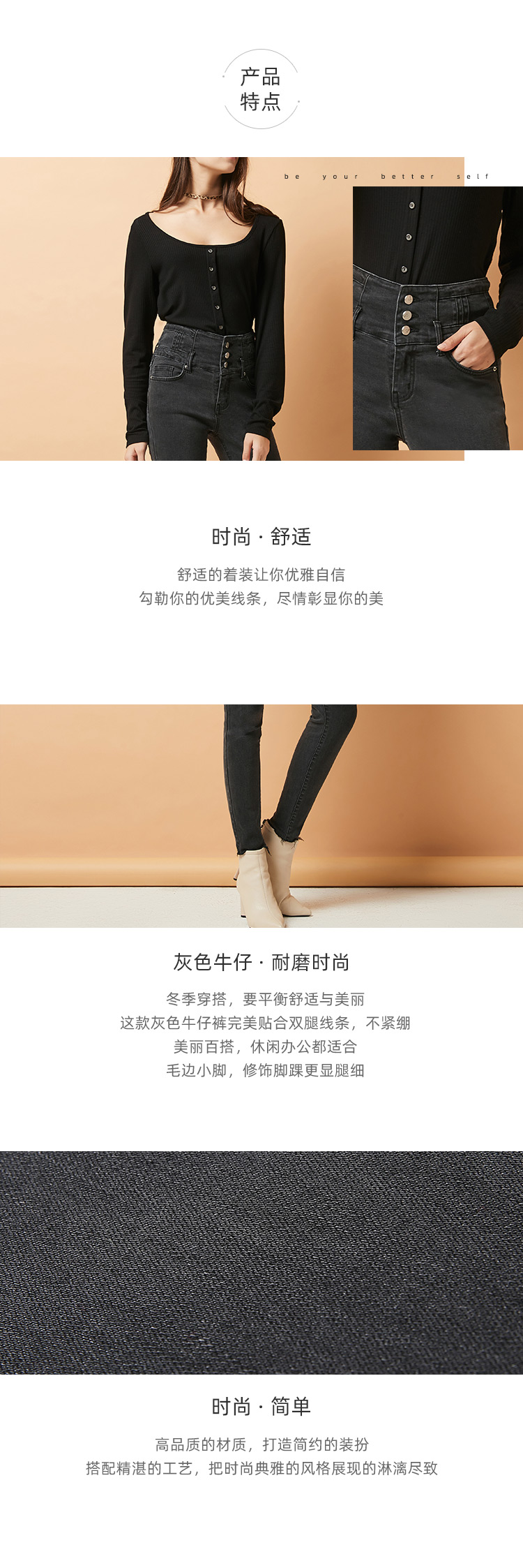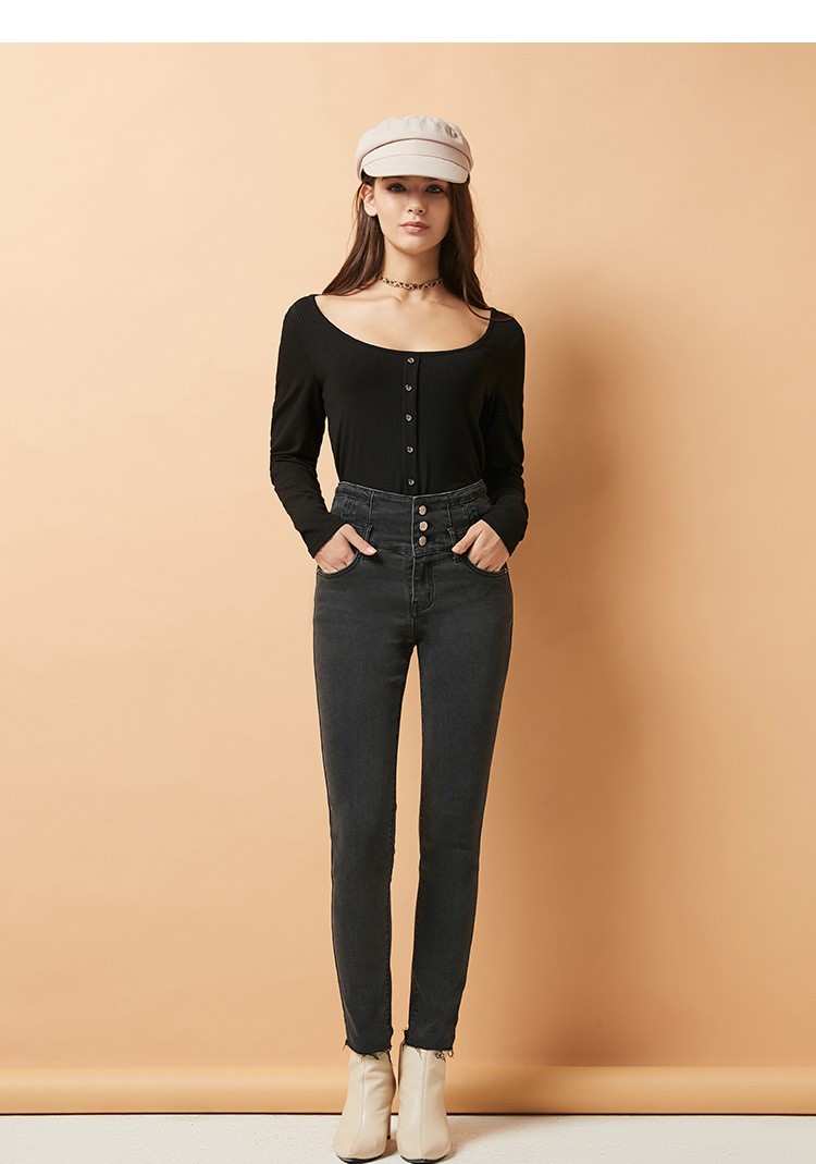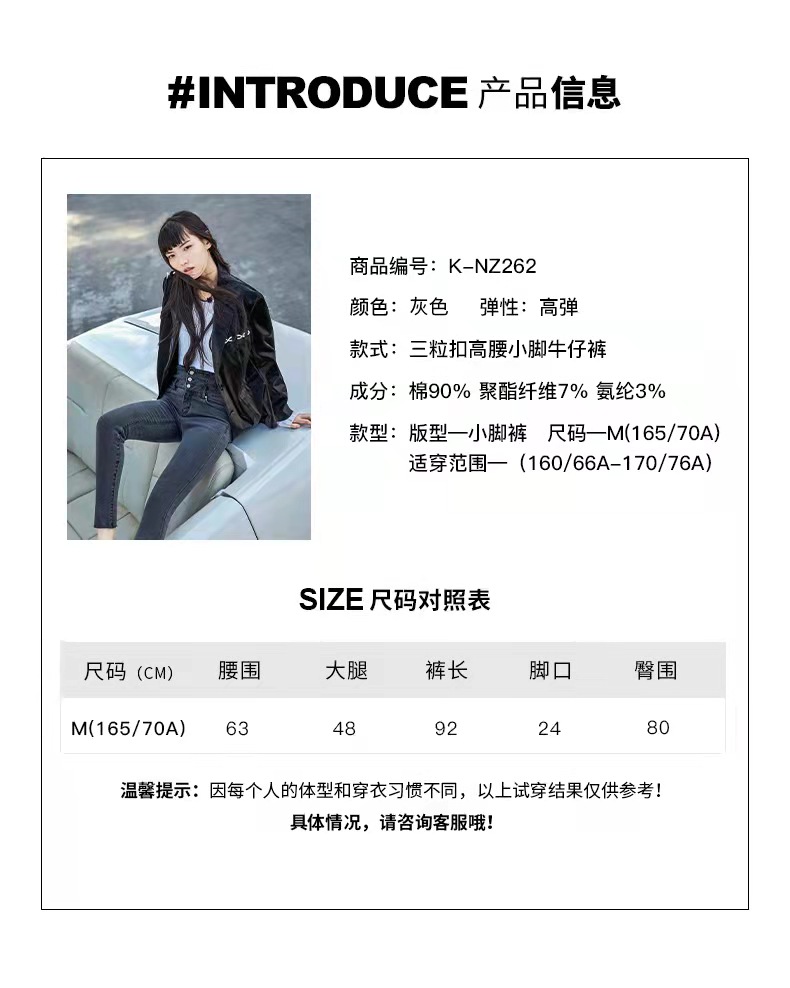 SP68 灰色三粒扣高腰加绒牛仔 K-NZ262