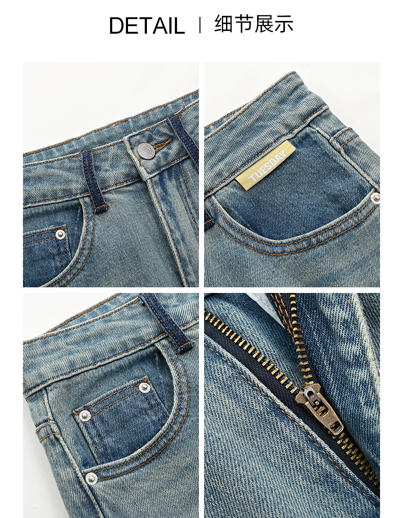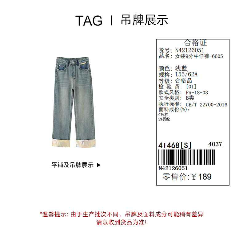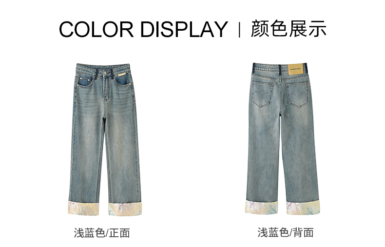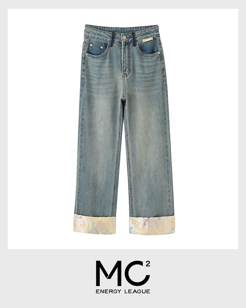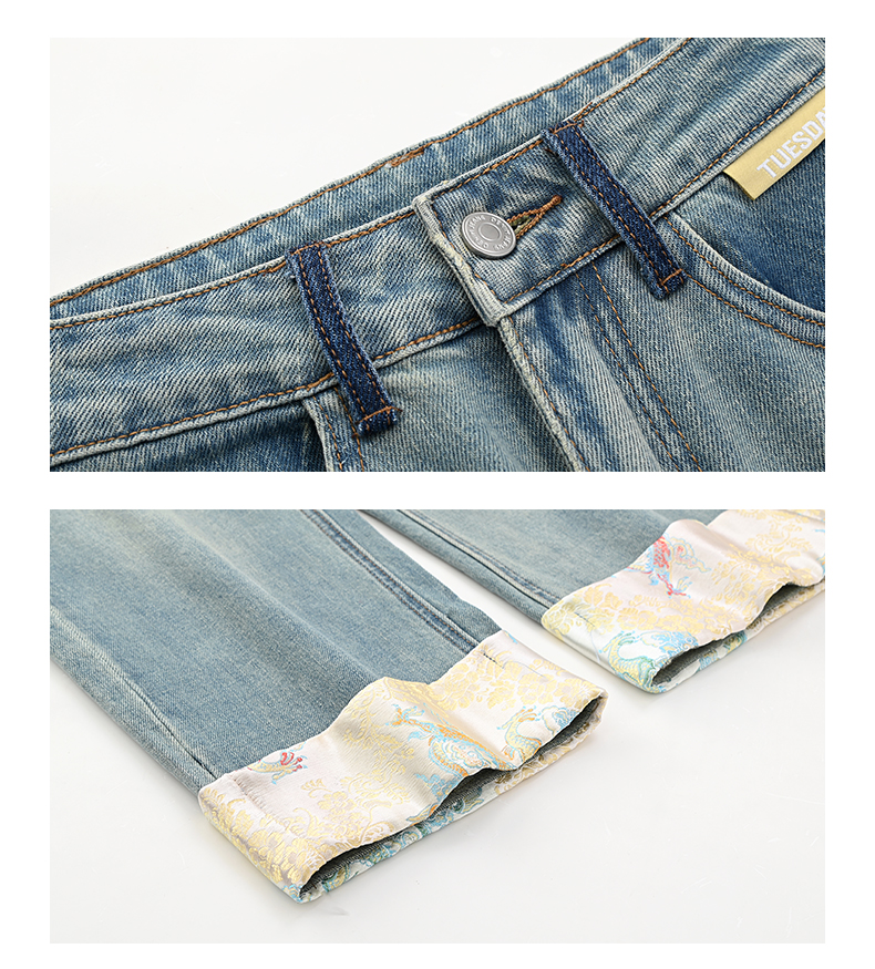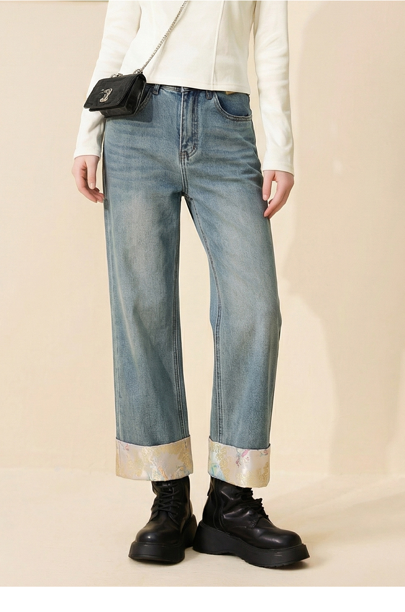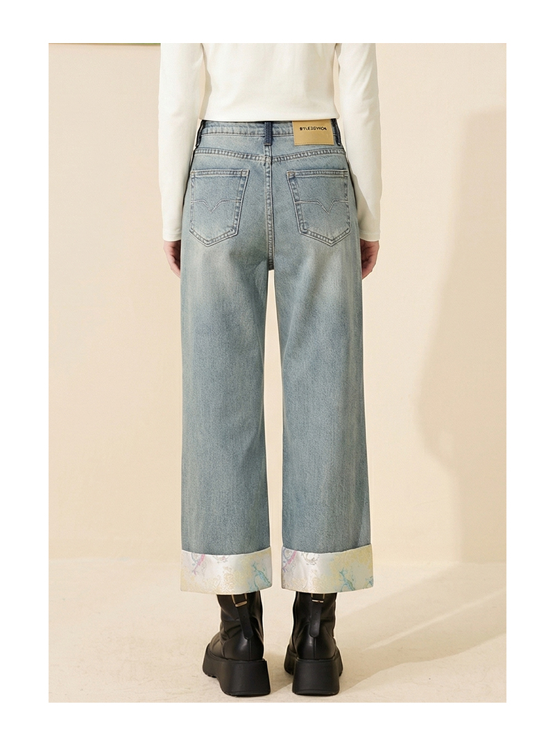 女装开扣国风拼接宽松直筒九分牛仔裤-6605N4212605