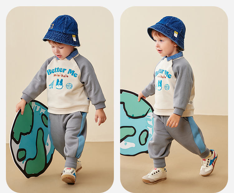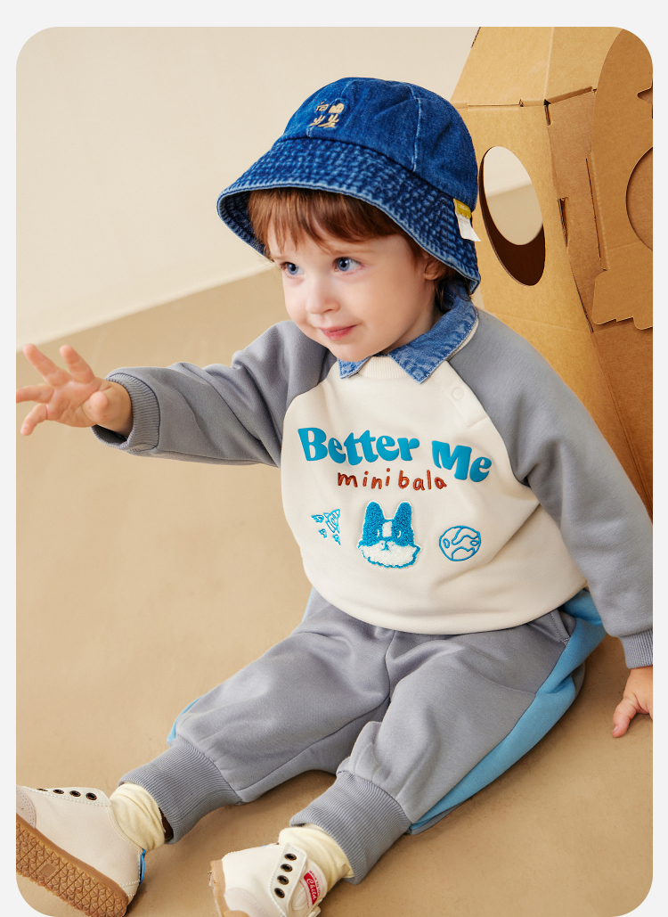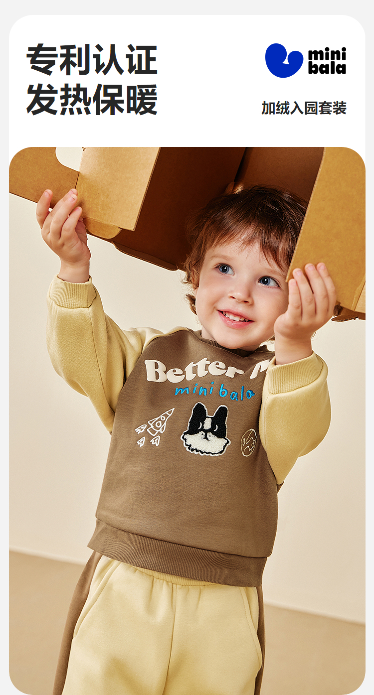 迷你巴拉男童长袖套装宝宝保暖抑菌长裤长袖卫衣2025冬新品