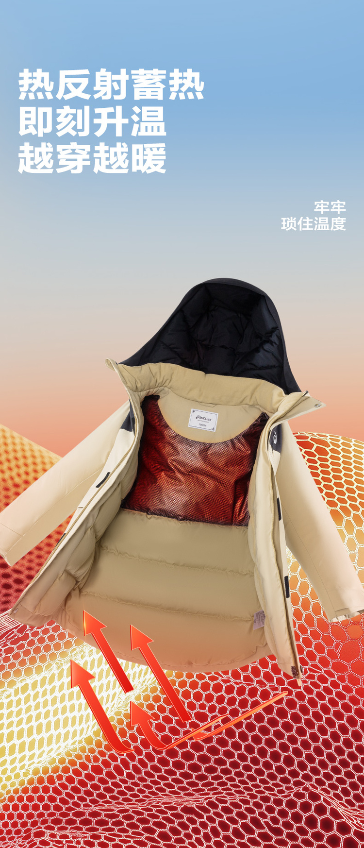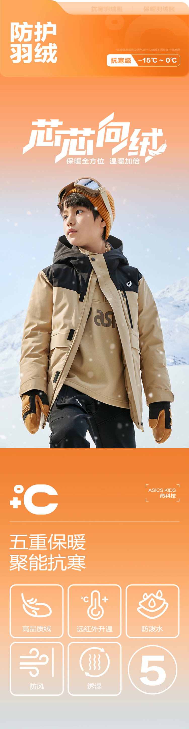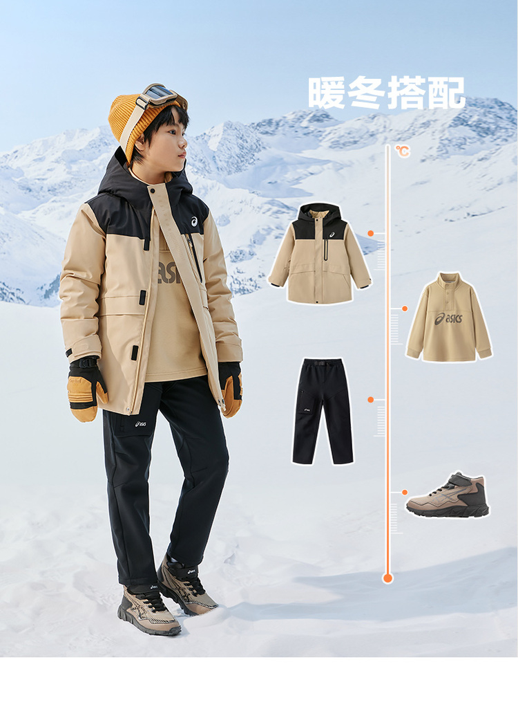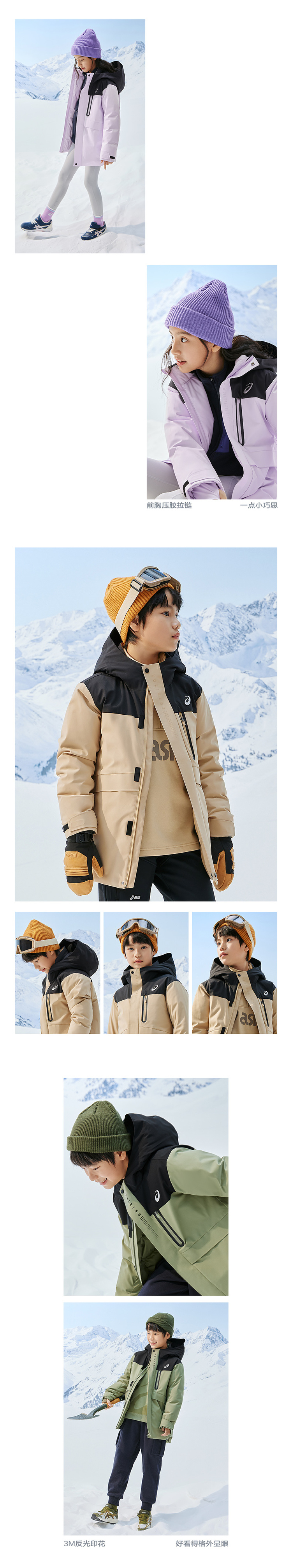 Asics/亚瑟士童装2024年冬季三防中长款羽绒派克服加厚保暖外套新