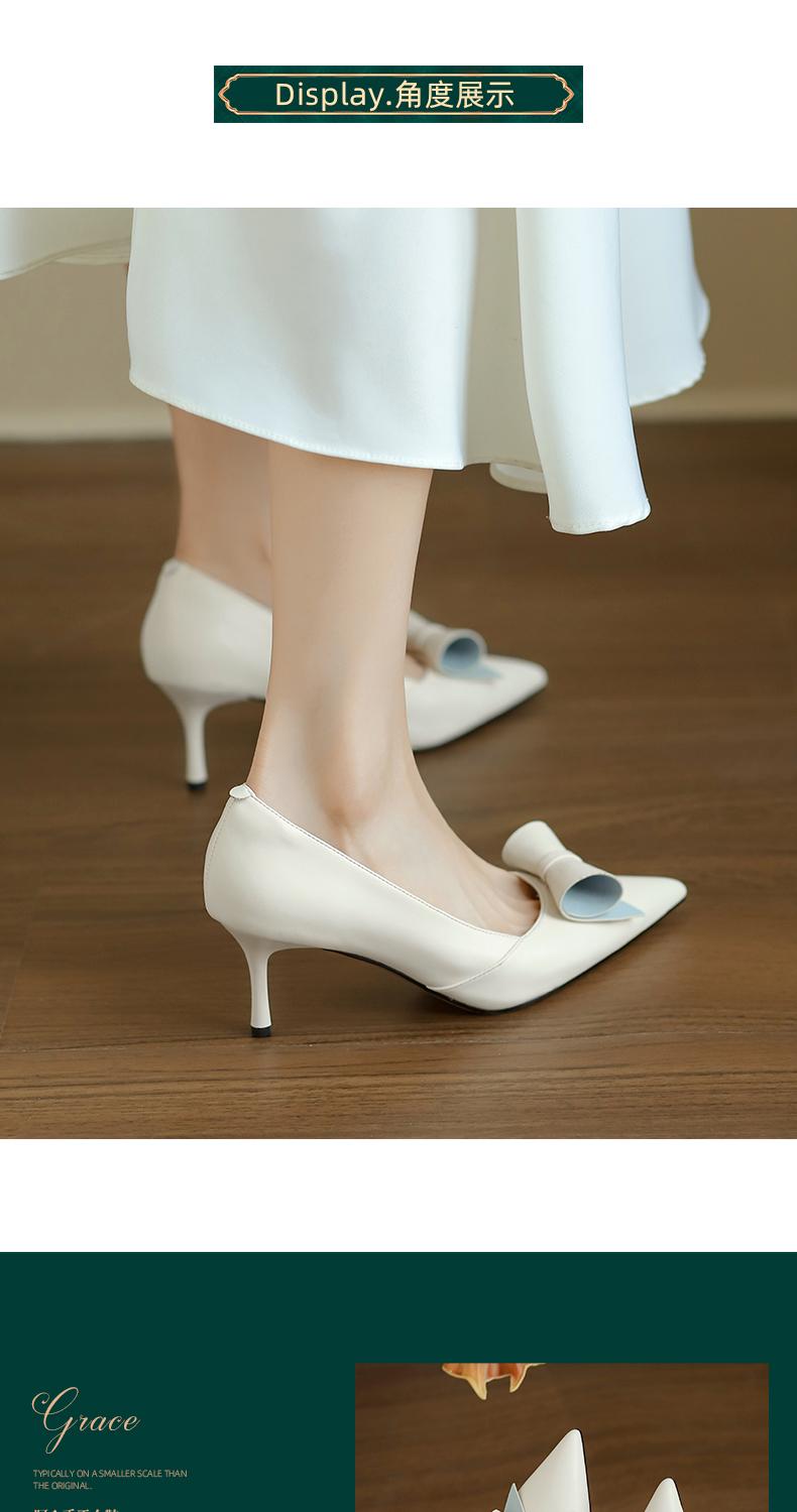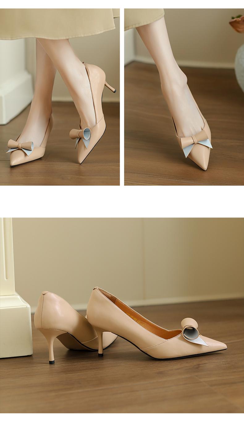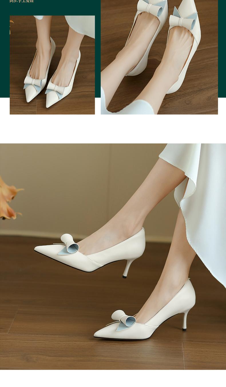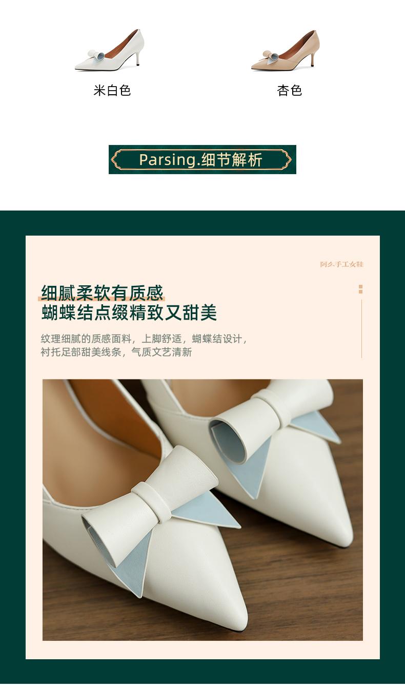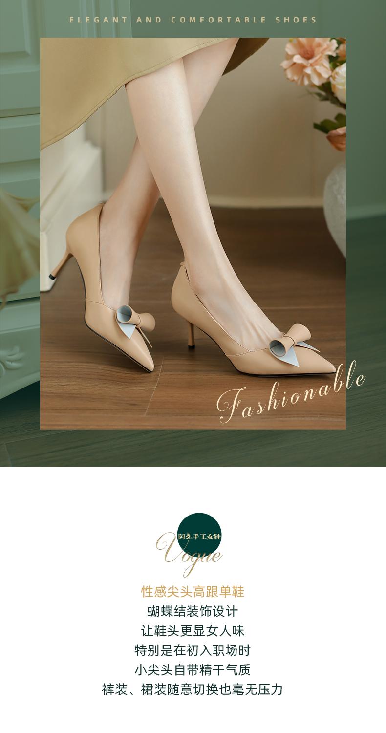 阿么手工女鞋气质百搭羊皮高跟鞋时尚软底6.5CM细跟职业尖头单鞋
