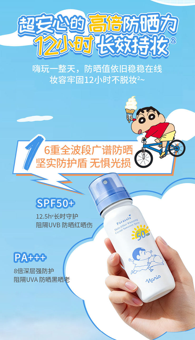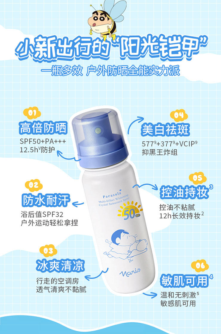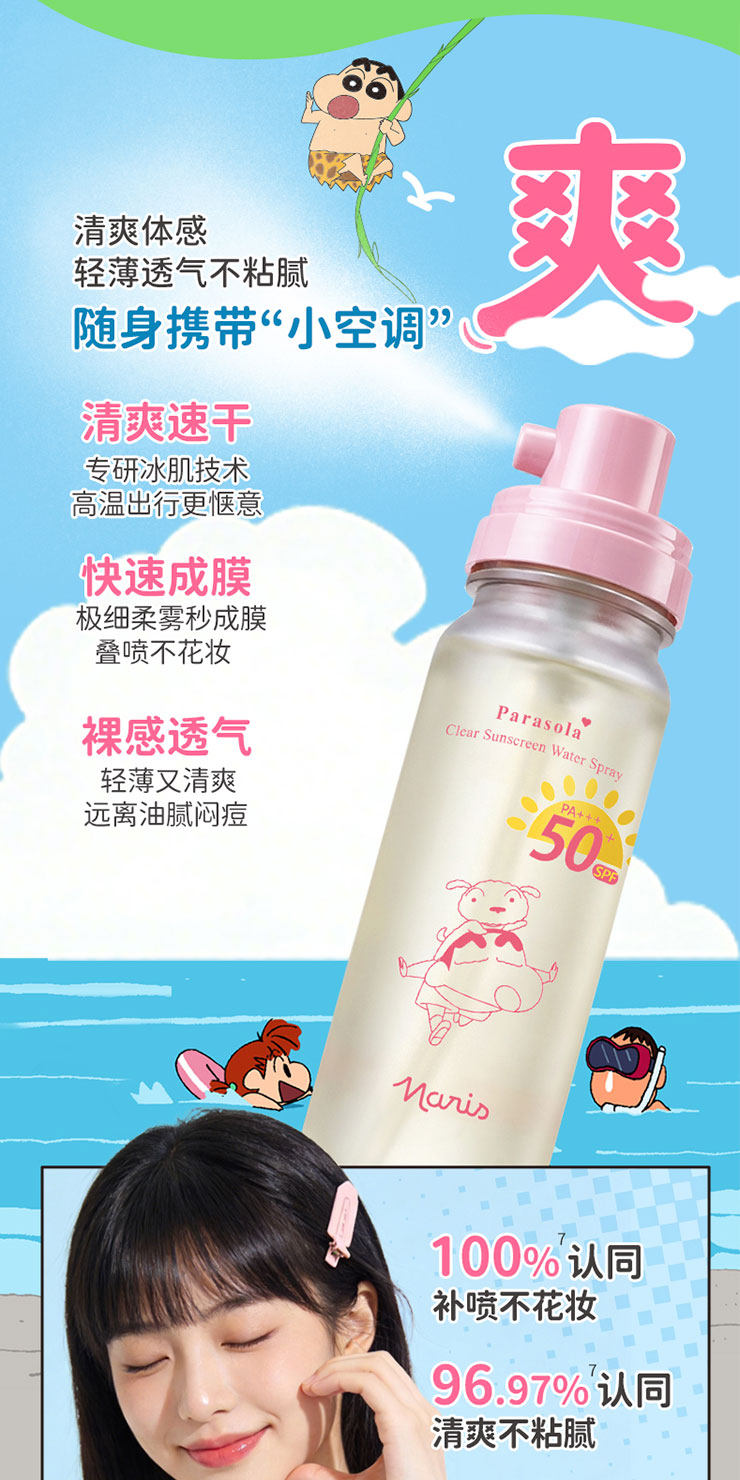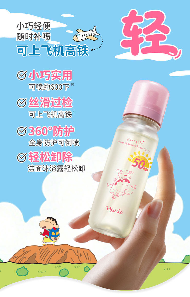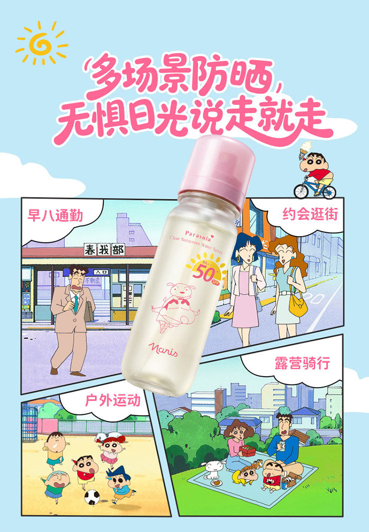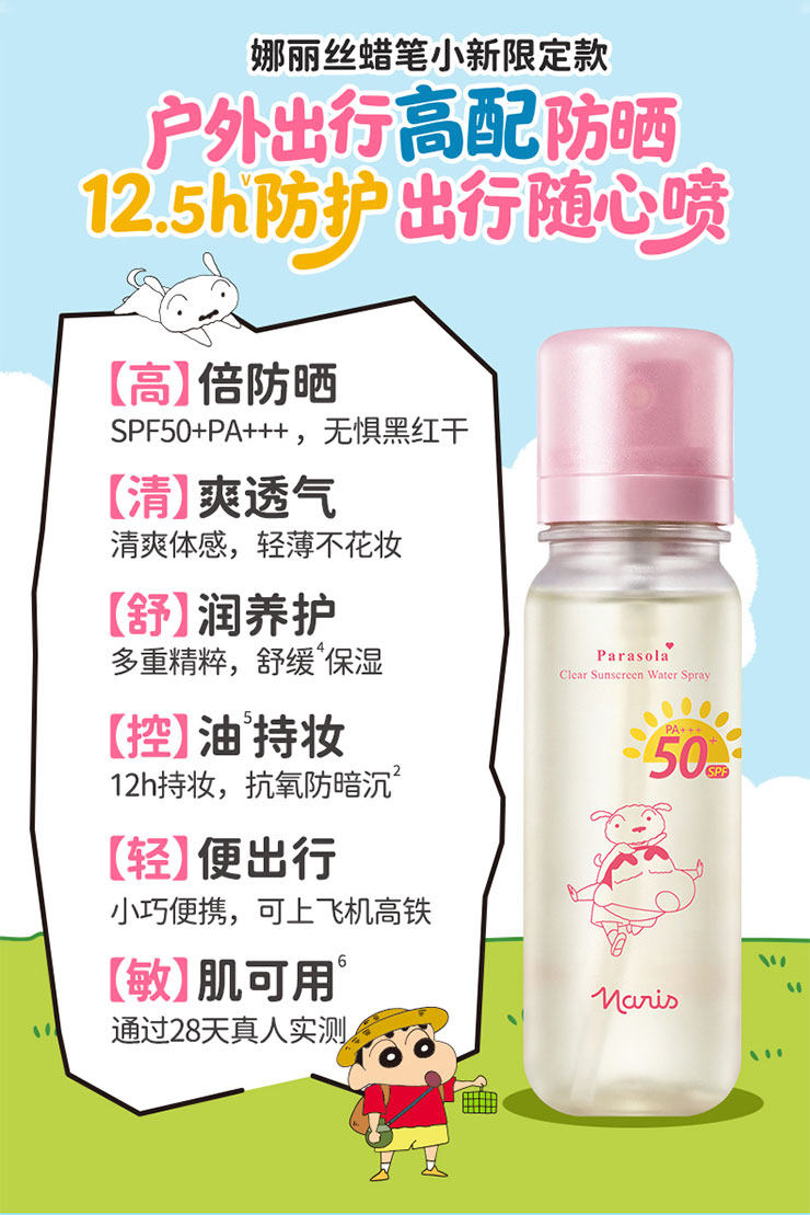 【品牌直发】萌力防护|『Naris娜丽丝 x 蜡笔小新联名款防晒水喷雾』轻松带上高铁飞机·SPF50+ PA+++高倍防晒·水雾细腻·肤感轻盈·上脸秒成膜·清透不黏腻
