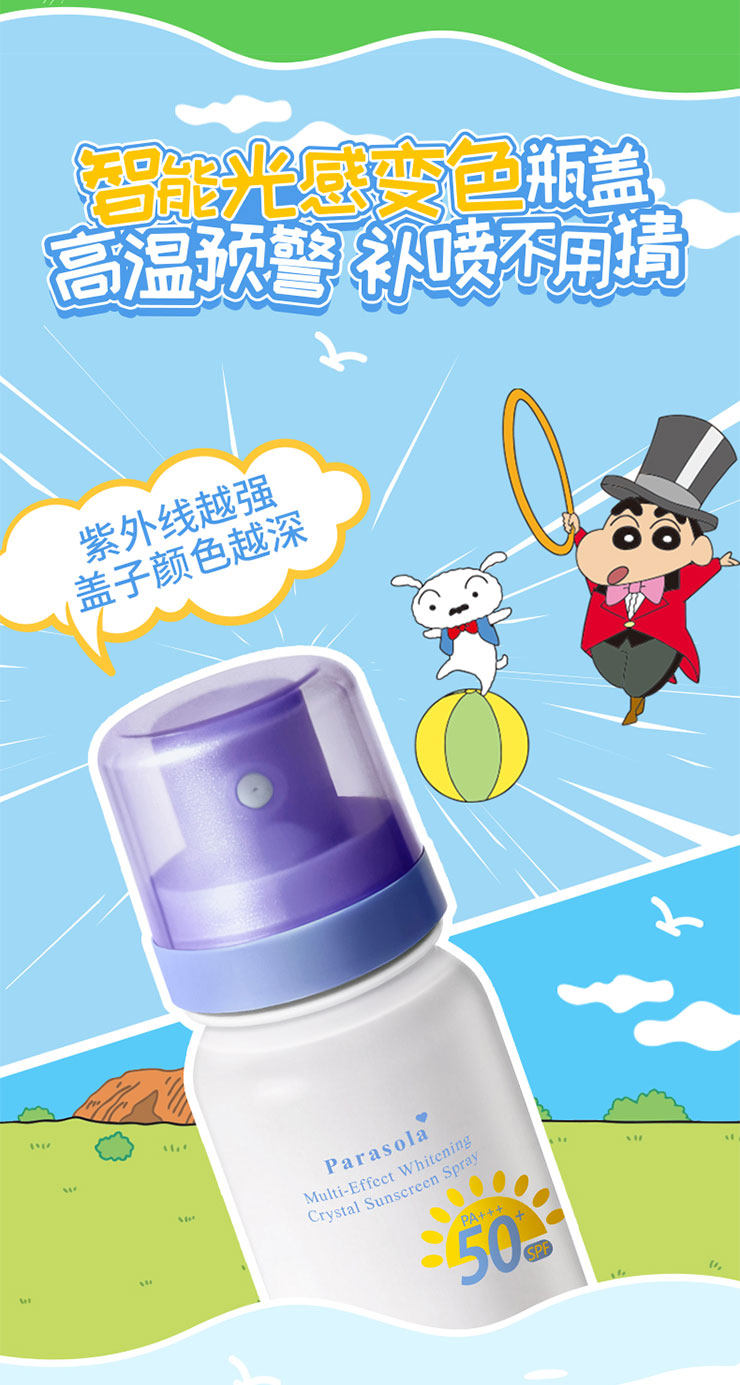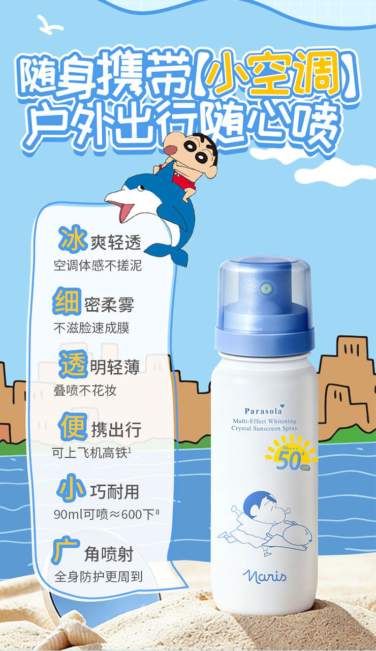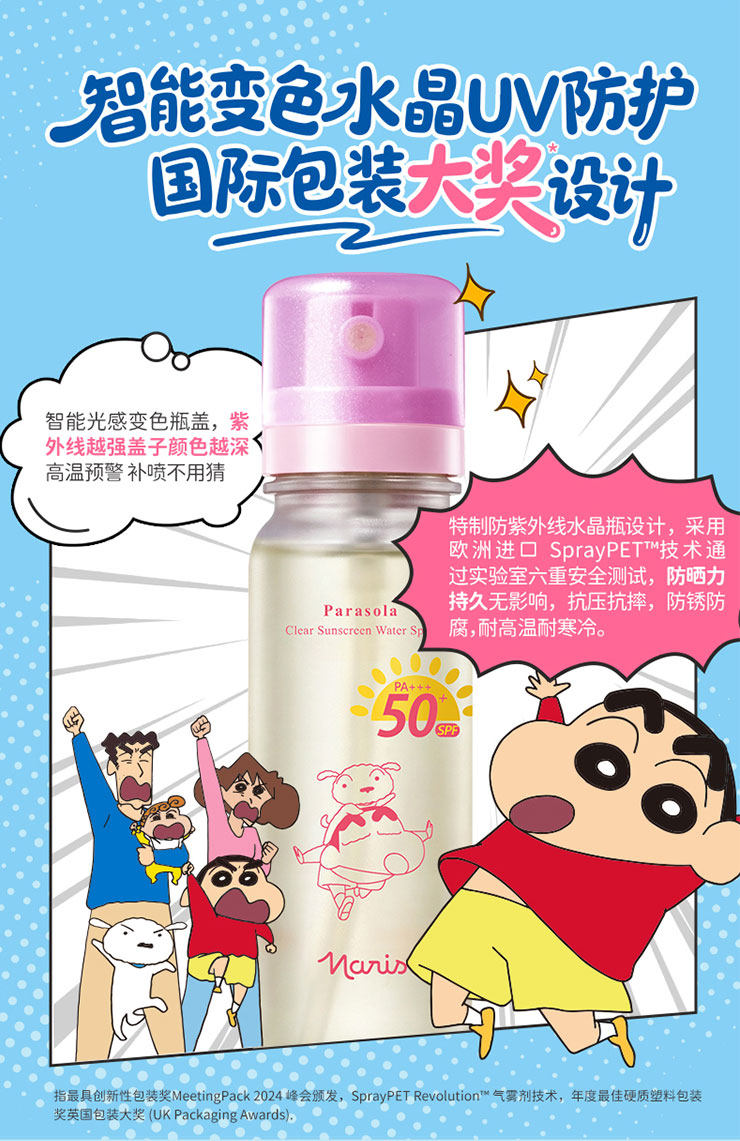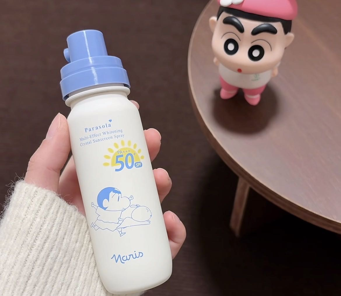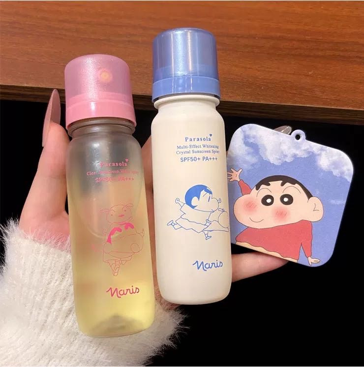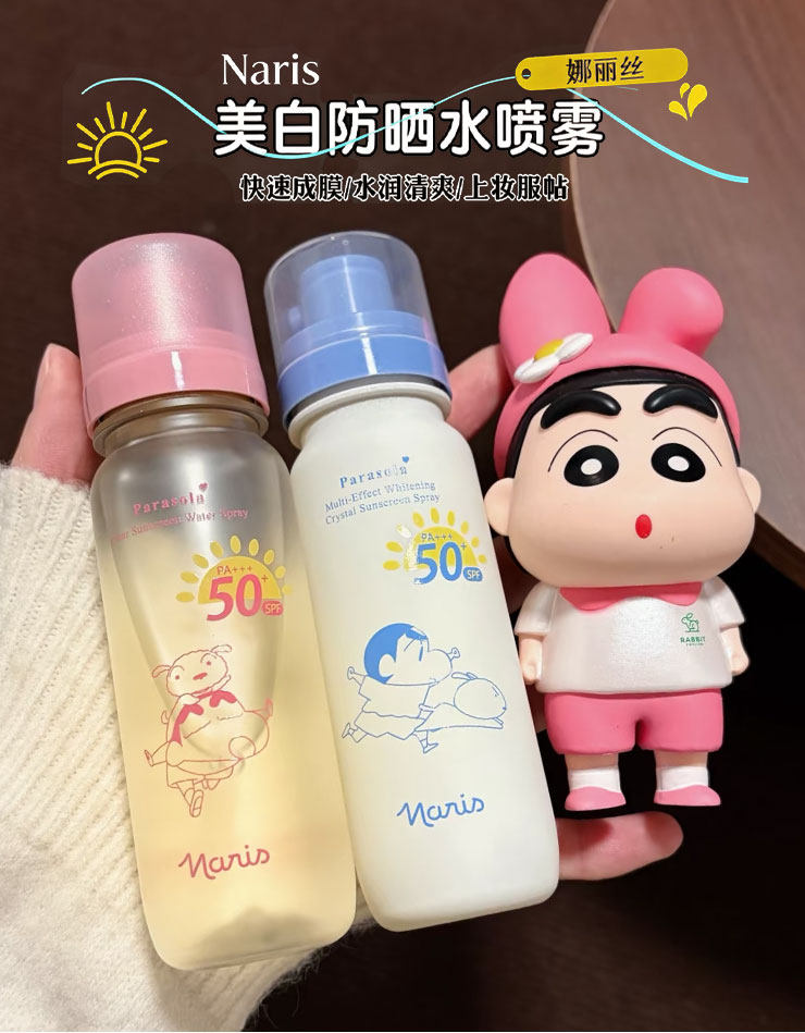 想要实用又携带方便的防晒,推荐大家入手这个萌趣可爱又好用的——Naris娜丽丝 x 蜡笔小新联名款防晒水喷雾。
