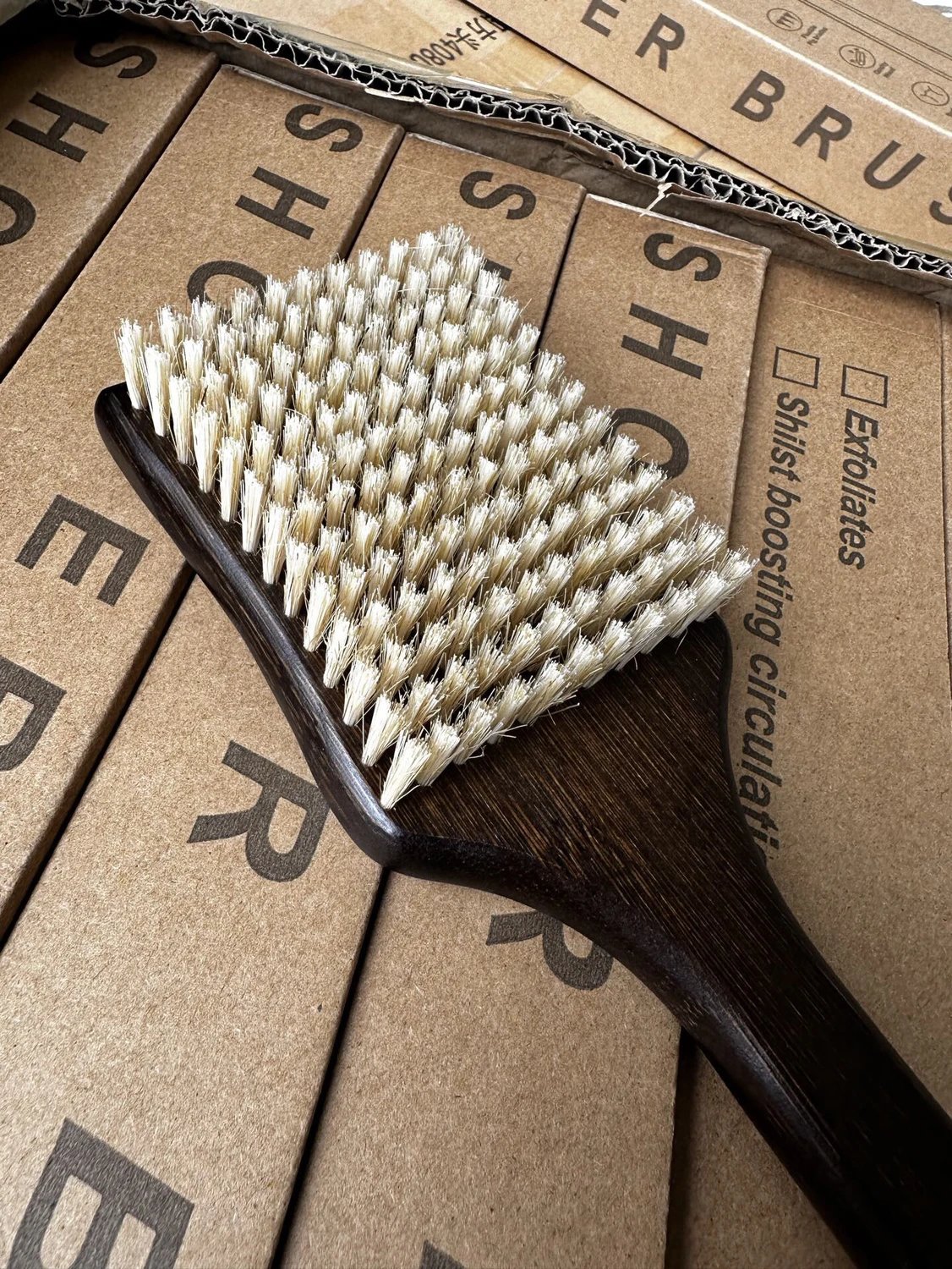 • 精选柔韧猪鬃毛,软硬适中,干刷去角质超舒服