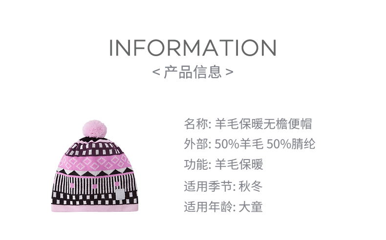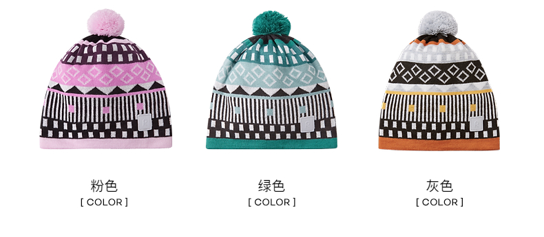 reima男女儿童大童帽子秋冬新款羊毛保暖休闲可爱印花针织帽