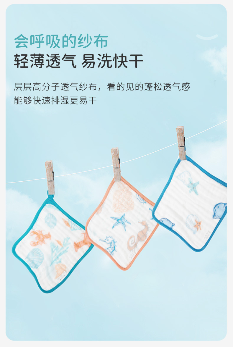 ibaby×outlast太空科技恒温抑菌防螨低敏纱布小方巾三条装-混色(25×25cm)