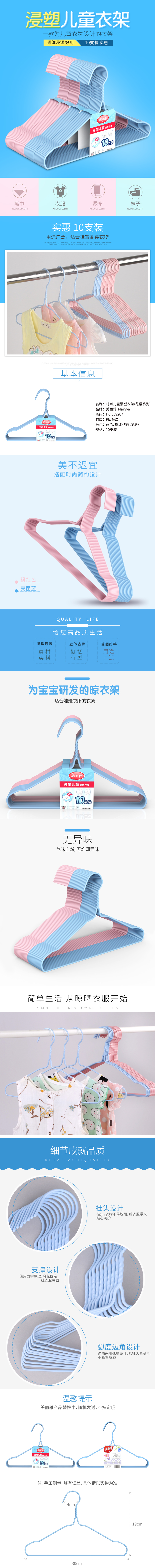 美丽雅 无痕防滑衣架儿童浸塑防滑晾衣架金属衣挂衣撑晒衣架 10只*2组HC059207