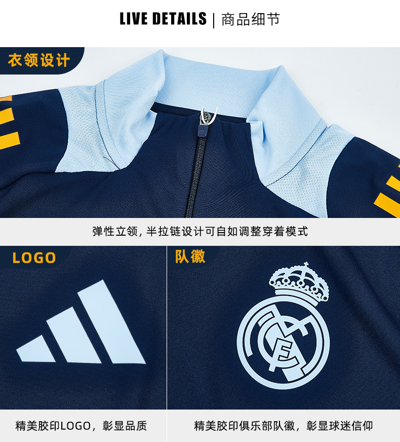 SFS正品 阿迪达斯 24/25皇马半拉链拇指扣训练服JE4205