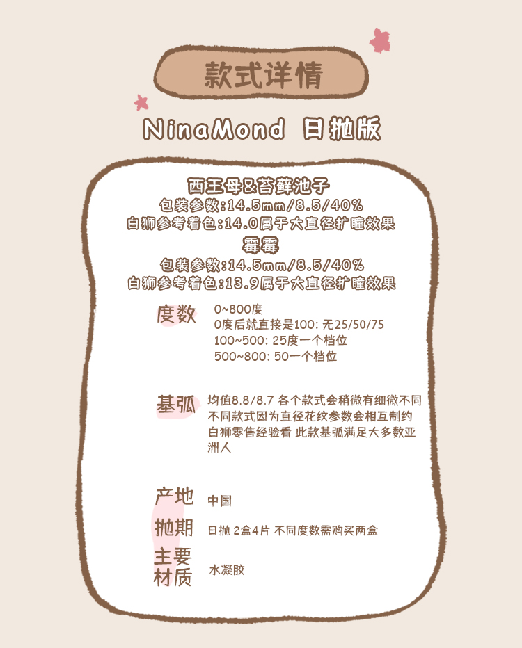 NinaMond日抛XCOS瞳 | 西王母&霉霉&苔藓池子 14.5mm白狮参考着色大直径 日抛