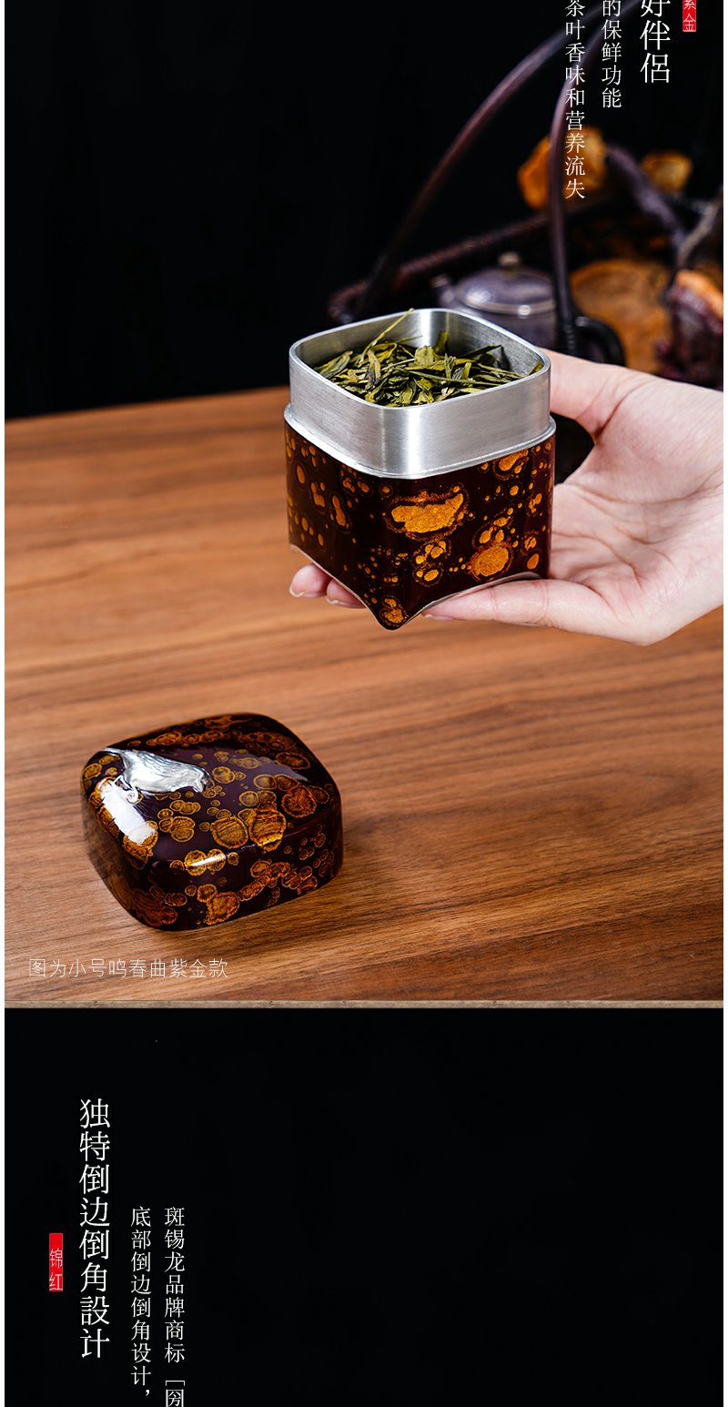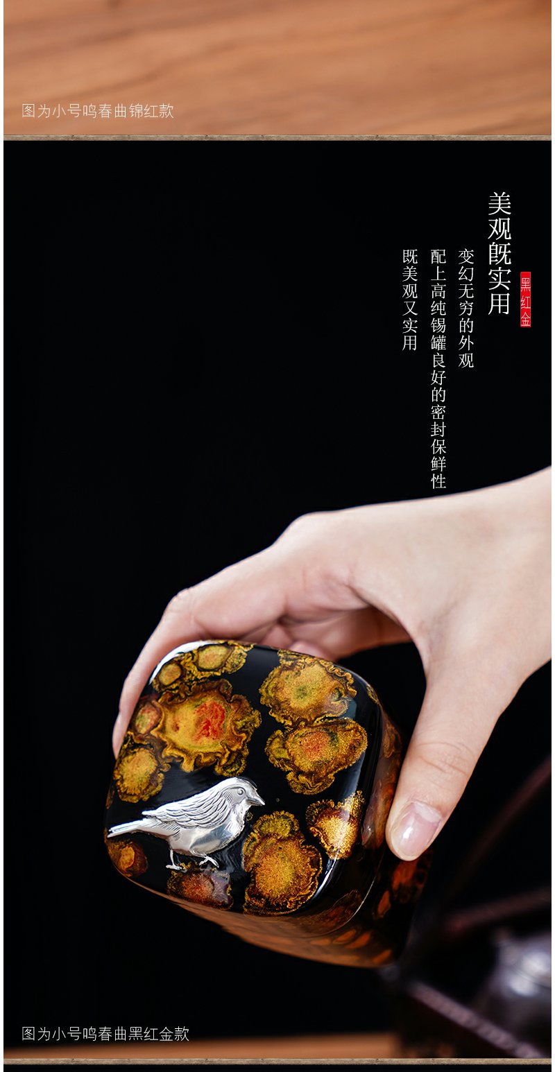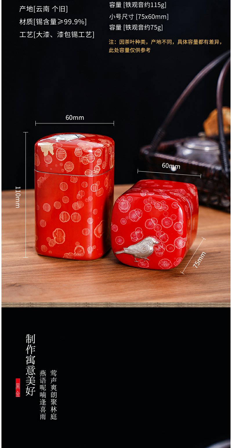 斑锡龙大漆锡罐鸣春曲茶仓锡茶叶罐小号手工金属密封罐个旧锡器