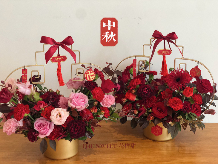 选用金色灯笼花篮加以衬托