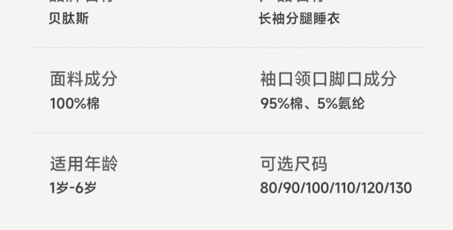 【贝肽斯】儿童睡衣薄款纯棉2025新款男女童家居服宝宝连体衣春秋