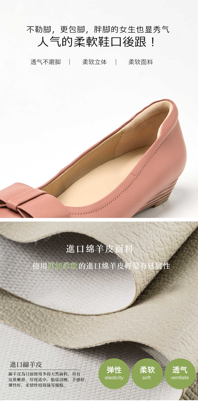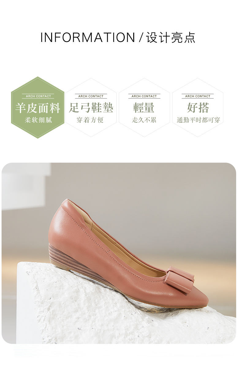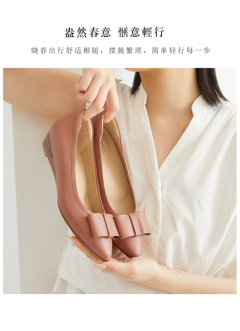 ARCHCONTACT安启美奈尖头蝴蝶结全羊皮坡跟单鞋52716