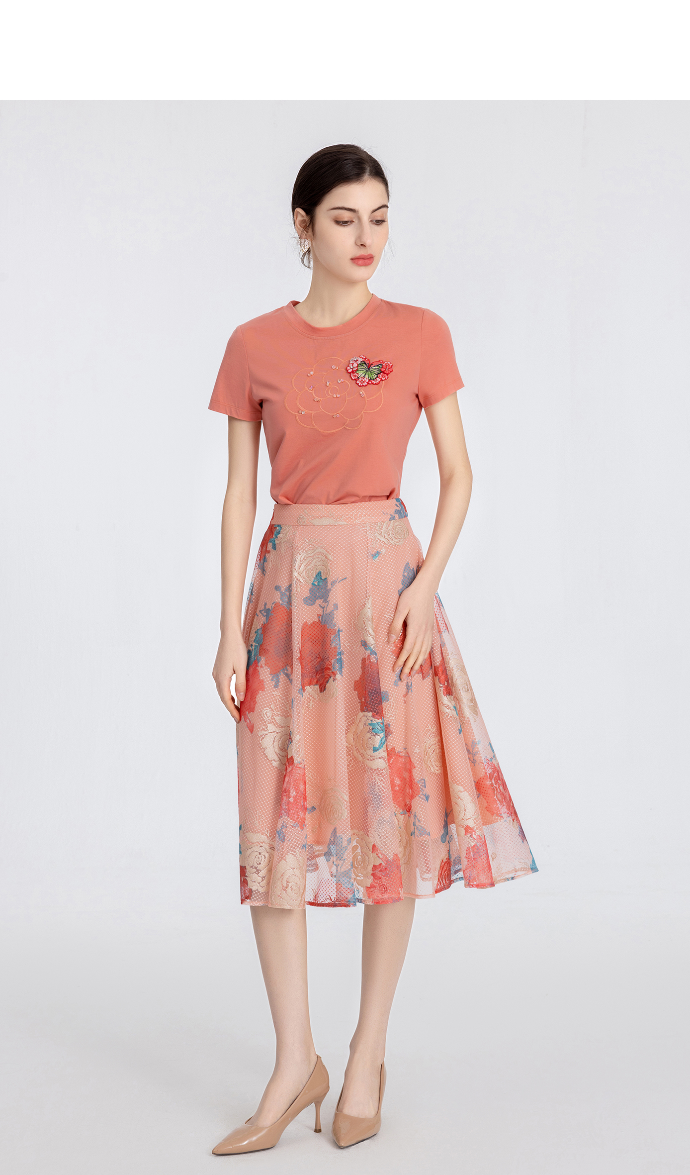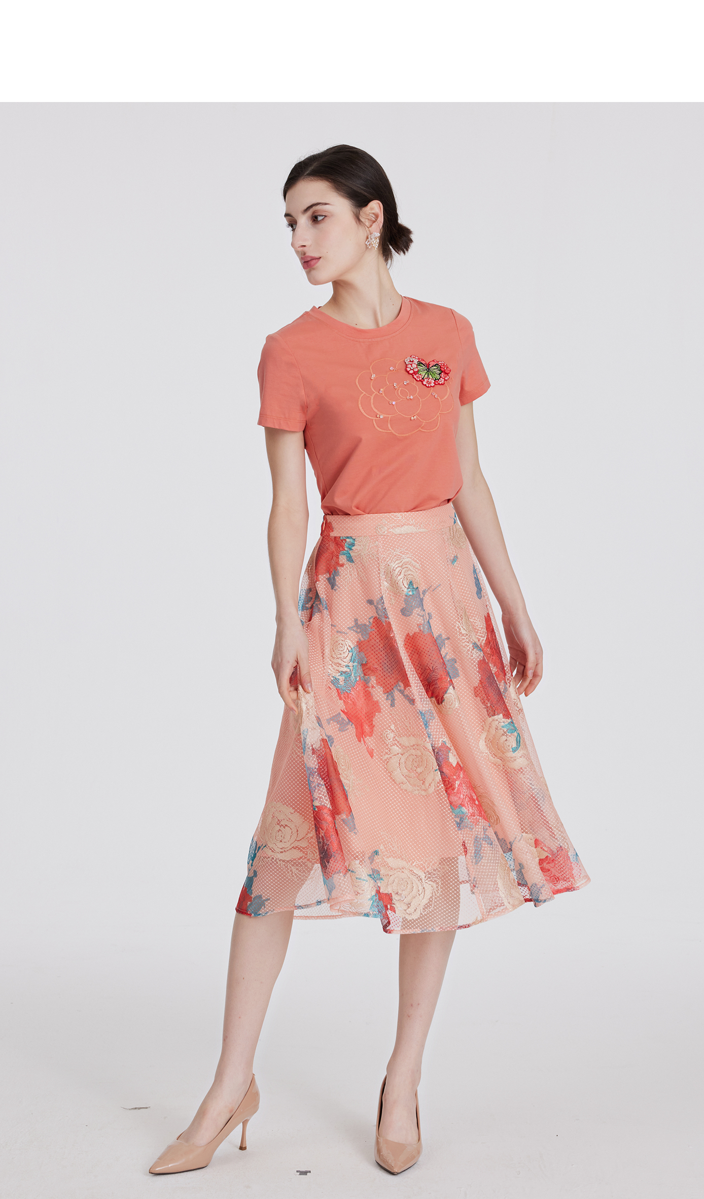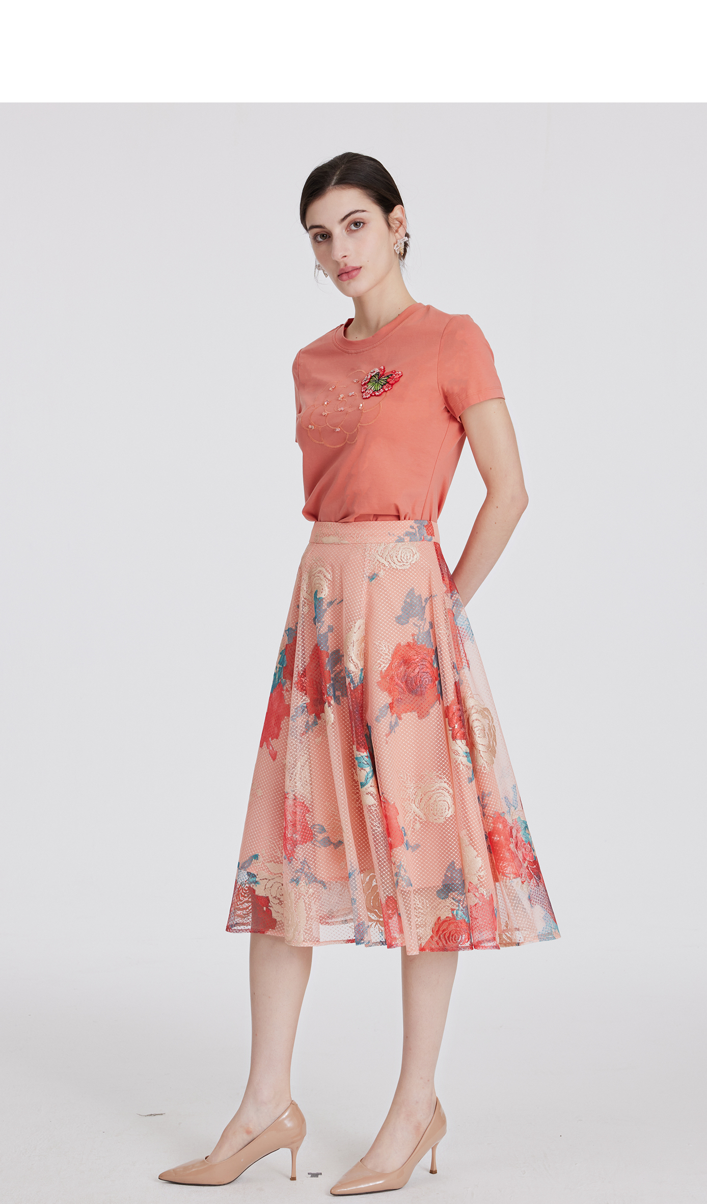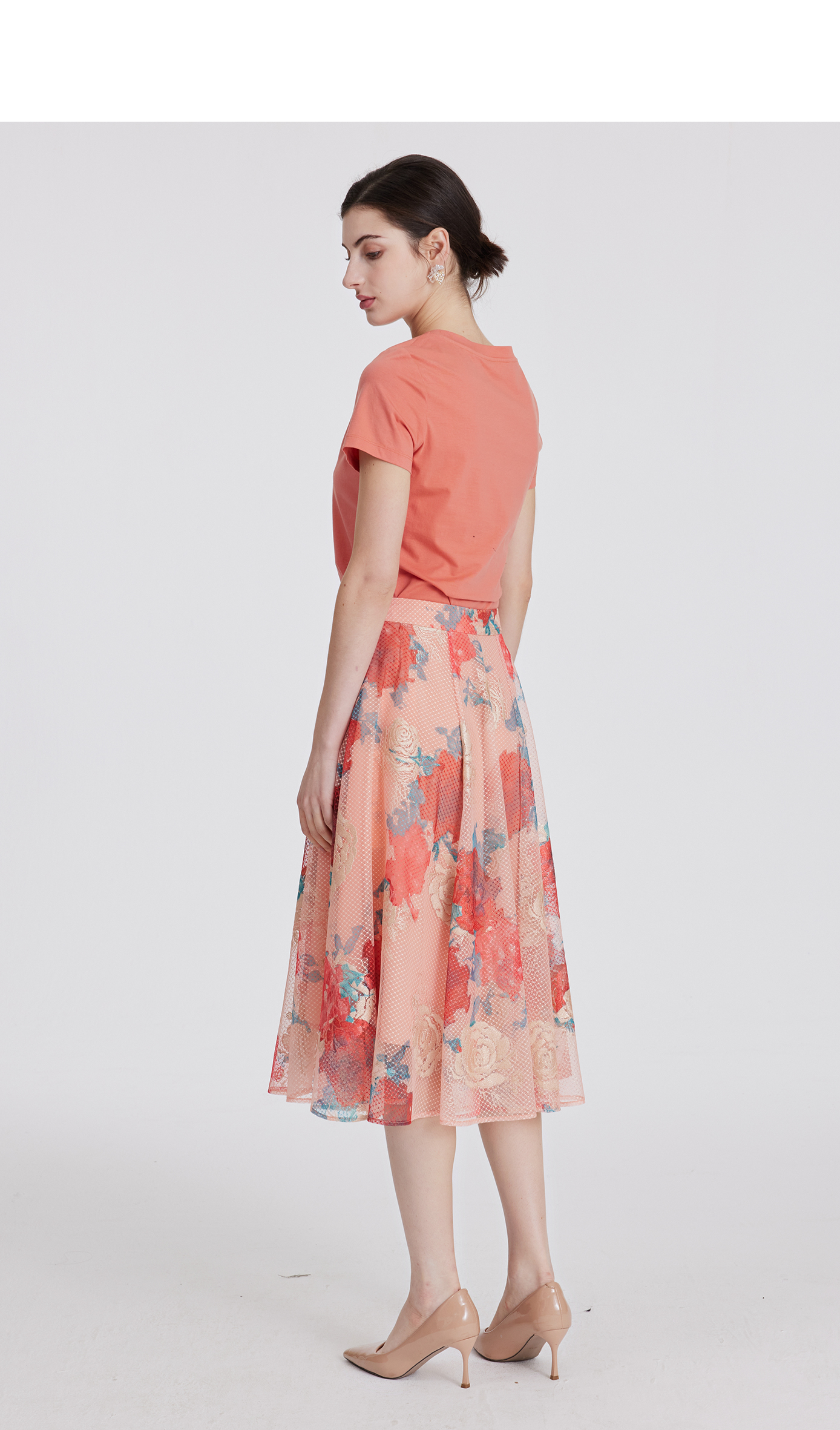 司歌蕾丝印花半裙端庄优雅伞裙C891019X